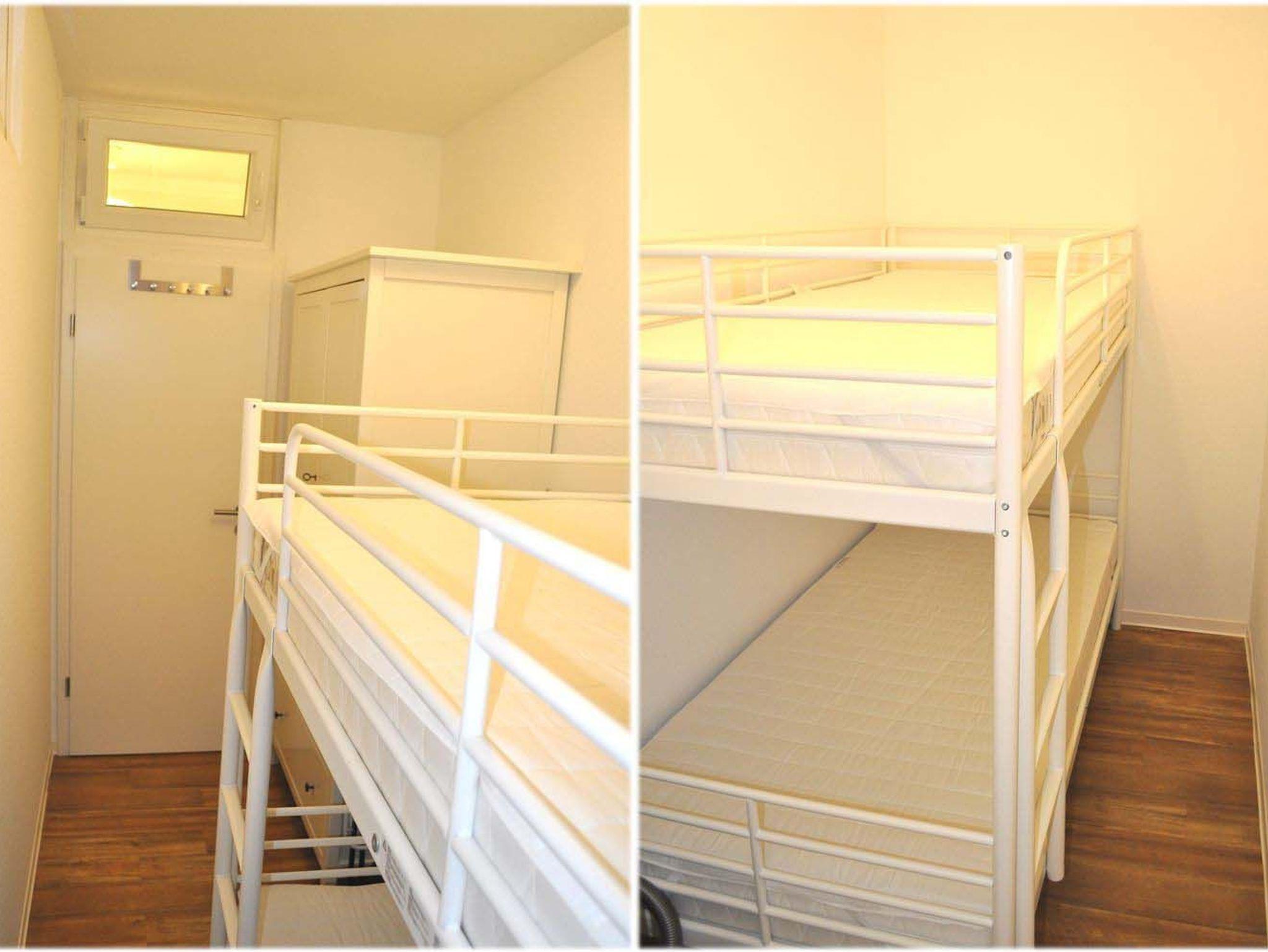 Schlafzimmer 2 : Etagenbett, Kleiderschrank, Staubsauger, Wäscheständer, Zimmer hat ein Dreh- Kippfenster zum Flur und ein Oberlichtfenster zum Schlafzimmer 1