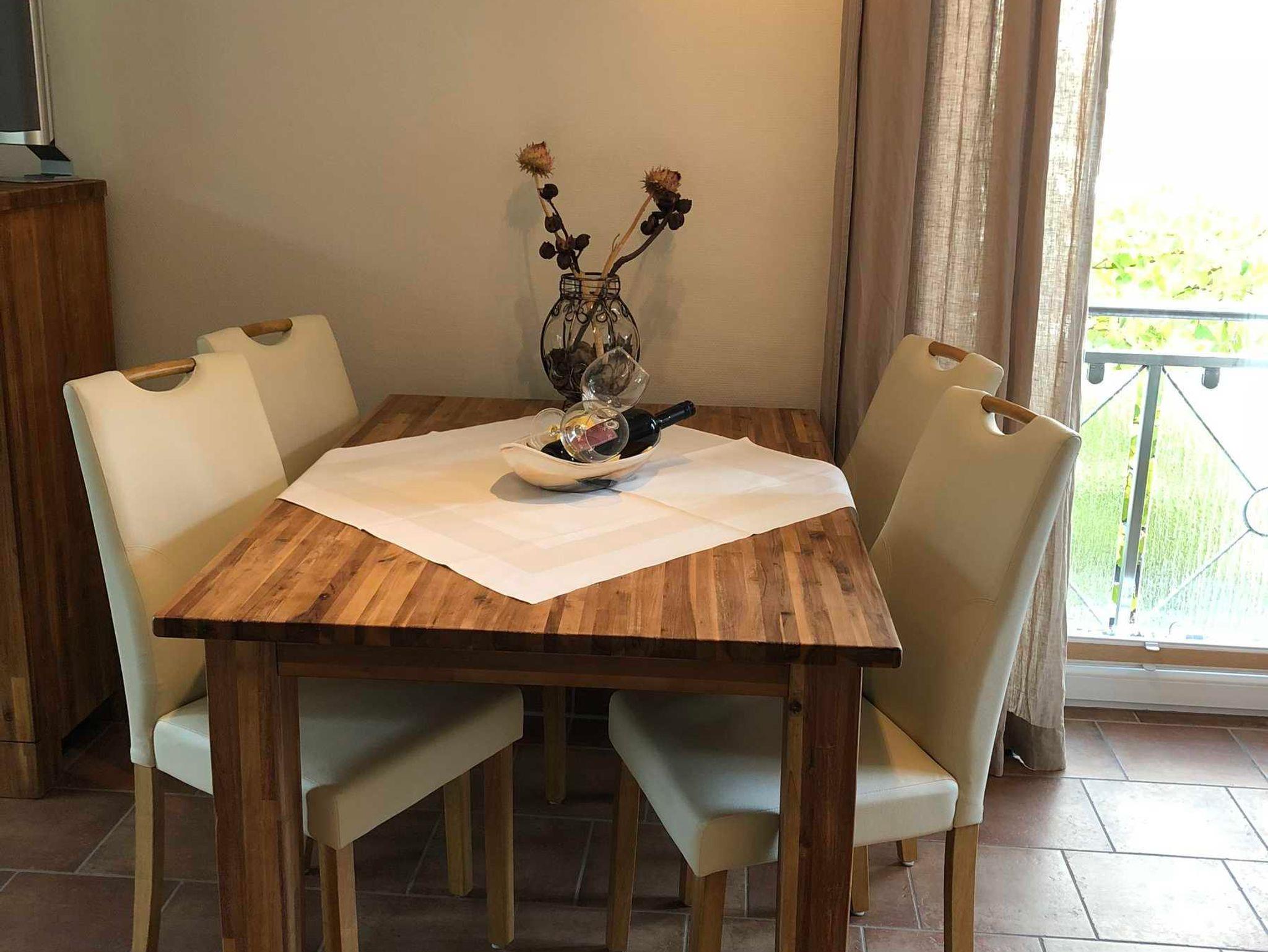 Die Wohnung befindet sich im 1. OG, Kurparkstr. 7,optimale Aufteilung ca. 52m². Sie ist neuwertig, voll möbliert und mit allem Komfort wie 2 Fernseher mit Radio u. Musiksender versehen. Wohn- und Essbereich Kurparkblick, Schlafzimmer mit Ausgang auf den möblierten Balkon, Flur, Duschbad, sep.Küche (Geschirrspüler, Backofen, Ceranfeld, Gefrierfach, Mikrowelle usw.) Alle Räume Terrakottafliesen, Schlafzimmer Vinylboden, sehr moderne Einrichtung, TV-Sprechanlage, Kabel-TV, Wlan, Aufzug. Im Haus befindet sich ein Sauna-Wellnessbereich, Waschmaschine und Trockner. Unsere Preise variieren, je nach Saison, zzgl. Endreinigung, zubuchbar Wäschepaket Parkplatz kostenlos. Diese Ferienwohnung ist für 1 -3Personen, modern und mediterran, eingerichtet.