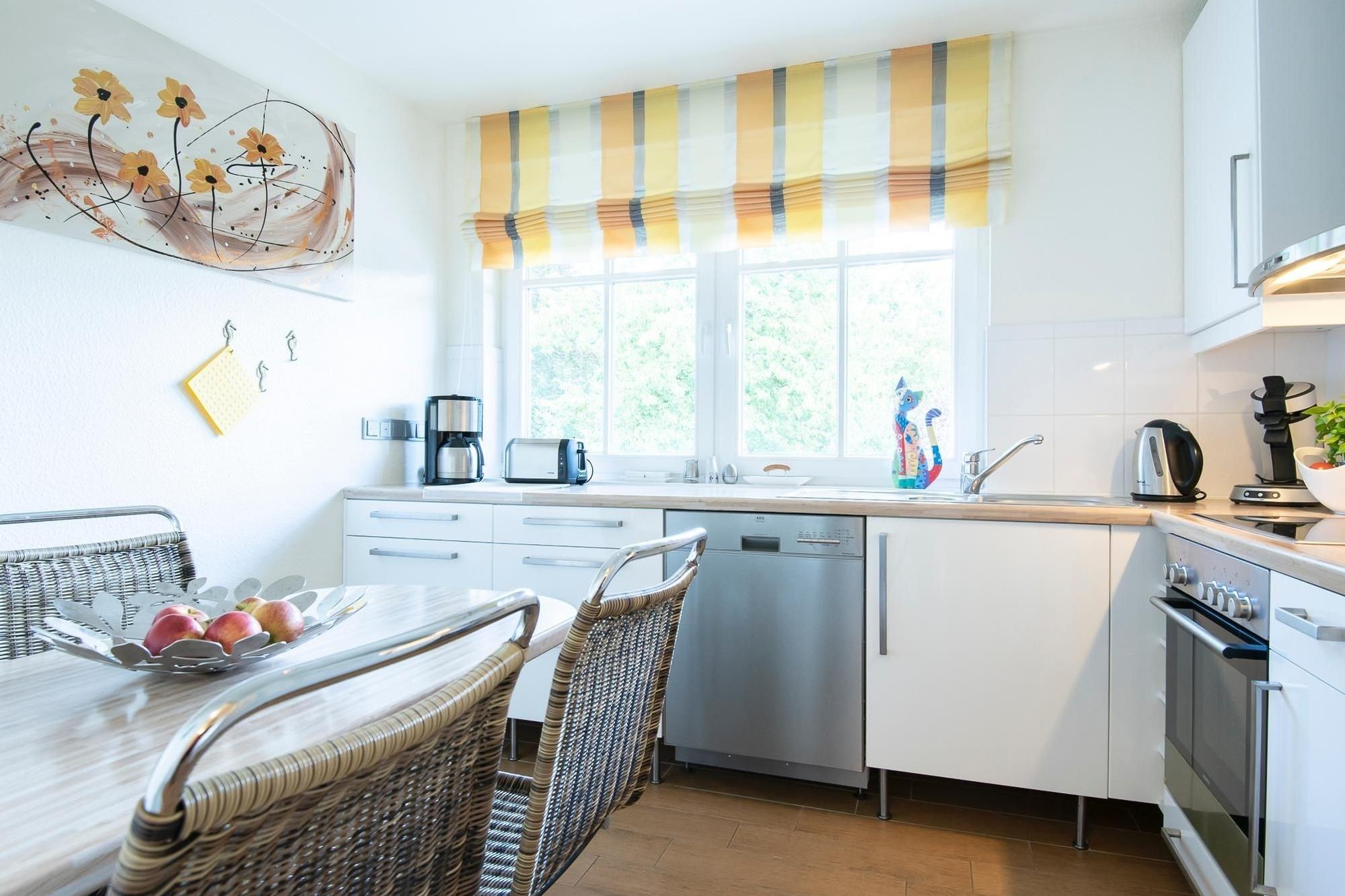 Es ist eine schöne Wohnung. Toll eingerichtete Küche. Man kann dort gemütlich wohnen.