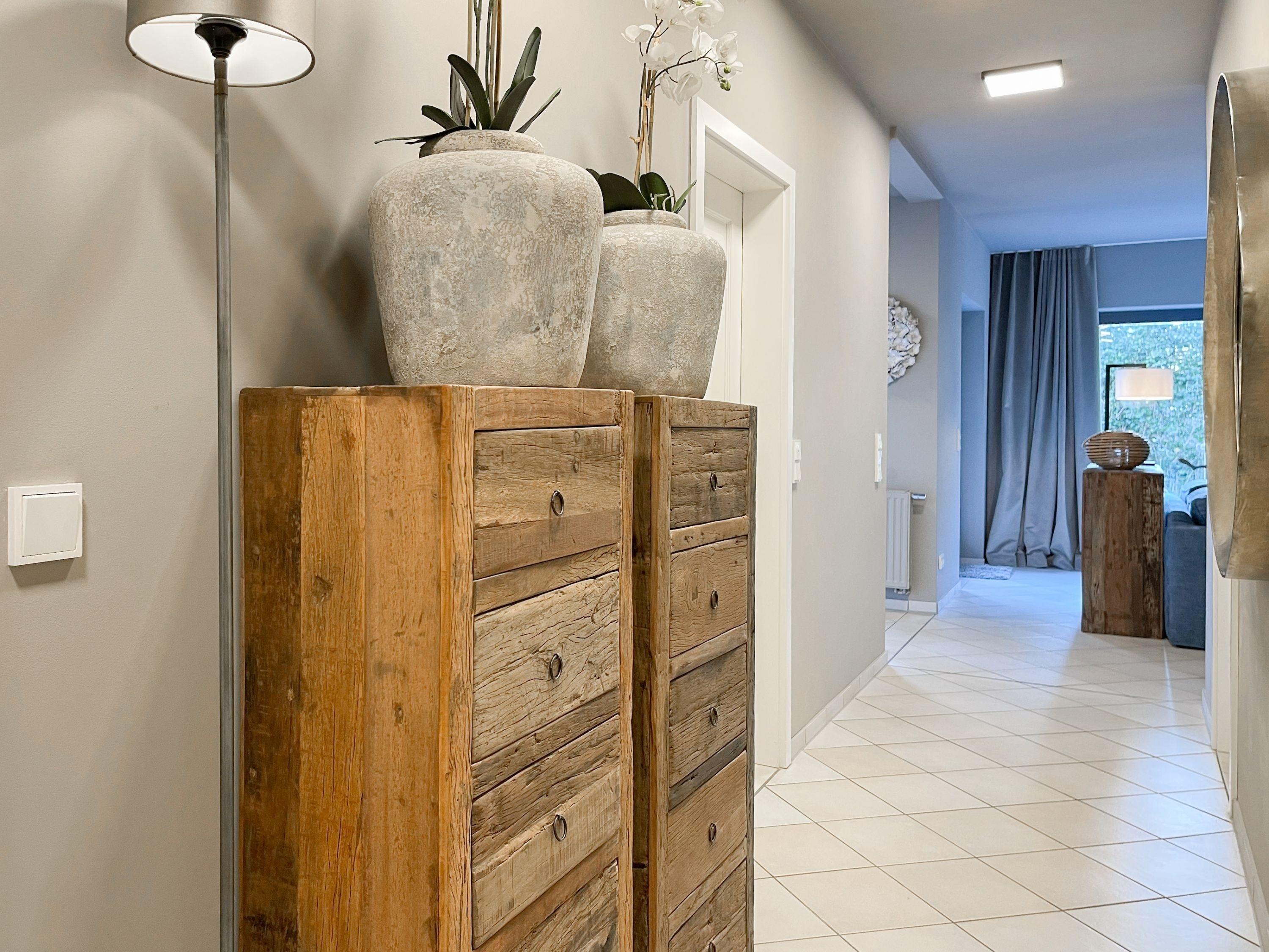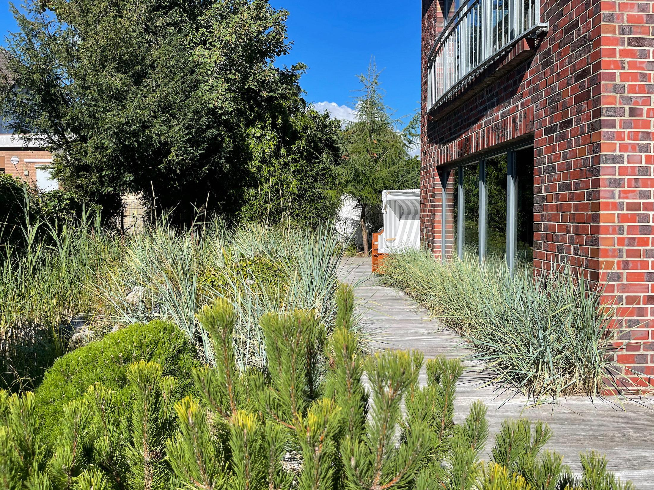 Deck 1 befindet sich im Erdgeschoss eines Ferienhauses mit nur 2 Wohnungen und bietet auf 90 qm Wohnfläche ausreichend Raum für 4 Personen, um einen erholsamen Ostseeurlaub zu verleben. Die hochwertige, äußerst geschmackvolle Einrichtung im Hampton Style schafft ein herrliches Ambiente zum Wohlfühlen, große, bodentiefe Fensterelemente sorgen für lichtdurchflutete Räumlichkeiten. Es stehen zwei separate Schlafzimmer zur Verfügung, die mit Boxspringbetten, Verdunklungsplissees, geräumigen Kleiderschränken und TV ausgestattet sind sowie 2 moderne Bäder mit Walk In Duschen, Waschtisch, WC[nbsp] und Fenster. Mittelpunkt der Wohnung bildet der großzügige Wohnbereich mit gemütlichen Sofas und herrlichem Blick in den wunderschön angelegten Garten. Der anschließende Essbereich ist für 4 Personen eingerichtet und die offene Küche ist selbstverständlich bestens ausgestattet. Der Außenbereich mit der 25 qm großen Terrasse (Südausrichtung), ausgestattet mit[nbsp] 2 Strandkörben und Gartenmöbeln,[nbsp] sowie der liebevoll gestaltete Gartenbereich mit großer Teichanlage, Goldfischen, Gräsern und Bambus stellt ein besonderes Highlight dar und wird garantiert zu jeder Tageszeit zum Lieblingsplatz. So bezaubernd die Teichanlage auch ist, könnte sie insbesondere für kleine Kinder eine Gefahr darstellen. Die Waschmaschine ist in einem separaten Raum innerhalb der Wohnung untergebracht. WLAN steht selbstverständlich zu kostenlosen Nutzung zur Verfügung. Fahrradständer befinden sich vor dem Eingang. Es fester Tiefgaragenstellplatz (Einfahrt 2 m) gehört zur Wohnung.