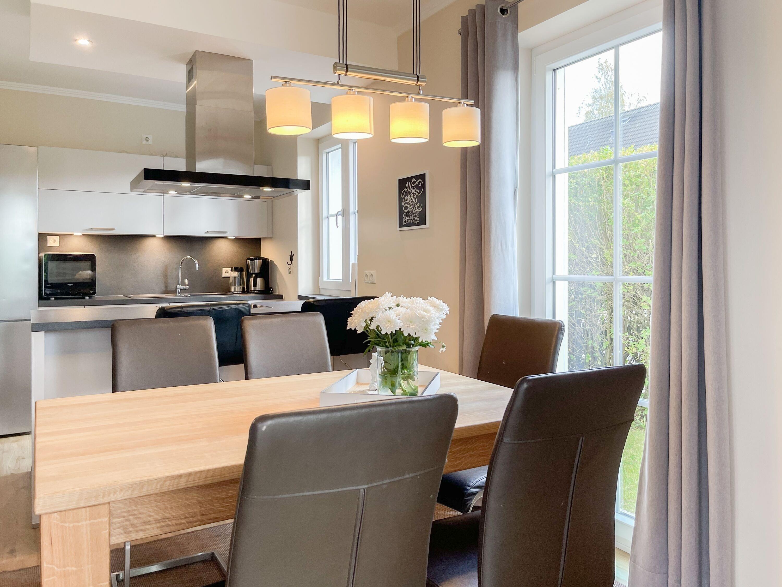 Es erwartet Sie ein wunderschönes Doppelhaus im Hampton Style. Sonnige Räumlichkeiten und die hochwertige Ausstattung sorgen für hohen Wohnstandard in einem schönen Ambiente. Mit 3 Schlafzimmern, einem modernen Bad mit Dusche und Badewanne sowie einem zusätzlichen Gäste WC, bietet das Haus auf[nbsp] 75 qm Wohnfläche ausreichend Raum für 5 Personen, um einen erholsamen Ostseeurlaub ganz nah am Strand zu verbringen. Im Erdgeschoss erwartet Sie ein gemütlich eingerichteter Wohnbereich mit Sofa, TV und Kaminofen, ein anschließender Essbereich sowie eine offene Einbauküche in bester Ausstattung zum gemeinsamen Kochen. Die vorgelagerte überdachte Veranda in Südausrichtung mit Garten ist ein herrlicher Platz zum Entspannen oder für Outdoor Aktivitäten. Ein Schlafzimmer, ausgestattet mit einem Einzelbett (90x200) und einer Kommode[nbsp] sowie ein Gäste WC, sind ebenfalls im Erdgeschoss untergebracht. Im Obergeschoss gibt es zwei separate Schlafzimmer, eines ist mit einem Doppelbett (180x200), einem Kleiderschrank und einem weiteren[nbsp] TV ausgestattet. Das andere ist mit 2 Einzelbetten (90x200), einem Kleiderschrank und einem Schreibtisch für das Homeoffice eingerichtet. Das hochwertige Bad mit Badewanne, Dusche und integrierter Waschmaschine, ist modern und lichtdurchflutet. Die Fenster der Schlafzimmer lassen sich abdunkeln (keine Blackout Verdunkelung). WLAN steht selbstverständlich zur Verfügung.