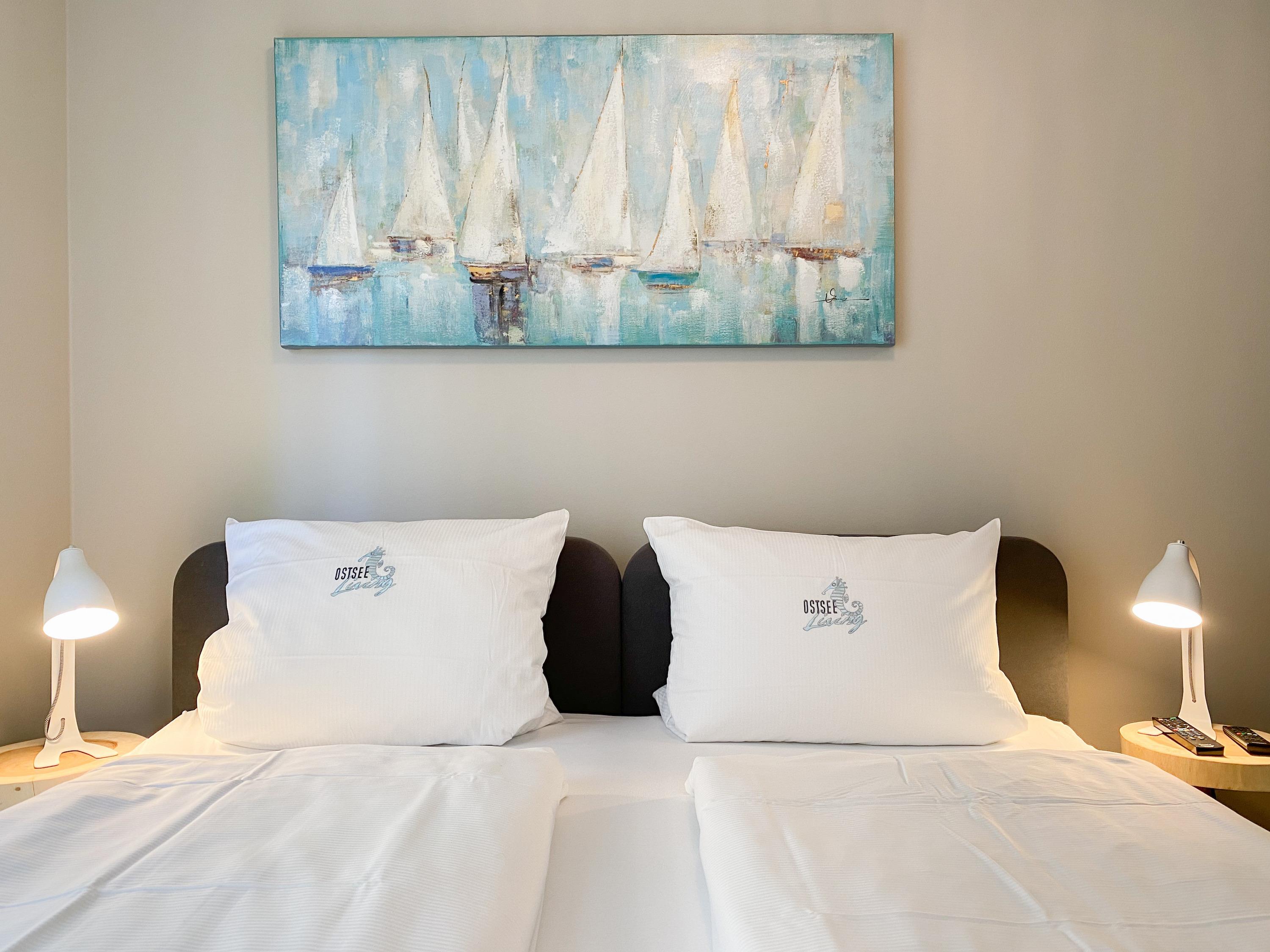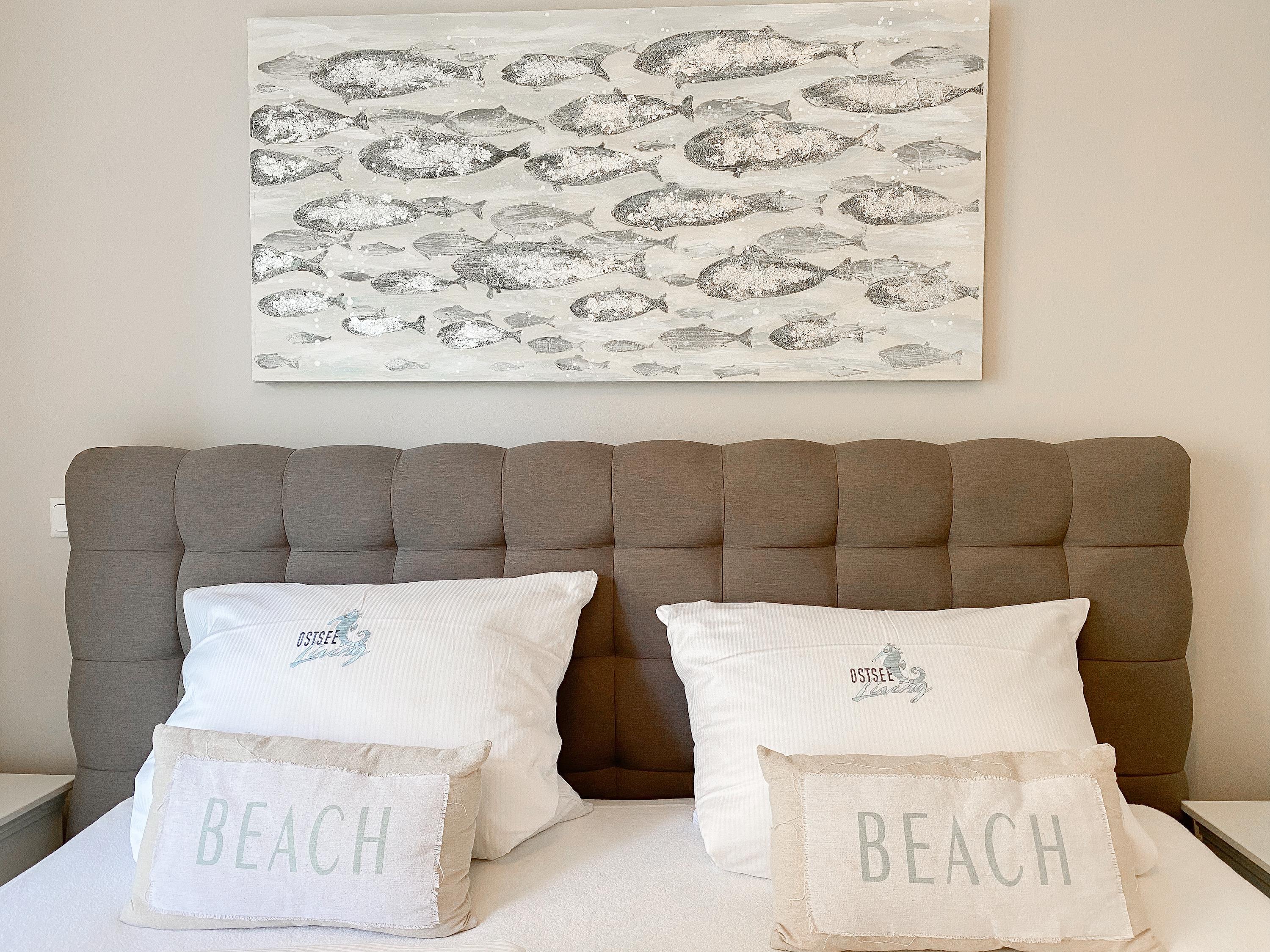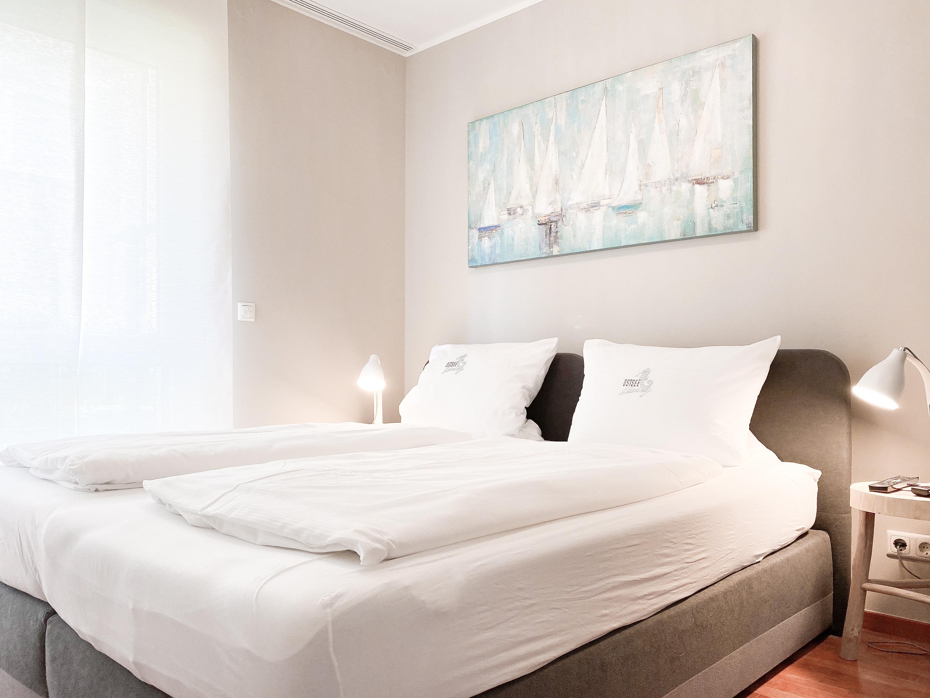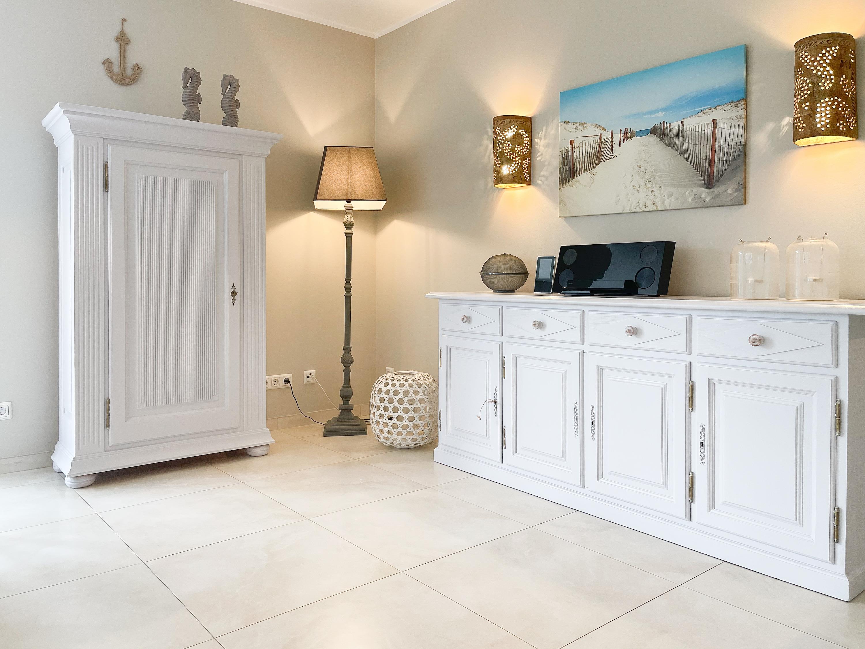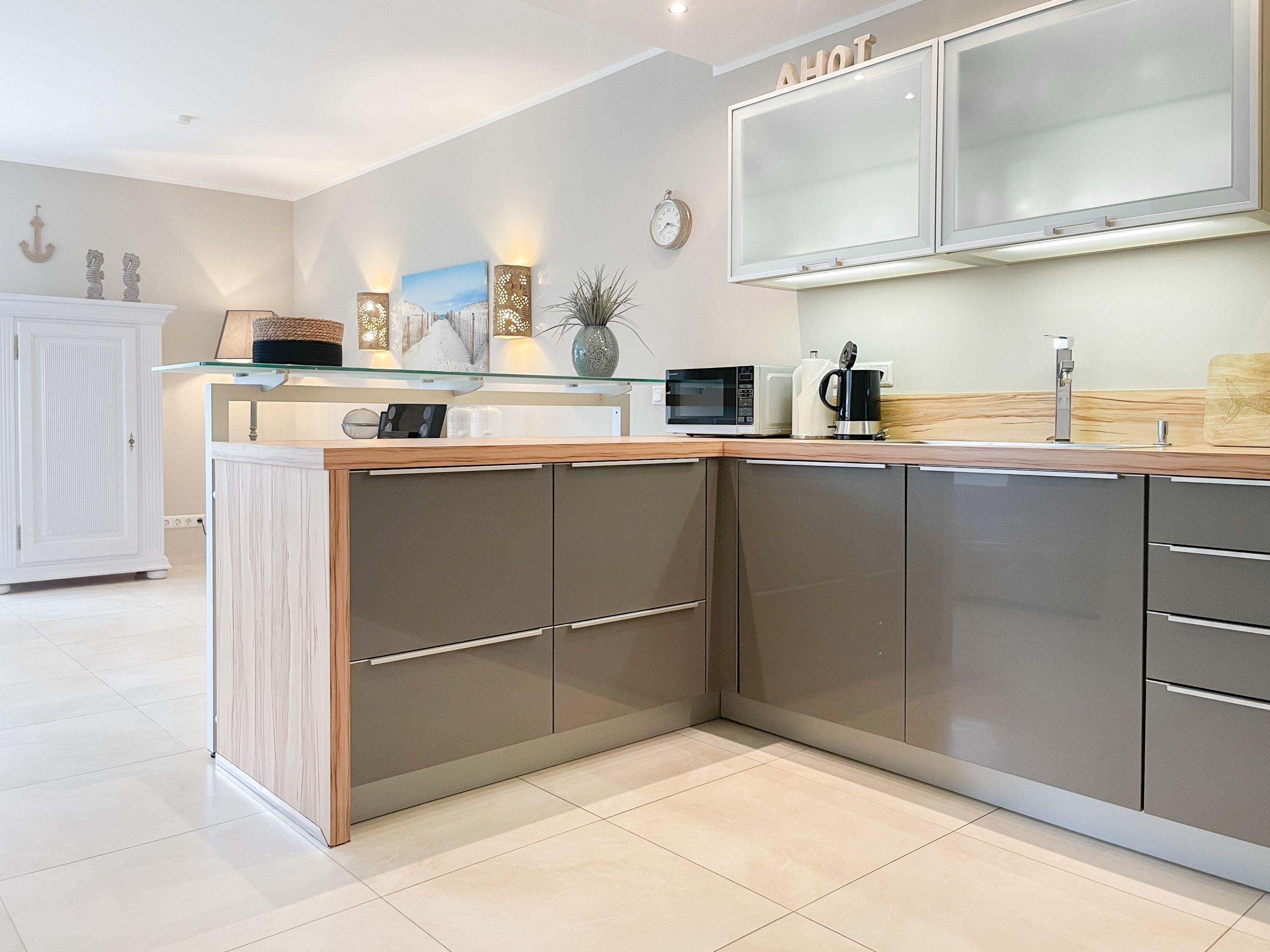 Die hochwertige Ferienwohnung "Fritz Strandkate" verfügt über einen großzügigen Wohnbereich mit angrenzendem Essbereich, der ausreichend Platz für 6 Personen bietet. TV, Hifi Anlage und WLAN sind selbstverständlich vorhanden. Bodentiefe Fensterelemente und die Südausrichtung der Wohnung sorgen für helle und sonnige Räumlichkeiten. Sämtliche Fenster sind mit elektrischen Außenjalousien versehen und die Fußbodenheizung sorgt für ein angenehmes Raumklima.[nbsp] Die offene, hochwertige Einbauküche ist bestens ausgestattet und lässt keine Wünsche offen. Es stehen zwei separate Schlafzimmer mit TV zur Verfügung. [nbsp]Eines ist mit einem komfortablen Doppelbett[nbsp] ausgestattet, das andere mit zwei Einzelbetten, die sich schnell zusammen stellen lassen. Das Bad ist sehr hochwertig und verfügt über eine bodentiefe XXL Dusche. Ein separates Gäste WC ist selbstverständlich vorhanden. Das Haus am Meer verfügt über einen Fahrstuhl und eine Tiefgarage (Einfahrtshöhe 2 m), in der ein fester Stellplatz reserviert ist. Ein Fahrradkeller, Münzwaschmaschine und -Trockner sind vorhanden.