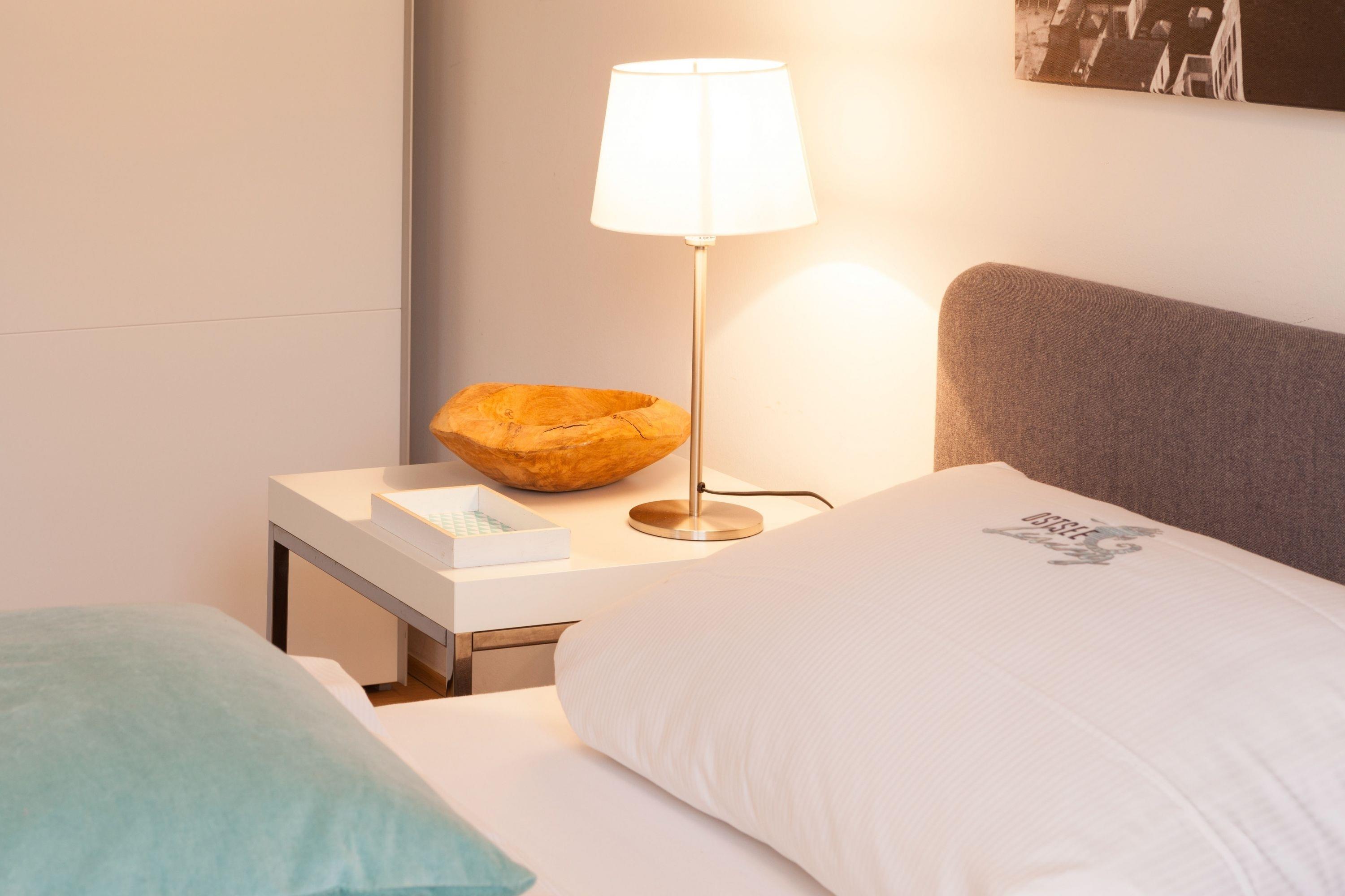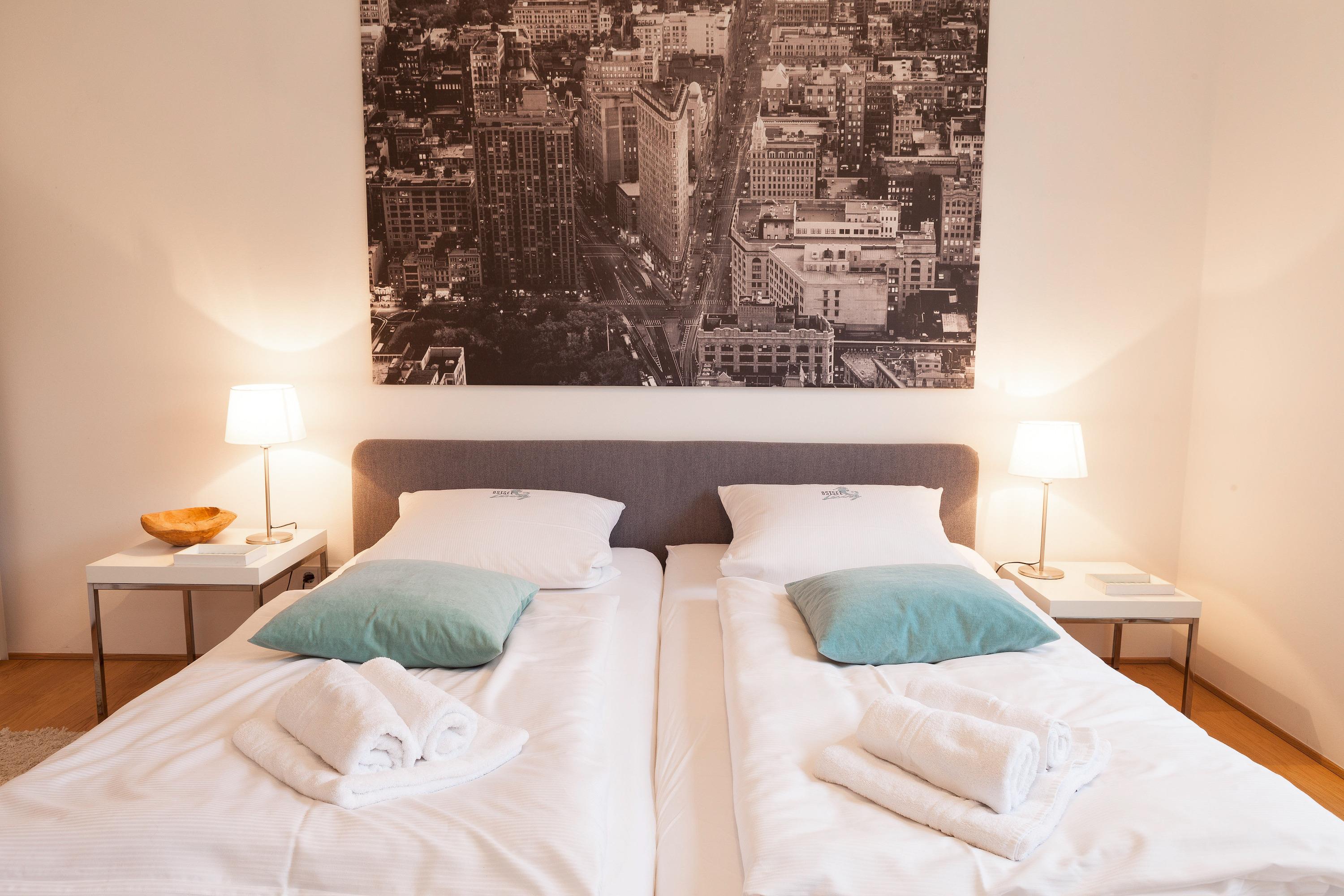 Die moderne, stilvoll eingerichtete Wohnung ist komplett mit Echtholzparkett ausgestattet. Alle Fensterelemente sind bodentief und mit elektrischen Außenjalousien versehen. Es gibt einen großzügigen Wohnraum mit Ethanolkamin, TV, Radio und WLAN[nbsp] und einen tollem Blick bis zur Ostsee. Die offene, moderne Einbauküche mit großzügigem Essbereich genügt höchsten Ansprüchen und verfügt über Mikrowelle, Backofen, Spülmaschine und Induktionskochfeld. Zwei separate Schlafzimmer (ein Doppelbett 200x200 und 2 Einzelbetten 80x200), ein weiterer TV mit integriertem DVD Laufwerk sowie ein modernes Bad mit großem, ebenerdigen Duschbereich und Fußbodenheizung stehen zur Verfügung. Die riesige, 50 qm große Terrasse ist mit Esstisch und Stühlen sowie mit gemütlichen Loungemöbeln ausgestattet, überdacht und windgeschützt. Herrlich zum Entspannen und den schönen Blick auf die Ostsee zu genießen. Das Haus am Meer verfügt über einen Fahrstuhl und eine Tiefgarage (Einfahrstshöhe 2 m), in der ein fester Stellplatz reserviert ist. Ein Fahrradkeller, Münzwaschmaschine und -Trockner sind vorhanden. Für unsere kleinen Gäste befindet sich auf der Gartenseite des Hauses ein Spielplatz.