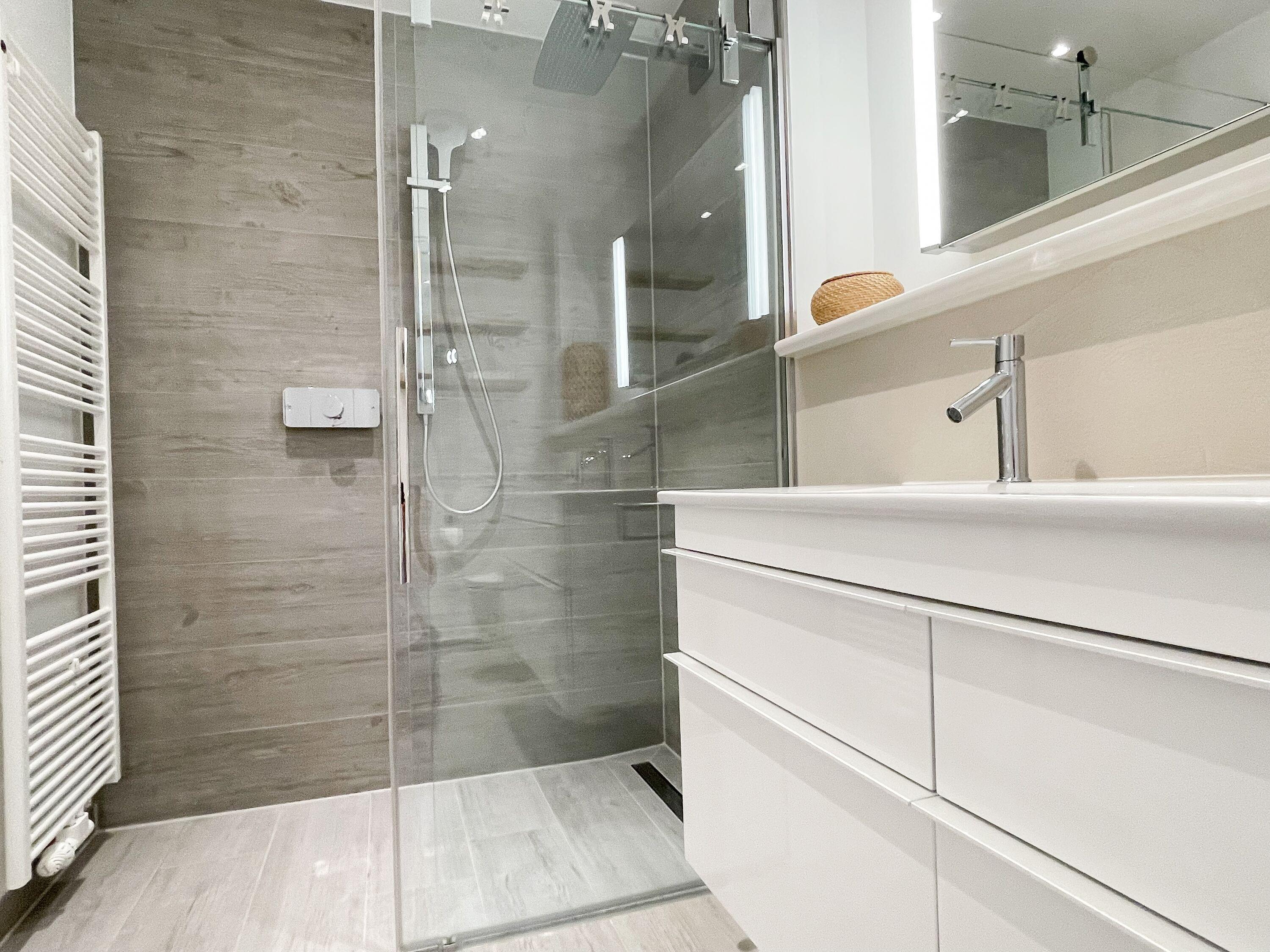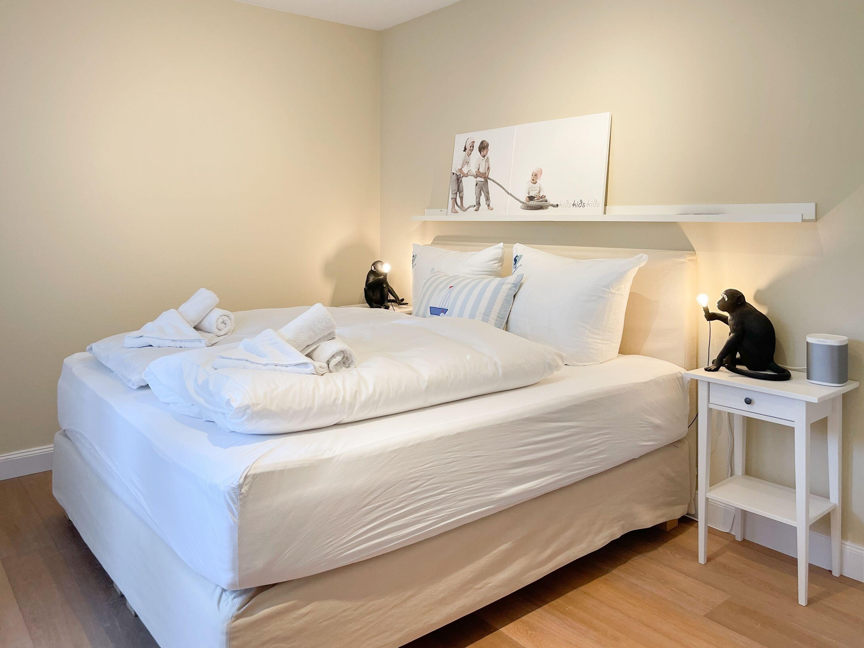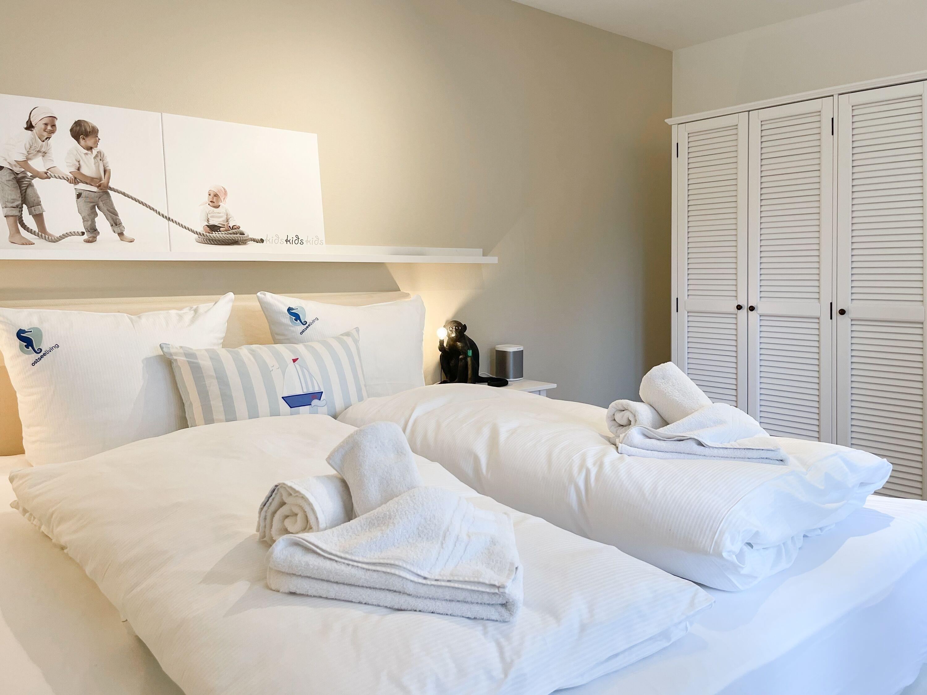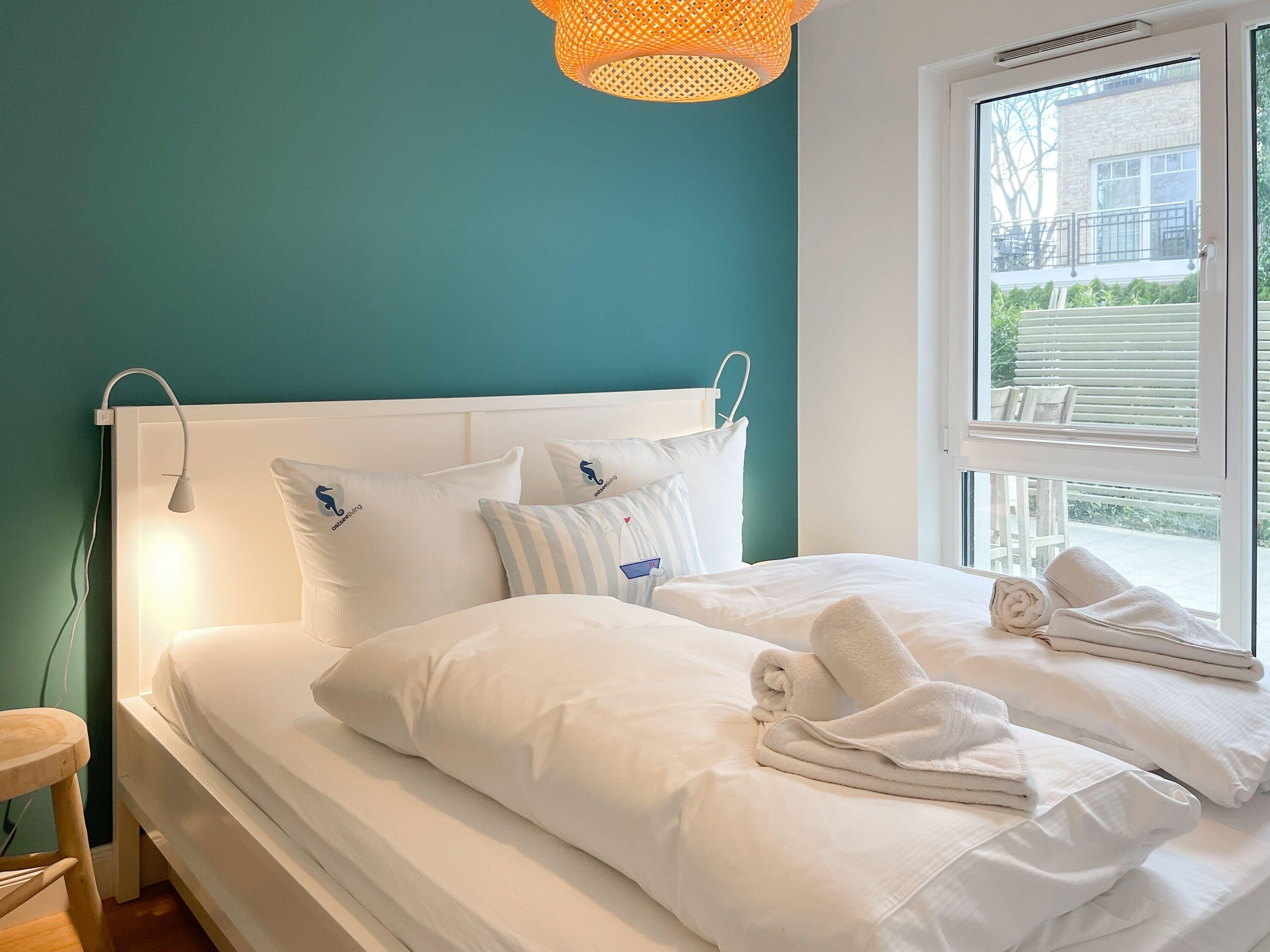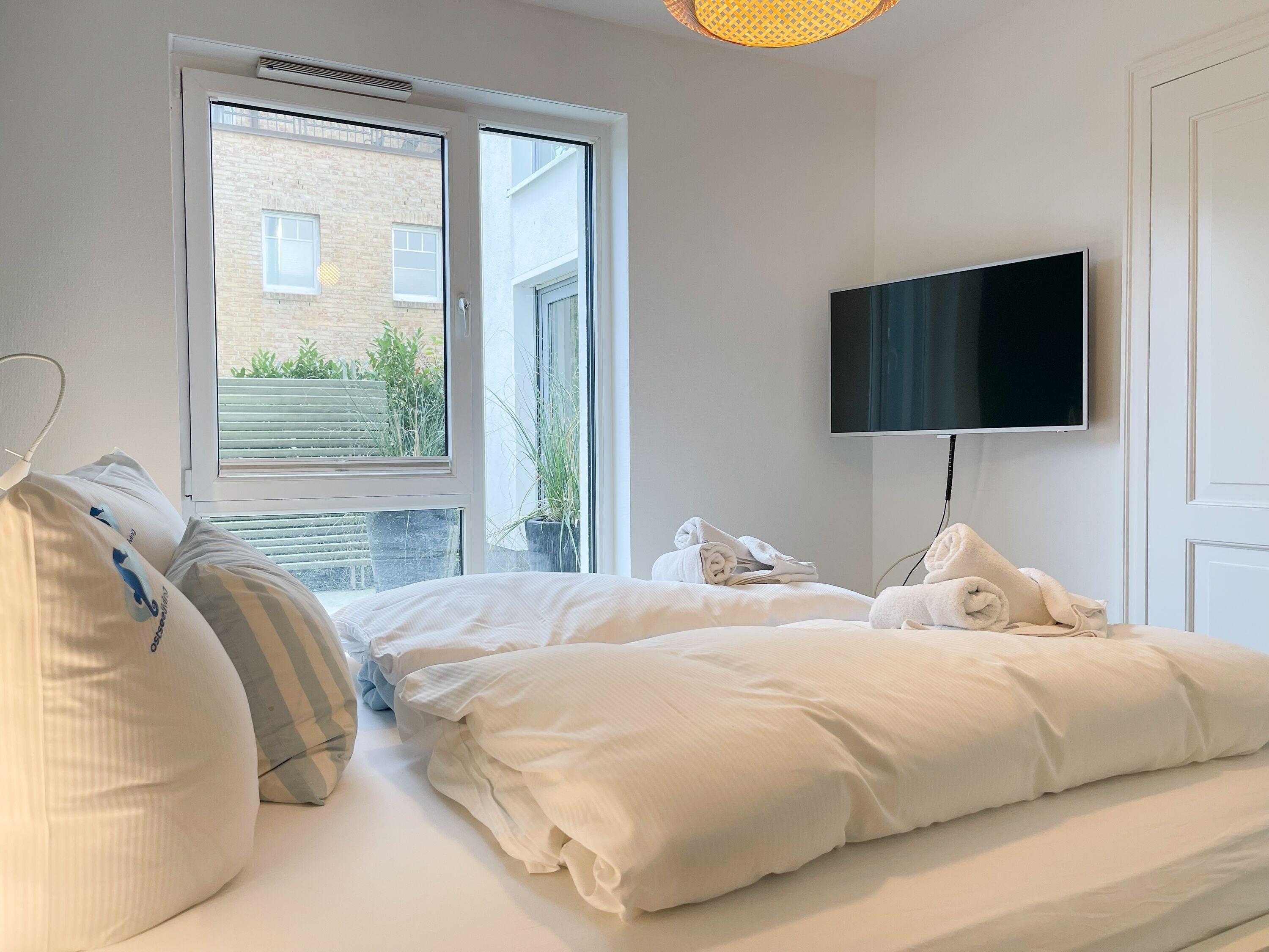 Ein absolutes Highlight dieser Wohnung ist die große Terrasse in Südost-Ausrichtung mit gemütlichen Loungemöbeln, Markise und Blick bis auf die Ostsee. Die Terrassentür lässt sich mit dem Hausschlüssel öffnen und dient als privater Eingangsbereich, sodass Sie direkt über die eigene Terrasse und durch den Garten mit wenigen Schritten am Strand sind. Die Ferienwohnung ist äußerst großzügig geschnitten, gut ausgestattet und geschmackvoll eingerichtet, sodass ein hoher Wohnstandard in einem schönen Ambiente gewährleistet ist. Bodentiefe Fenster sorgen für helle und sonnige Räumlichkeiten und ermöglichen einen schönen Blick bis auf die Ostsee. Alle Fenster sind mit elektrischen Außenjalousien versehen und die Fußbodenheizung sorgt für ein angenehmes Raumklima. Es erwartet Sie ein großzügiger Wohnbereich, eingerichtet mit einem gemütlichen Sofa, TV, WLAN und Sonos Anlage. Die offene Luxusküche mit Insel und angrenzendem Essbereich ist bestens ausgestattet und macht Lust auf gemeinsames Kochen.[nbsp] Es stehen zwei separate Schlafzimmer mit Doppelbetten (180x200) und TV zur Verfügung.[nbsp] Das Bad ist sehr hochwertig mit Walk IN Dusche und integrierter Waschmaschine und Trockner. Ein separates Gäste WC ist ebenfalls vorhanden. Das Haus am Meer verfügt über einen Fahrstuhl und eine Tiefgarage (Einfahrtshöhe 2 m), in der ein fester Stellplatz reserviert ist. Ein Fahrradkeller ist vorhanden.