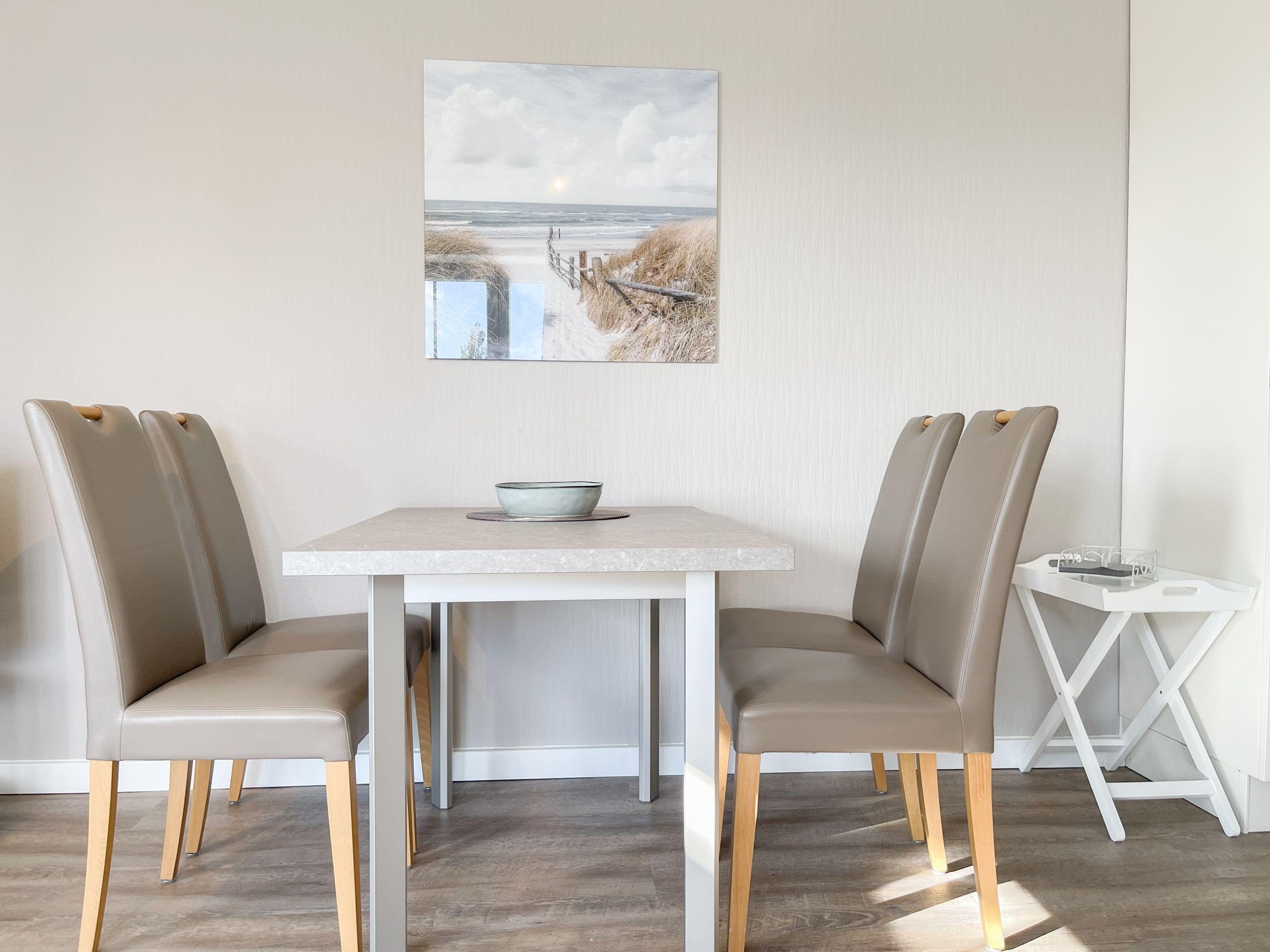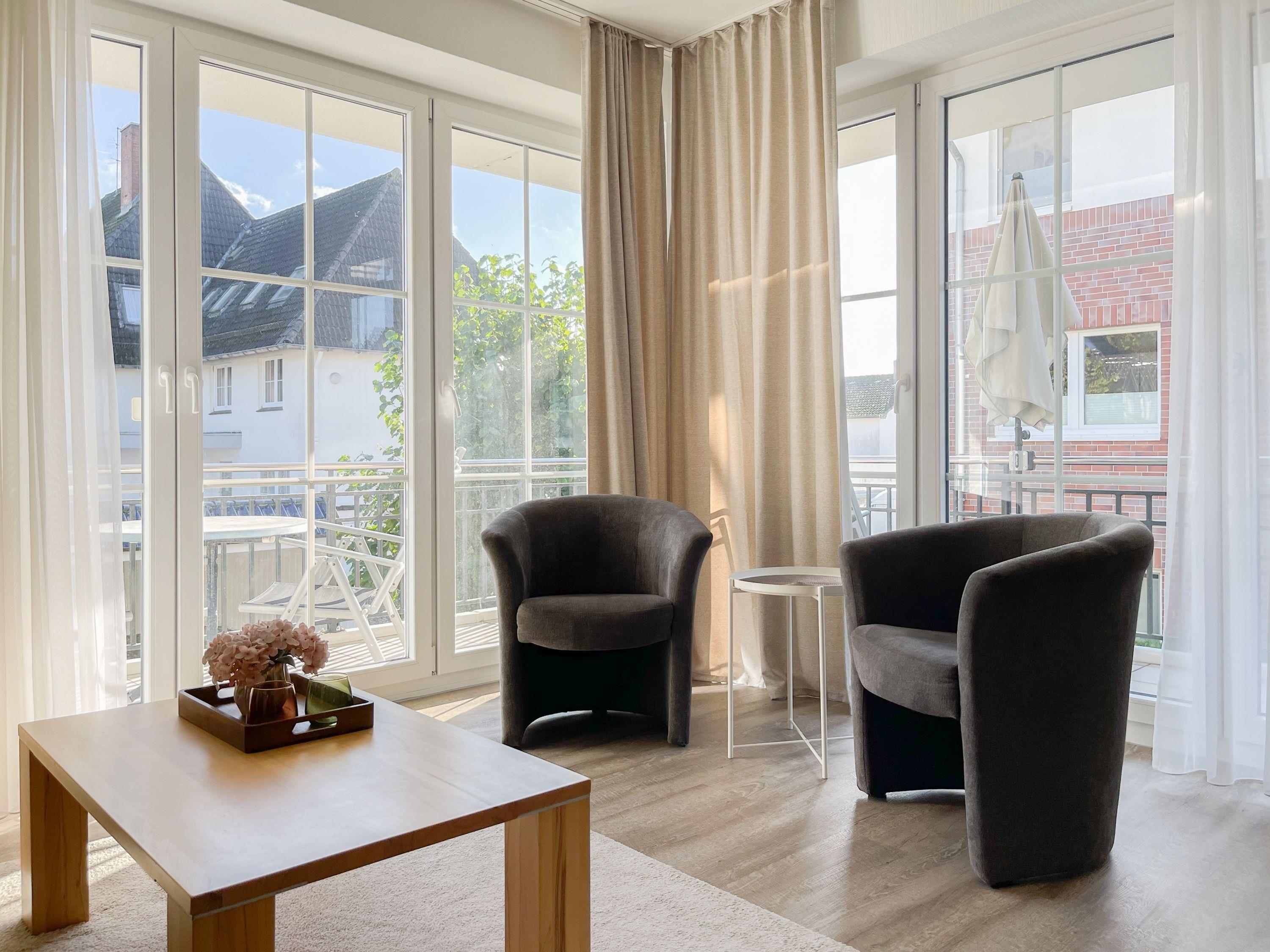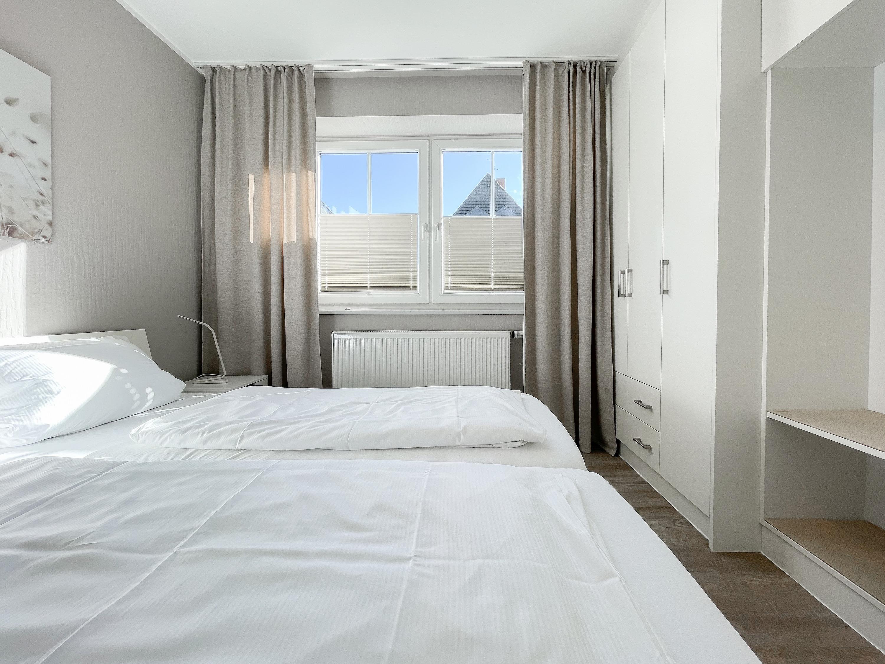 Die komfortable Ferienwohnung bietet mit zwei separaten Schlafzimmern, jeweils ausgestattet mit einem Doppelbett[nbsp] und Verdunkelungsmöglichkeit, ausreichend Platz für einen entspannten Urlaub für 4 Personen. Es erwartet Sie ein sonniger Wohnbereich mit bodentiefen Fensterelementen und umlaufendem Südbalkon sowie eine gut ausgestattete, offene Küche. Der angrenzende Essbereich ist für 4 Personen ausgelegt. TV, WLAN und Hifi Anlage stehen zur Verfügung. Das moderne Bad ist mit Dusche, Fenster, Handtuchwärmer, Föhn und Kosmetikspiegel ausgestattet.