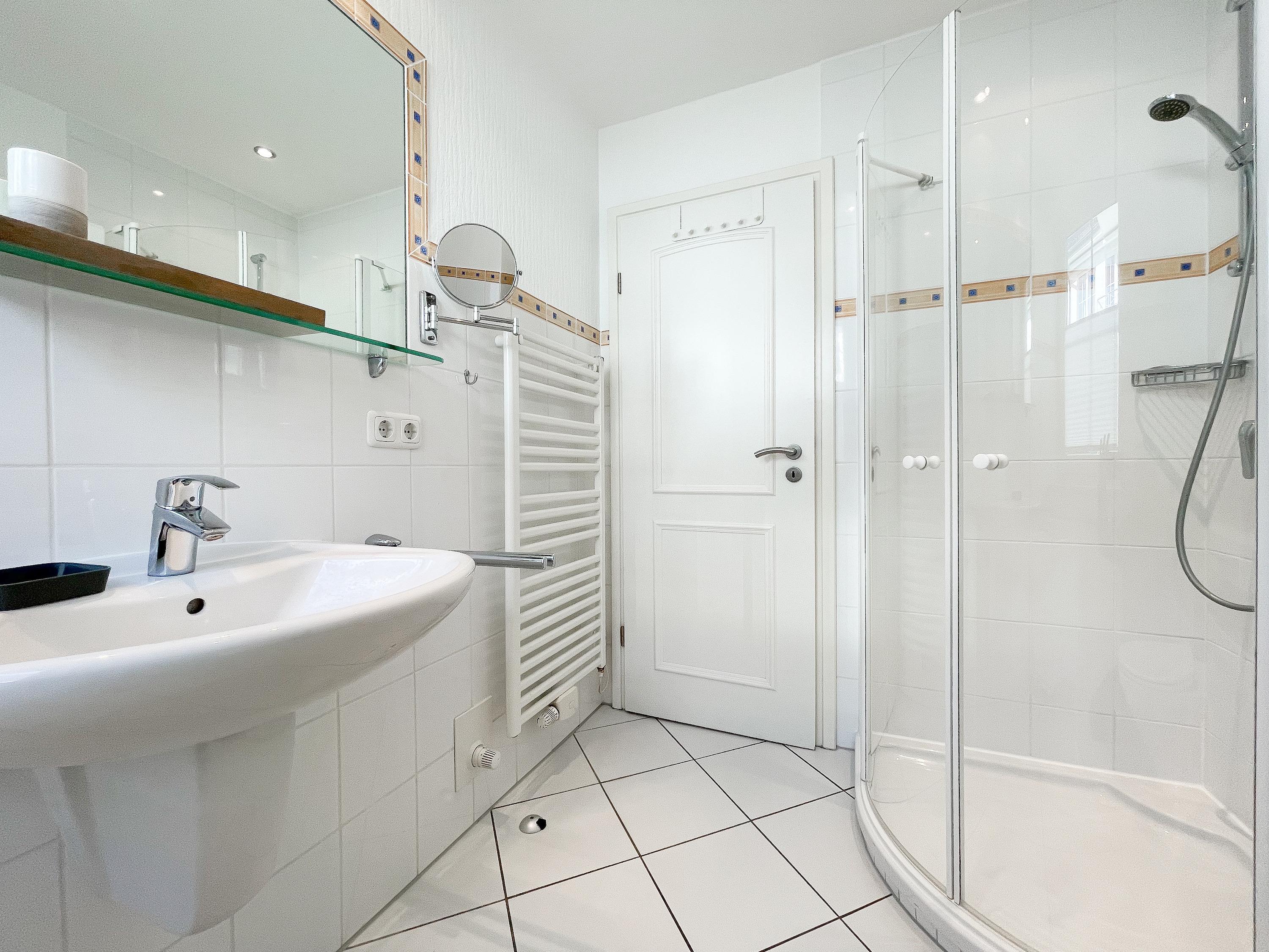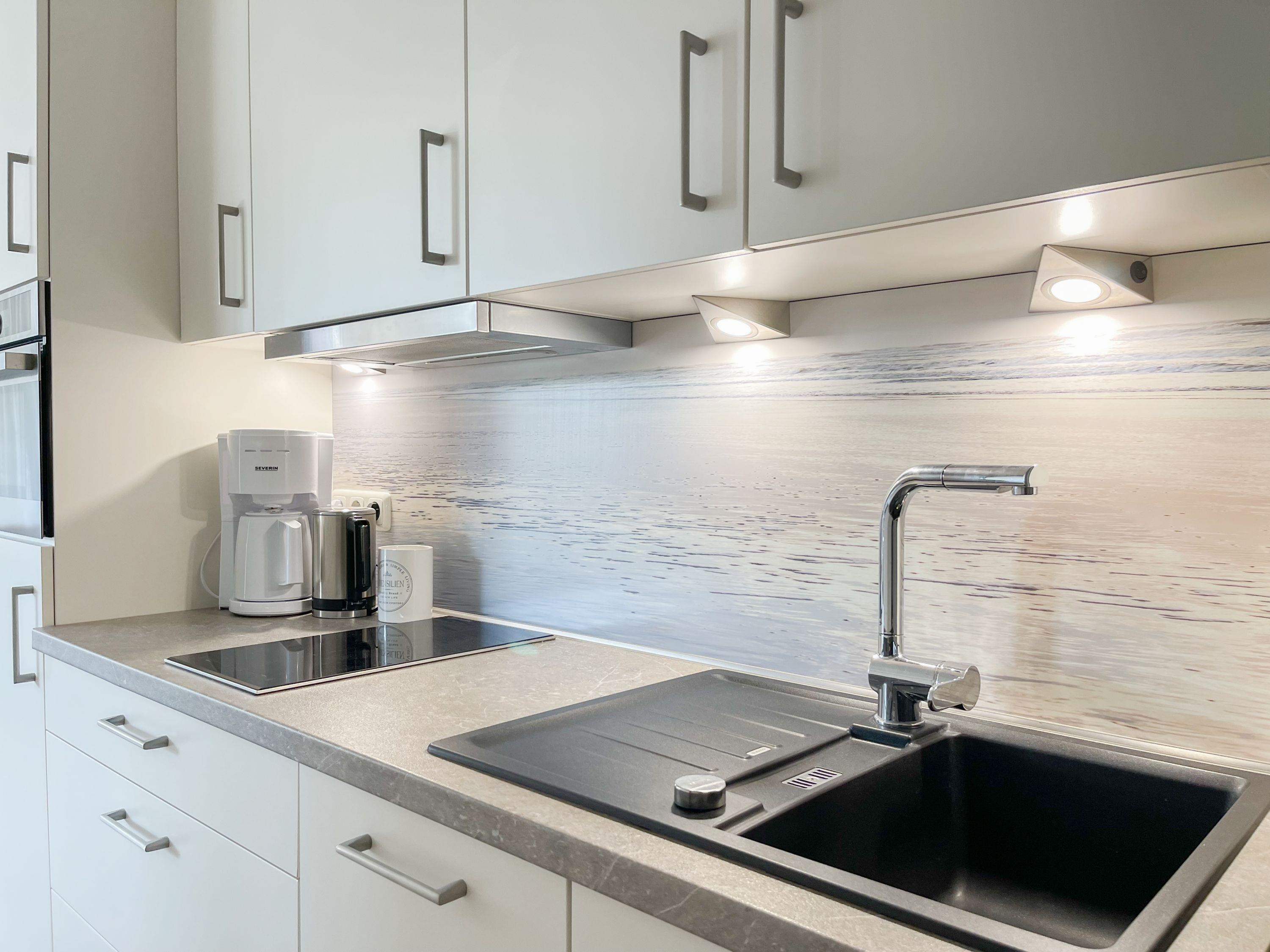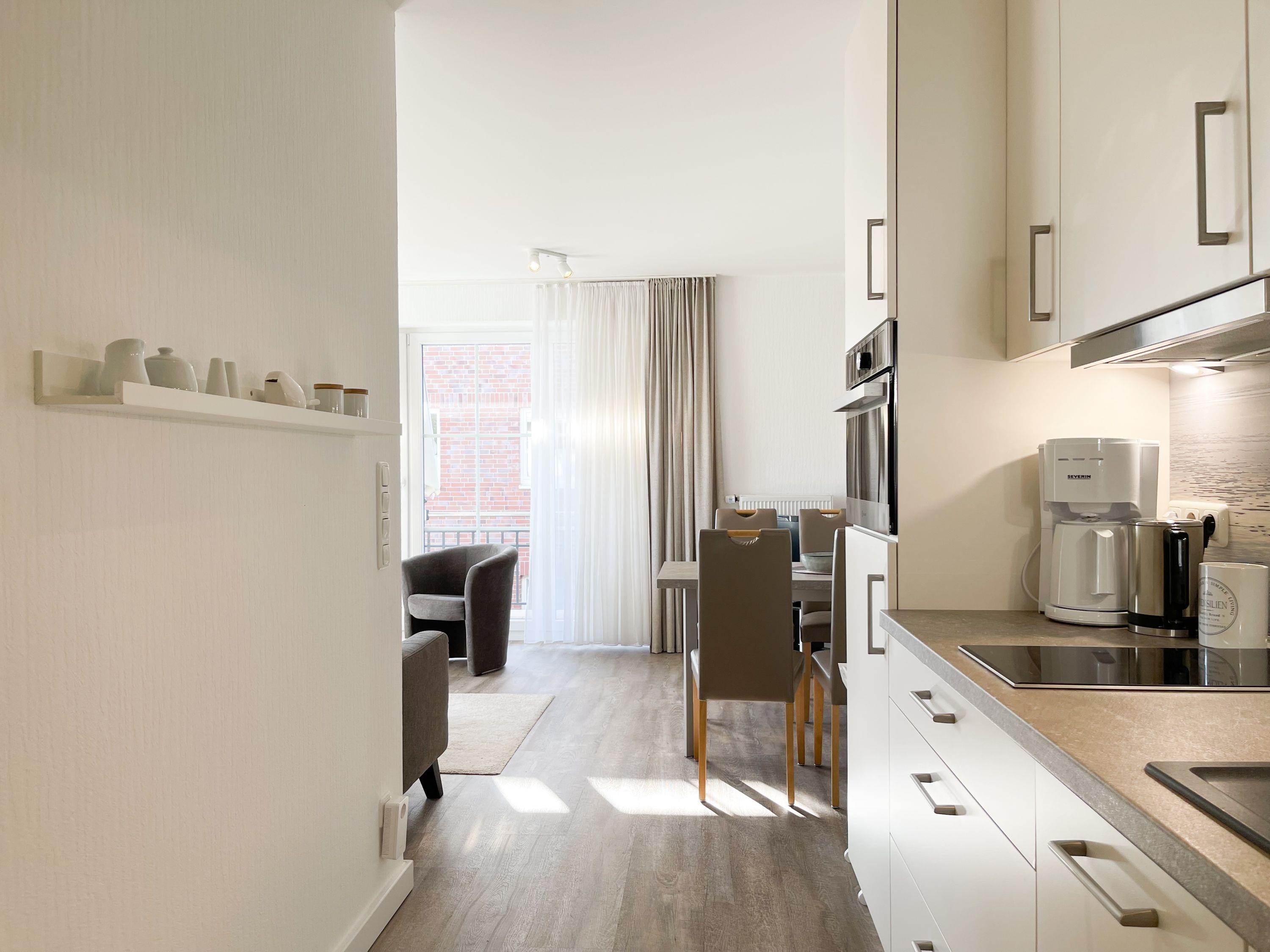 Die komfortable Ferienwohnung bietet mit zwei separaten Schlafzimmern, jeweils ausgestattet mit einem Doppelbett[nbsp] und Verdunkelungsmöglichkeit, ausreichend Platz für einen entspannten Urlaub für 4 Personen. Es erwartet Sie ein sonniger Wohnbereich mit bodentiefen Fensterelementen und umlaufendem Südbalkon sowie eine gut ausgestattete, offene Küche. Der angrenzende Essbereich ist für 4 Personen ausgelegt. TV, WLAN und Hifi Anlage stehen zur Verfügung. Das moderne Bad ist mit Dusche, Fenster, Handtuchwärmer, Föhn und Kosmetikspiegel ausgestattet.