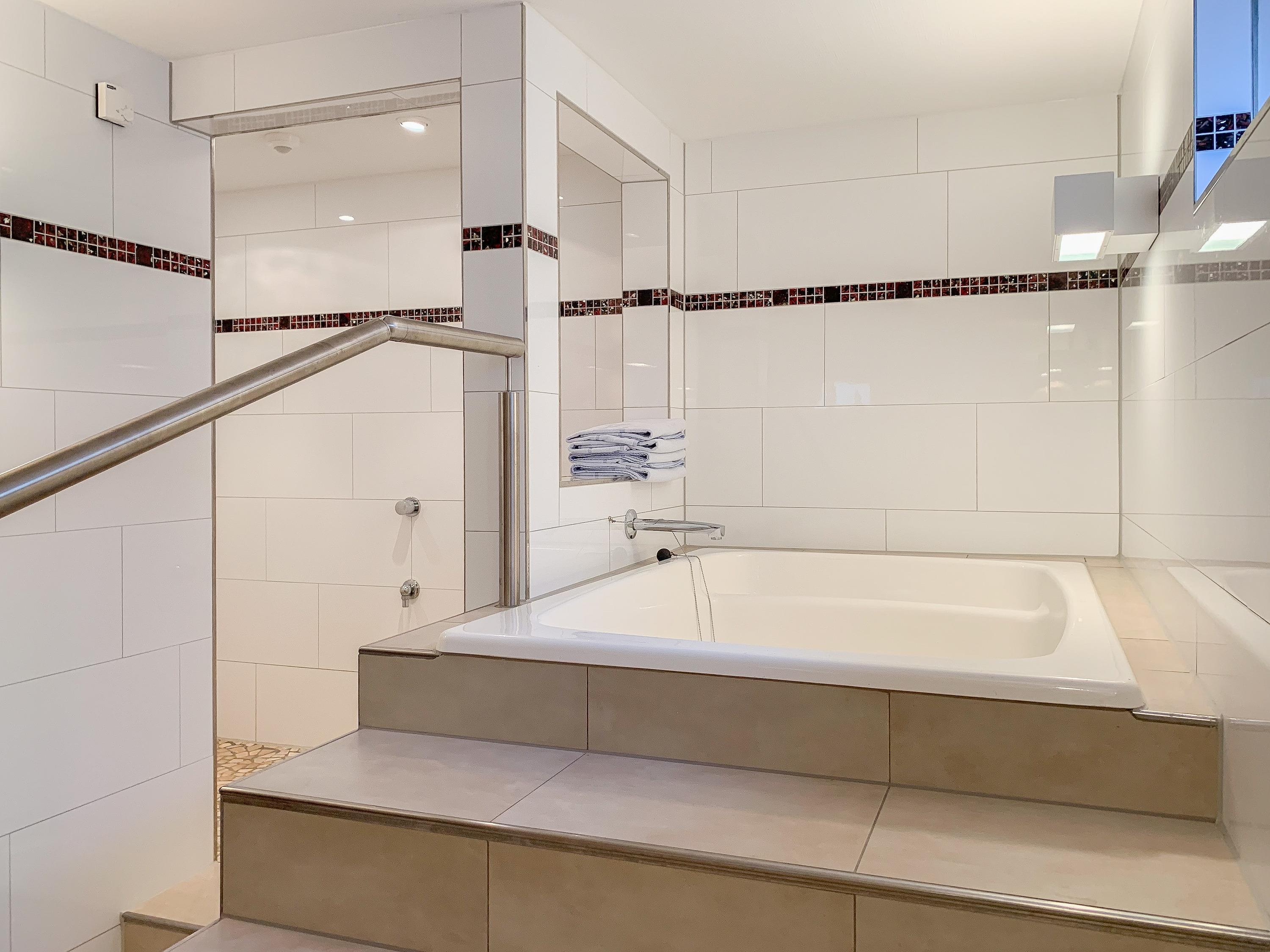 Entspannen können Sie im hauseigenen Wellnessbereich mit Sauna (Nutzung gegen Gebühr), Tauchbecken, Dusche, Crosstrainer und Kicker, der unseren Gästen zur gemeinschaftlichen Nutzung zur Verfügung steht. Ebenso Waschmaschine und Trockner (Münzgeräte).[nbsp] Ein PKW Stellplatz (Carport) und Fahrradständer(außen) befinden sich[nbsp] auf dem Grundstück.