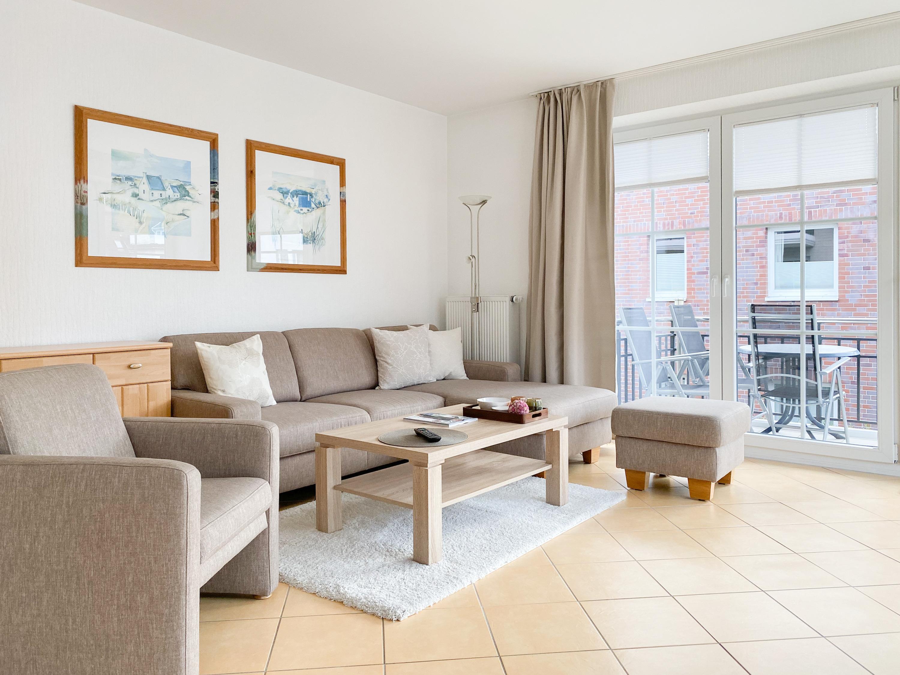 Im ersten Obergeschoss des Ferienhauses Matito befindet sich die gepflegte Ferienwohnung, die bequem mit dem Aufzug zu erreichen ist und für maximal 4 Personen geeignet ist.[nbsp] Es erwartet Sie eine gut ausgestattete Küche, eine anschließende Essecke für 4 Personen sowie ein großzügig angelegter Wohnbereich mit hochwertiger Couchgarnitur und komfortablem Schrankbett, TV, Radio und WLAN. Große, bodentiefe Fensterelemente sorgen für eine helle und freundliche Wohnatmosphäre. Der großzügige Sonnenbalkon über Eck ist mit Gartenmöbeln ausgestattet und lädt zu jeder Tageszeit zum Verweilen ein.[nbsp] Das separate Schlafzimmer ist mit einem Doppelbett ausgestattet, die Fenster sind mit Verdunkelungsplissees versehen. Das moderne, helle Duschbad verfügt über einen[nbsp] Handtuchwärmer, Föhn und Kosmetikspiegel.