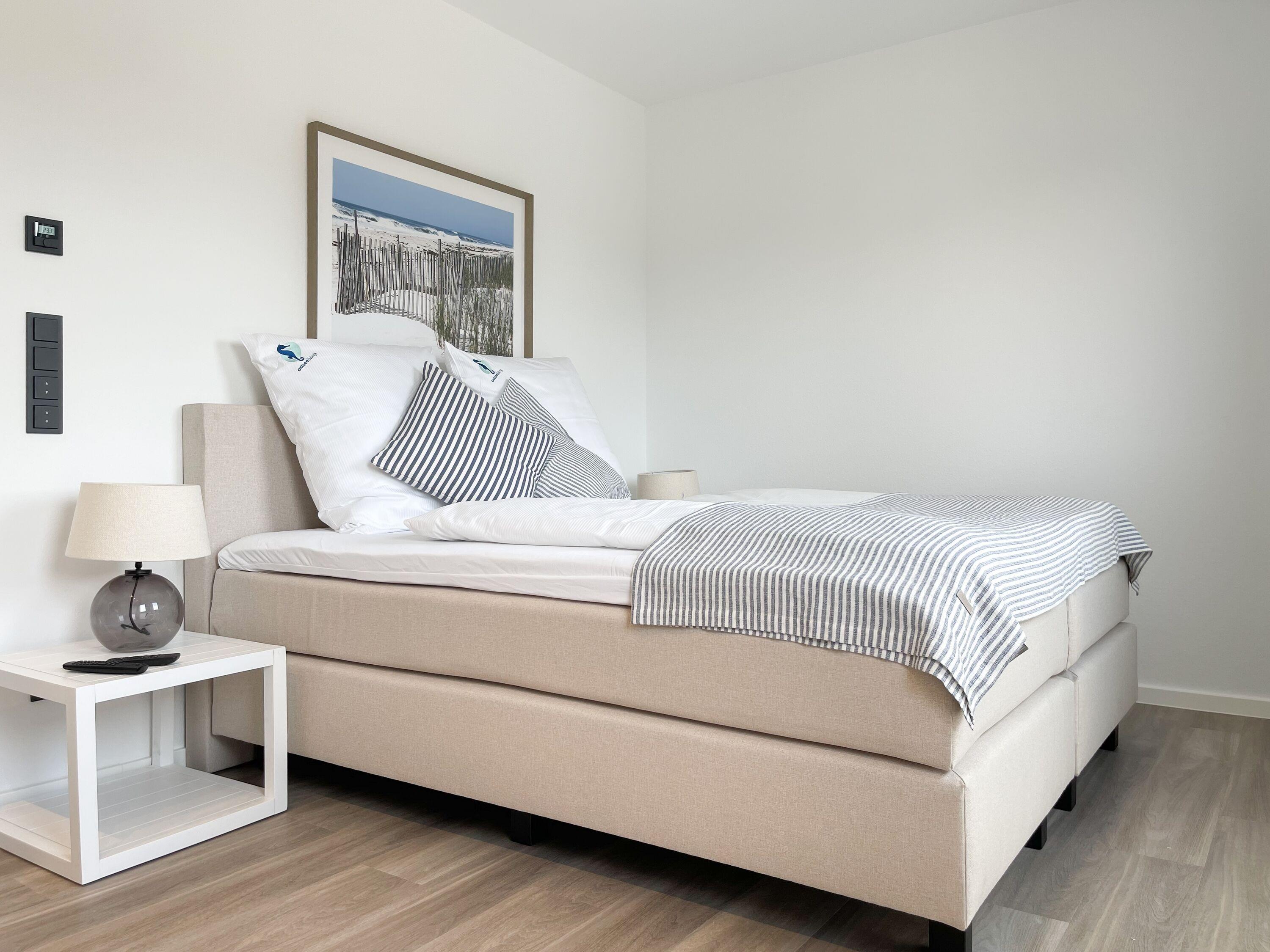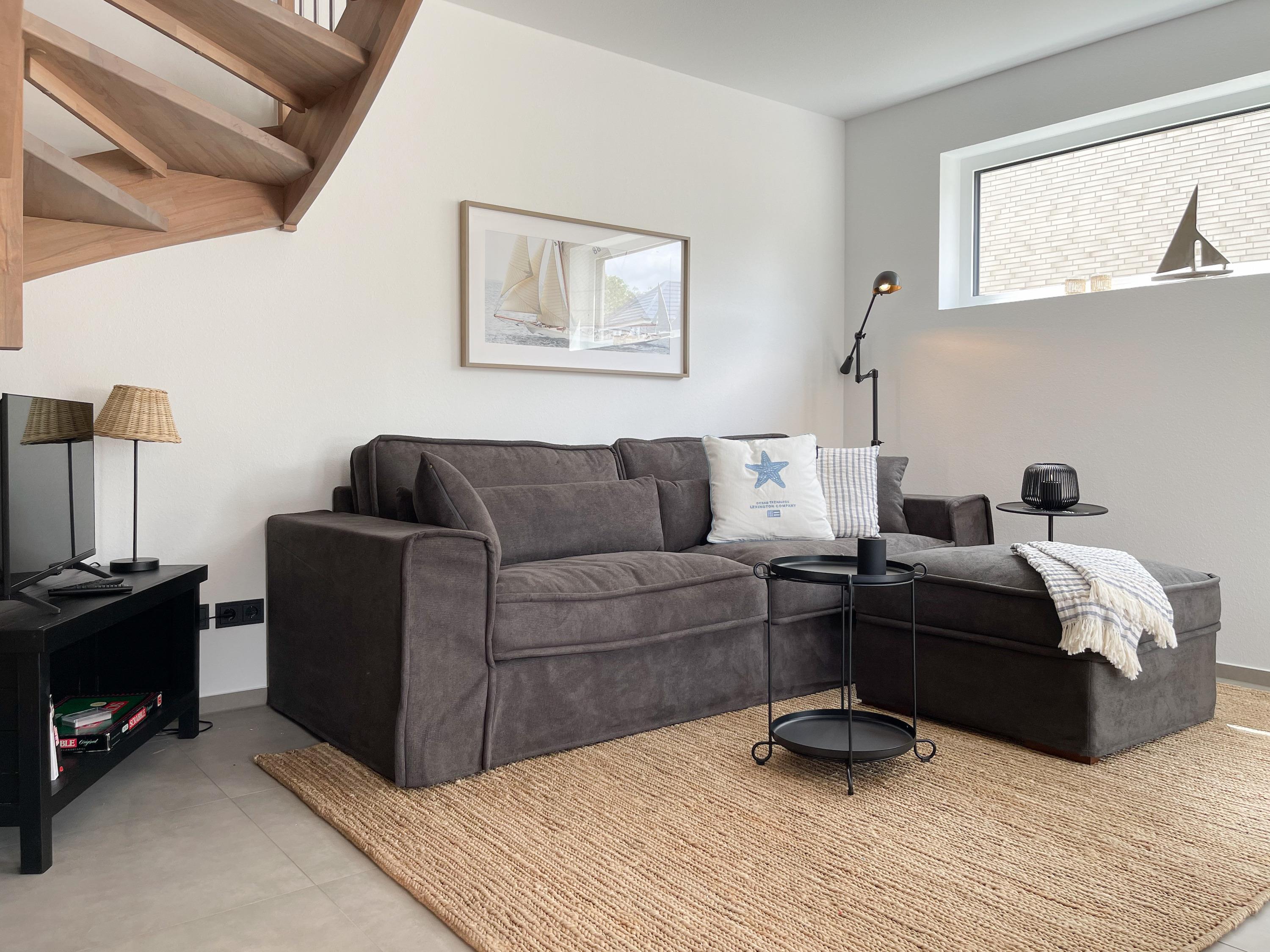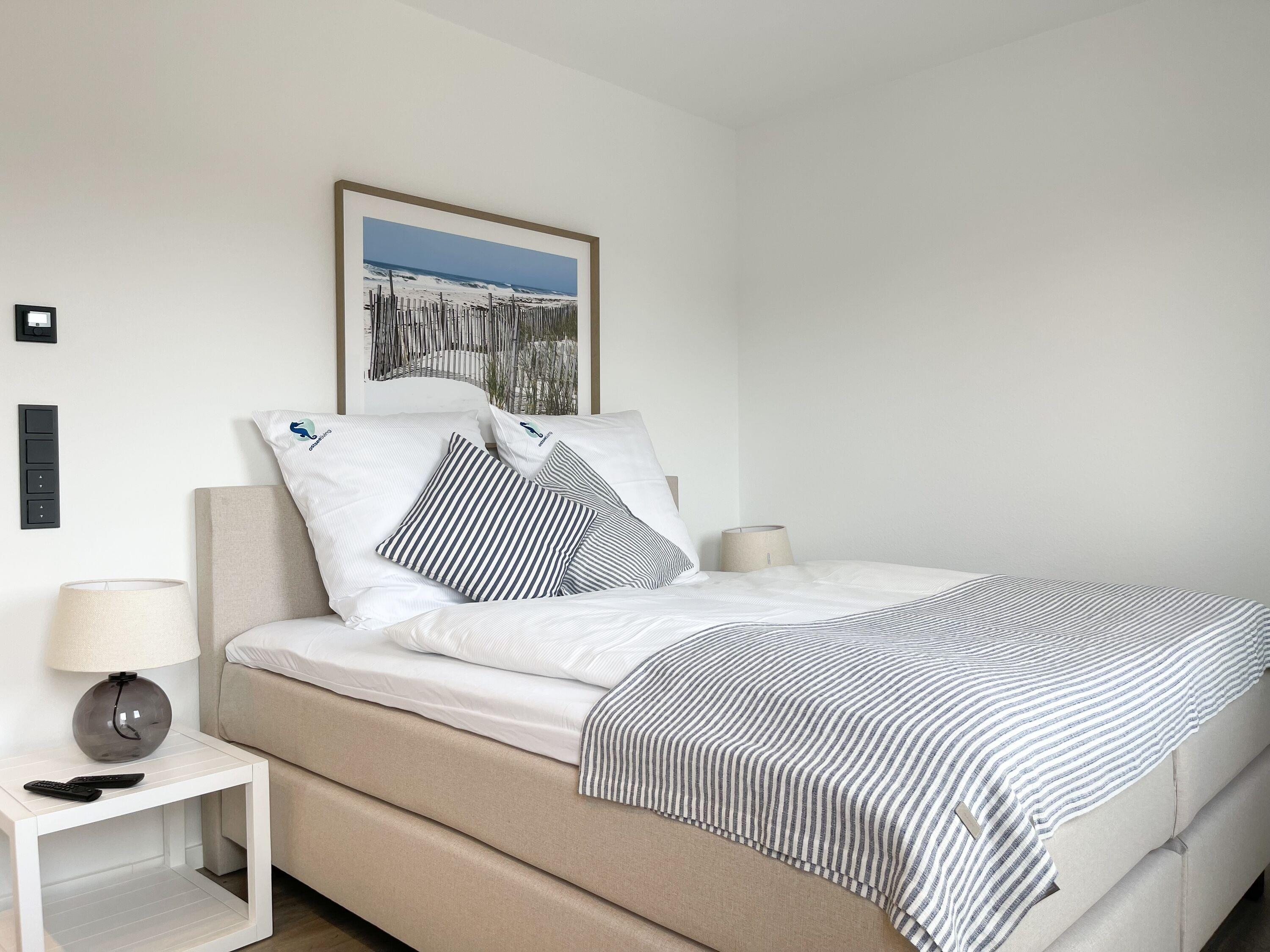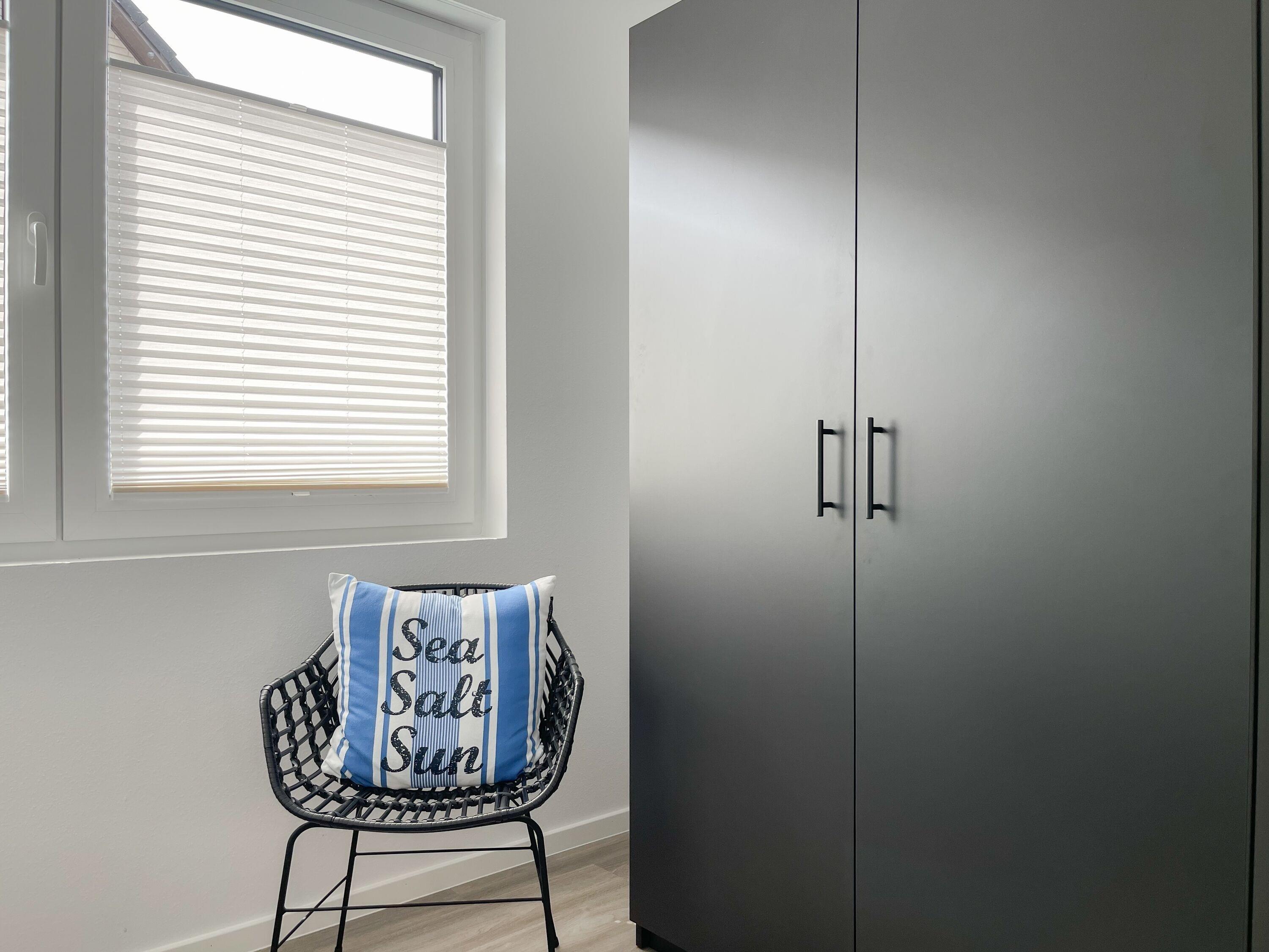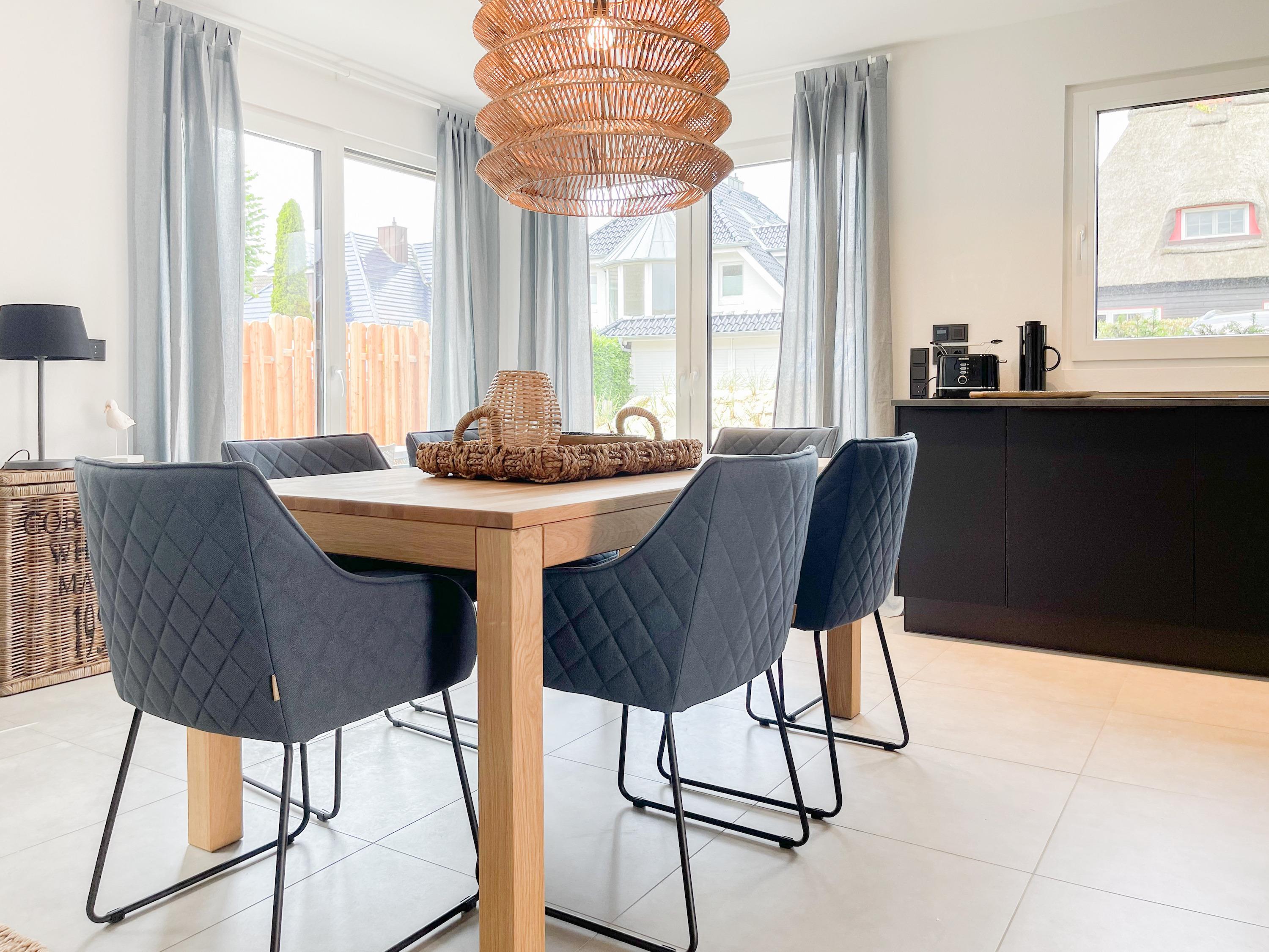 Es erwartet Sie eine wunderschönes Ferienhaus im skandinavischen Stil. Sonnige Räumlichkeiten und die äußerst hochwertige Einrichtung garantieren einen hohen Wohnstandard in einem schönen Ambiente. Mit 4 Schlafzimmern, einem exklusiven Bad mit Walk In Dusche, Radio und Sauna sowie einem zusätzlichen Gäste WC, bietet das Hygge Hus auf über 100 qm Wohnfläche ausreichend Raum für 5 Personen, um einen erholsamen Ostseeurlaub in Strandnähe zu verleben. Im Erdgeschoss erwartet Sie ein lichtdurchfluteter Wohn- Essbereich, großzügig geschnitten und hochwertig möbliert. Die integrierte Einbauküche in perfekter Ausstattung eignet sich hervorragend für gemeinsames Kochen. Die vorgelagerte Terrasse in Südwestausrichtung ist mit Gartenmöbeln und einem Strandkorb ausgestattet. Im Eingangsbereich befindet sich die Garderobe und ein modernes Gäste WC mit Fenster. Im Obergeschoss gibt es zwei separate Schlafzimmer mit Boxspringbetten (180x200 und 120x200), TV und Kleiderschrank. Das hochwertige Wellnessbad mit großzügiger Walk-In Dusche und integrierter Sauna befindet sich ebenfalls im Obergeschoss. Die Schlafzimmer 3 und 4 befinden sich im Dachgeschoss und sind jeweils mit Boxspringbetten (120x200) und Kommode eingerichtet. Alle Fenster sind mit elektrischen Außenjalousien versehren, außer[nbsp] 1 Schlafzimmer im Dachgeschoss, das mit Verdunkelungsplissees ausgestattet ist. Waschmaschine und Trockner sind im separaten Technikraum neben der Terrasse untergebracht.