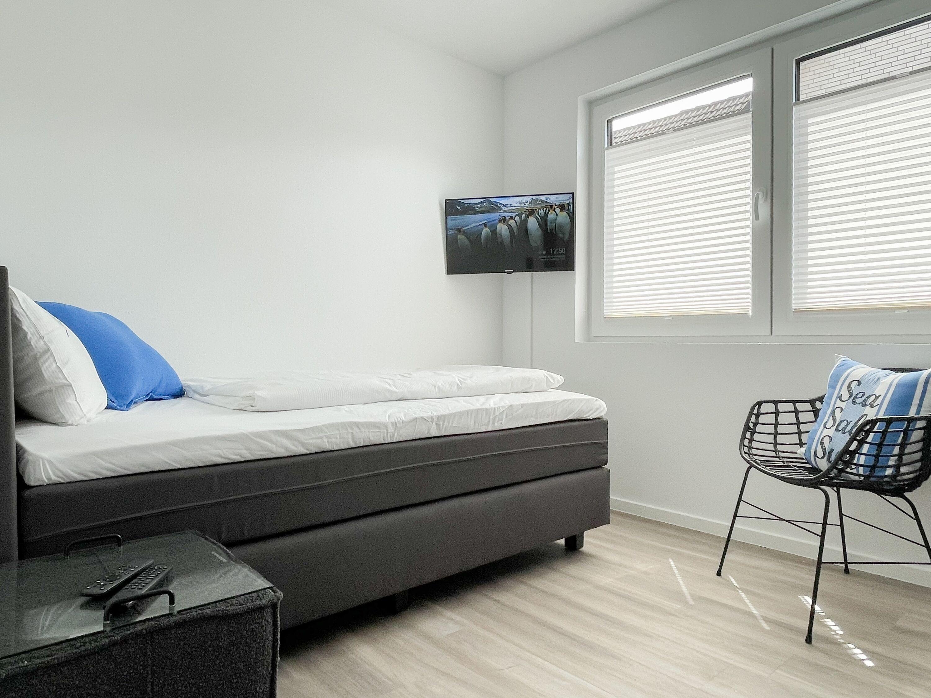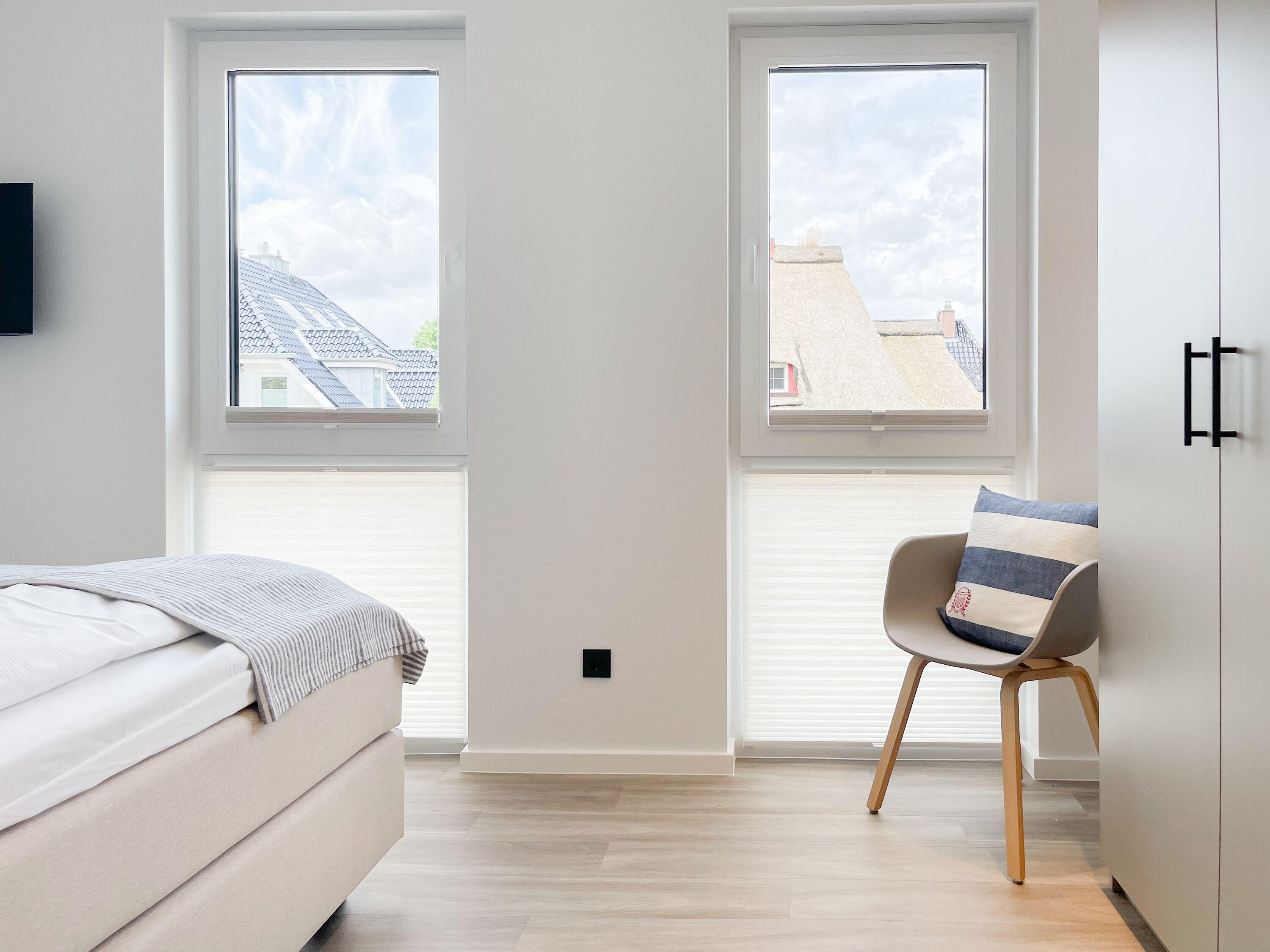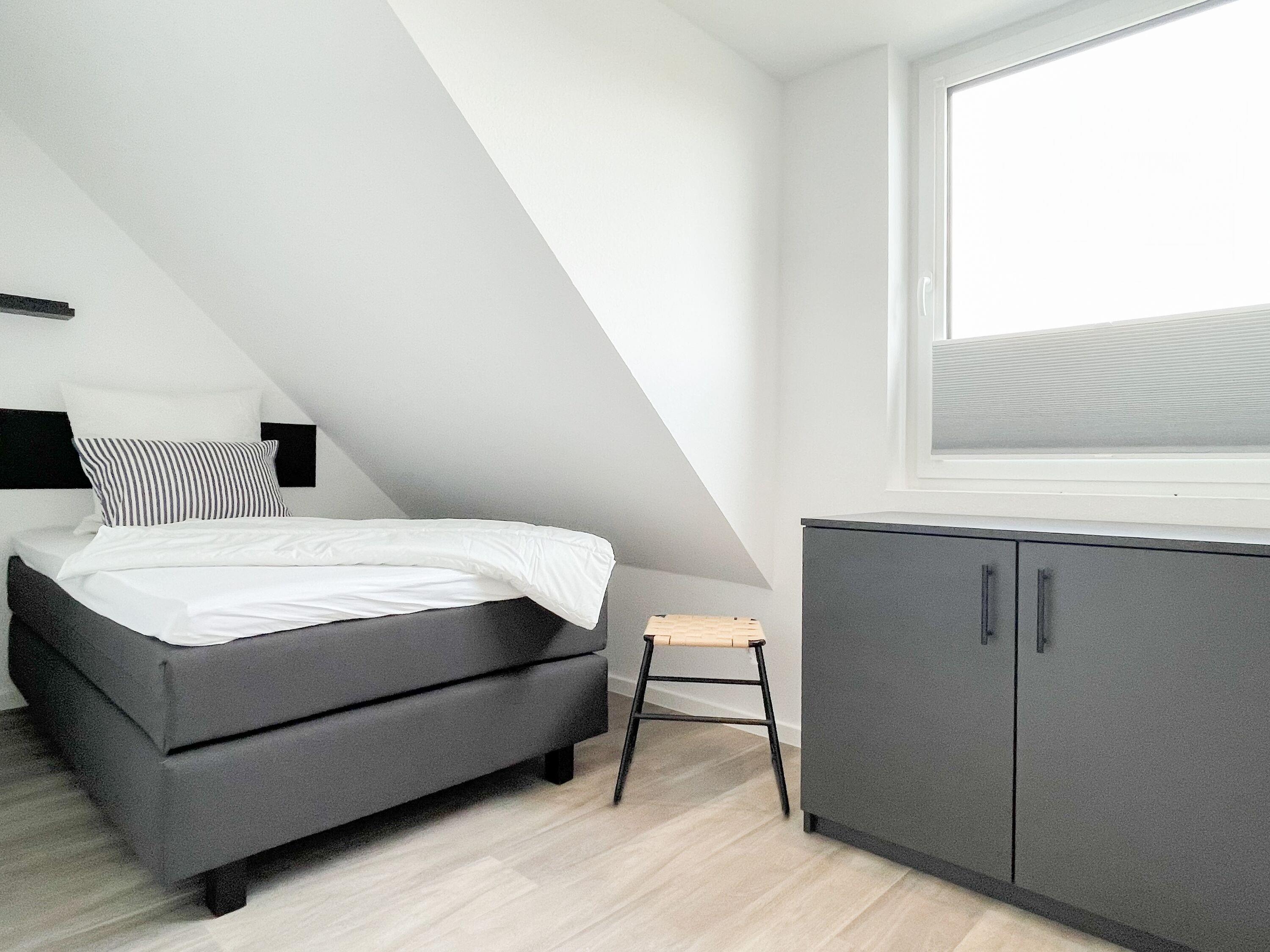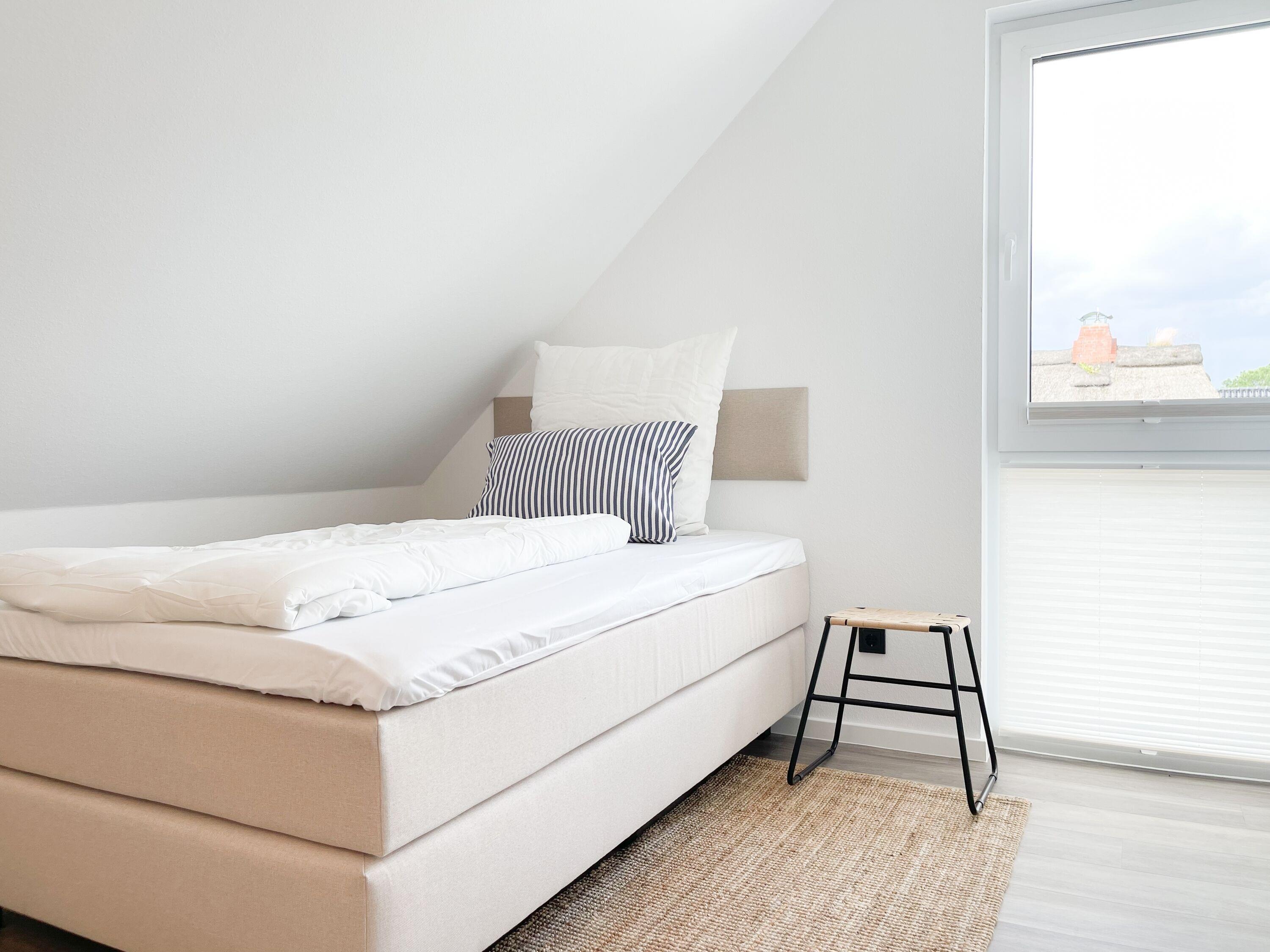 Es erwartet Sie eine wunderschönes Ferienhaus im skandinavischen Stil. Sonnige Räumlichkeiten und die äußerst hochwertige Einrichtung garantieren einen hohen Wohnstandard in einem schönen Ambiente. Mit 4 Schlafzimmern, einem exklusiven Bad mit Walk In Dusche, Radio und Sauna sowie einem zusätzlichen Gäste WC, bietet das Hygge Hus auf über 100 qm Wohnfläche ausreichend Raum für 5 Personen, um einen erholsamen Ostseeurlaub in Strandnähe zu verleben. Im Erdgeschoss erwartet Sie ein lichtdurchfluteter Wohn- Essbereich, großzügig geschnitten und hochwertig möbliert. Die integrierte Einbauküche in perfekter Ausstattung eignet sich hervorragend für gemeinsames Kochen. Die vorgelagerte Terrasse in Südwestausrichtung ist mit Gartenmöbeln und einem Strandkorb ausgestattet. Im Eingangsbereich befindet sich die Garderobe und ein modernes Gäste WC mit Fenster. Im Obergeschoss gibt es zwei separate Schlafzimmer mit Boxspringbetten (180x200 und 120x200), TV und Kleiderschrank. Das hochwertige Wellnessbad mit großzügiger Walk-In Dusche und integrierter Sauna befindet sich ebenfalls im Obergeschoss. Die Schlafzimmer 3 und 4 befinden sich im Dachgeschoss und sind jeweils mit Boxspringbetten (120x200) und Kommode eingerichtet. Alle Fenster sind mit elektrischen Außenjalousien versehren, außer[nbsp] 1 Schlafzimmer im Dachgeschoss, das mit Verdunkelungsplissees ausgestattet ist. Waschmaschine und Trockner sind im separaten Technikraum neben der Terrasse untergebracht.