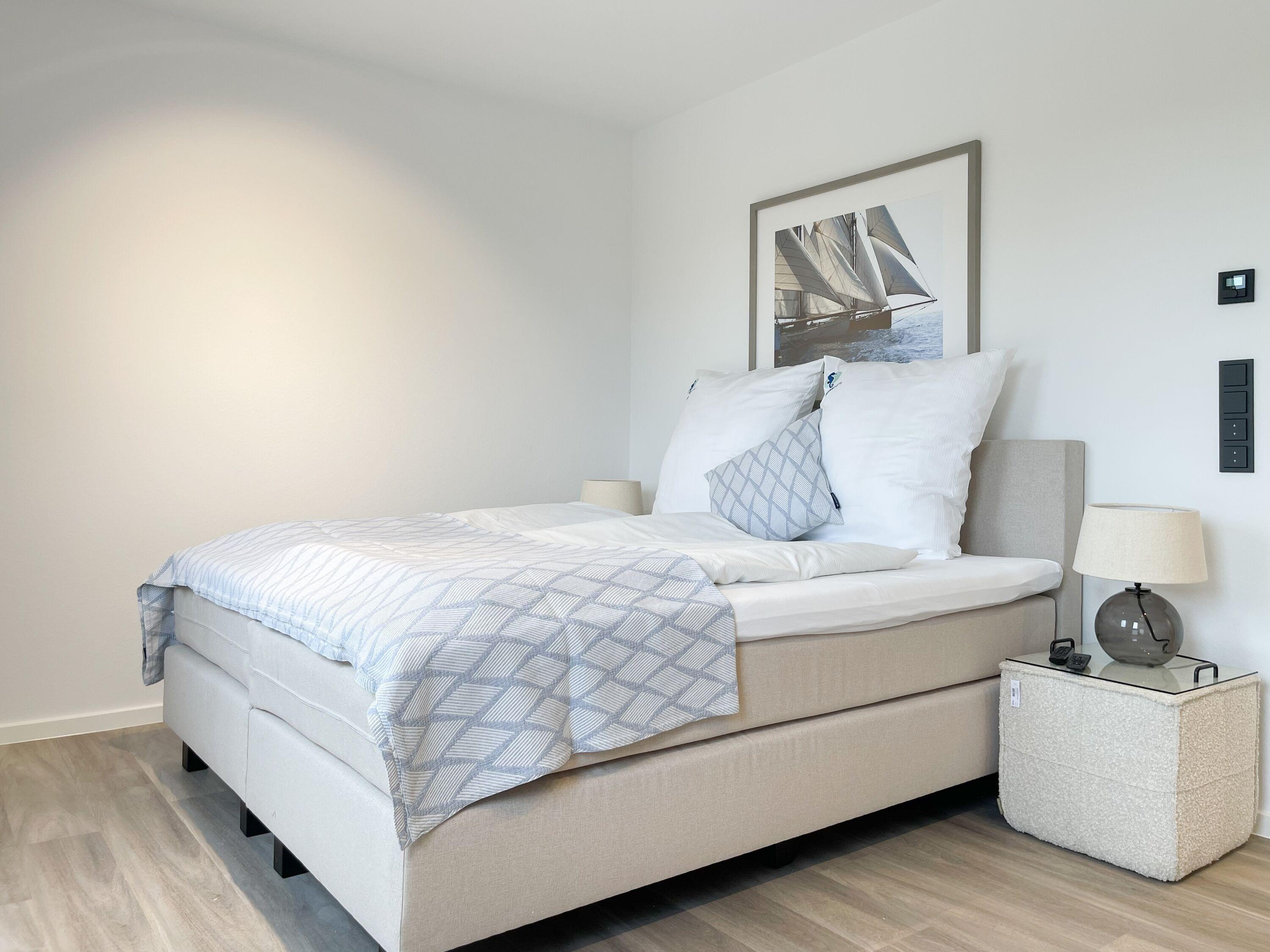 Es erwartet Sie eine wunderschönes Ferienhaus im skandinavischen Stil. Sonnige Räumlichkeiten und die äußerst hochwertige Einrichtung garantieren einen hohen Wohnstandard in einem schönen Ambiente. Mit 4 Schlafzimmern, einem exklusiven Bad mit Walk In Dusche, Radio und Sauna sowie einem zusätzlichen Gäste WC, bietet das Hygge Hus auf über 100 qm Wohnfläche ausreichend Raum für 6 Personen, um einen erholsamen Ostseeurlaub in Strandnähe zu verleben. Im Erdgeschoss erwartet Sie ein lichtdurchfluteter Wohn- Essbereich, großzügig geschnitten und hochwertig möbliert. Die integrierte Einbauküche in perfekter Ausstattung eignet sich hervorragend für gemeinsames Kochen. Die vorgelagerte Terrasse in Südwestausrichtung ist mit Gartenmöbeln und einem Strandkorb ausgestattet. Im Eingangsbereich befindet sich die Garderobe und ein modernes Gäste WC mit Fenster. Im Obergeschoss gibt es zwei separate Schlafzimmer mit Boxspringbetten (180x200 und 140x200), TV und Kleiderschrank. Das hochwertige Wellnessbad mit großzügiger Walk-In Dusche und integrierter Sauna befindet sich ebenfalls im Obergeschoss. Die Schlafzimmer 3 und 4 befinden sich im Dachgeschoss und sind jeweils mit Boxspringbetten (120x200) und Kommode eingerichtet. Alle Fenster sind mit elektrischen Außenjalousien versehren, außer[nbsp] 1 Schlafzimmer im Dachgeschoss, das mit Verdunkelungsplissees ausgestattet ist. Waschmaschine und Trockner sind im separaten Technikraum neben der Terrasse untergebracht.
