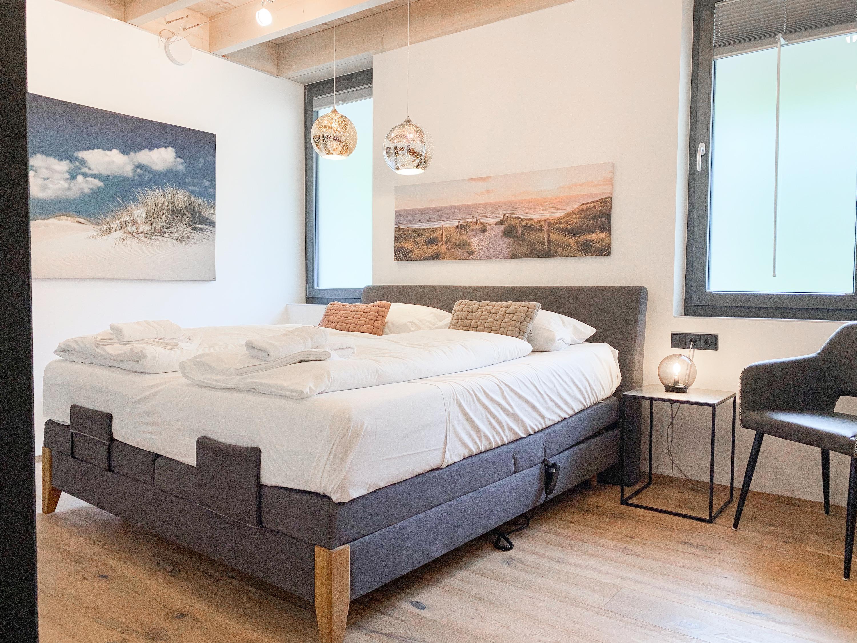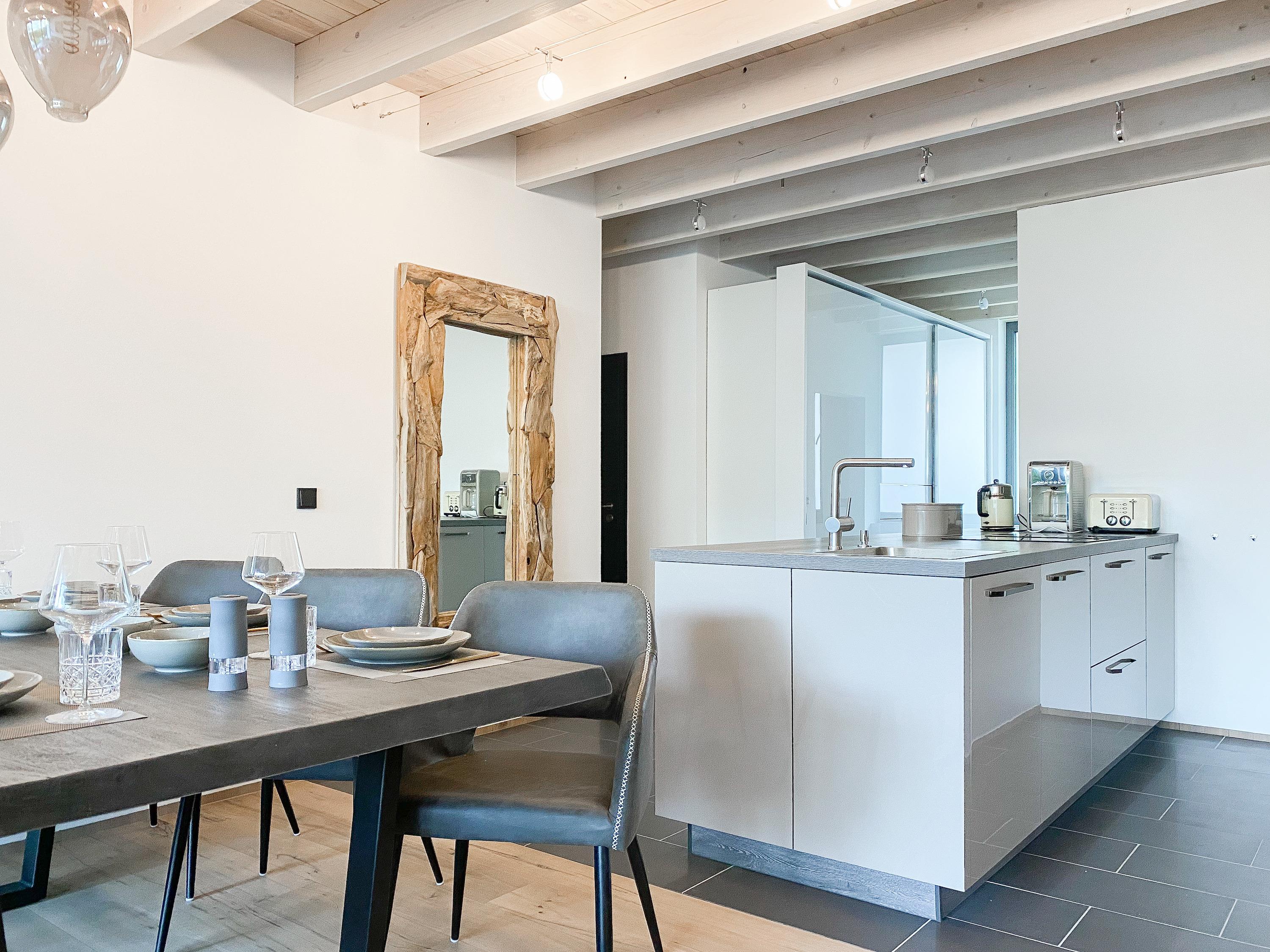 Die Erdgeschosswohnung Meerchenwald 1 verfügt über 3 separate Schlafzimmer mit elektromotorisch verstellbaren Boxspringbetten (180x200), Verdunkelungsplissees und TV, zwei moderne Duschbäder en Suite sowie ein zusätzliches Gäste WC im Eingangsbereich. Im Flur bietet ein großer Einbauschrank ausreichend Stauraum für Ihre Urlaubsgarderobe. Bitte beachten Sie, dass im kleinen Schlafzimmer das Bett nur über das Fußende zu erreichen ist. Der großzügige Wohnbereich mit riesigen Glasfronten zur Süd Terrasse mit kleinem Garten verfügt über ein gemütliches XXL Sofa, TV, DVD-Player und Surround Anlage. Selbstverständlich steht WLAN zur kostenlosen Nutzung zur Verfügung. Der anschließende Essbereich ist für 6 Personen eingerichtet und die perfekt ausgestattete, hochmoderne Wohnküche lässt garantiert keine Wünsche offen. Ein Highlight ist die in der Wohnung integrierte Sauna, die zu jeder Jahreszeit zum Entspannen einlädt.