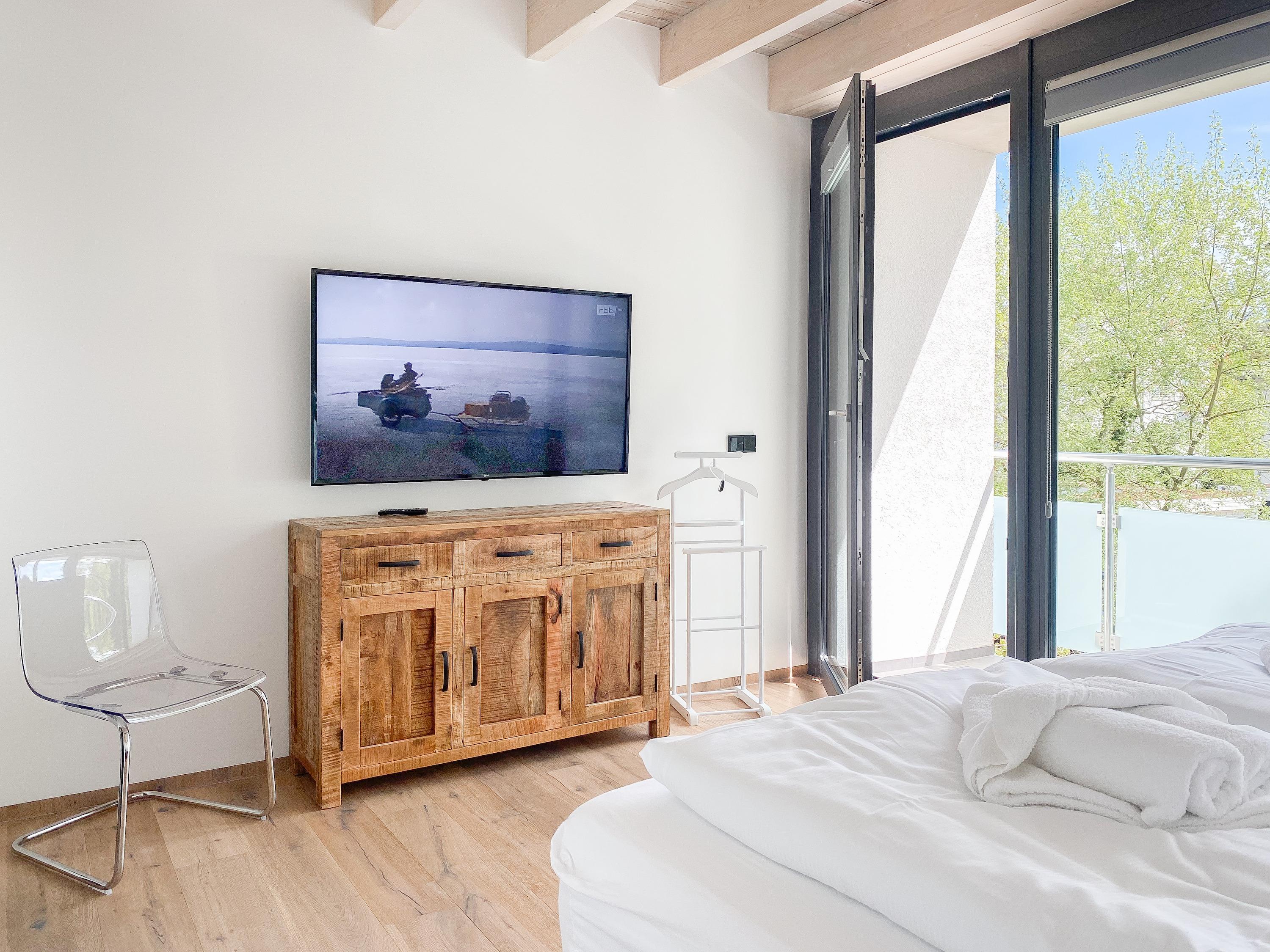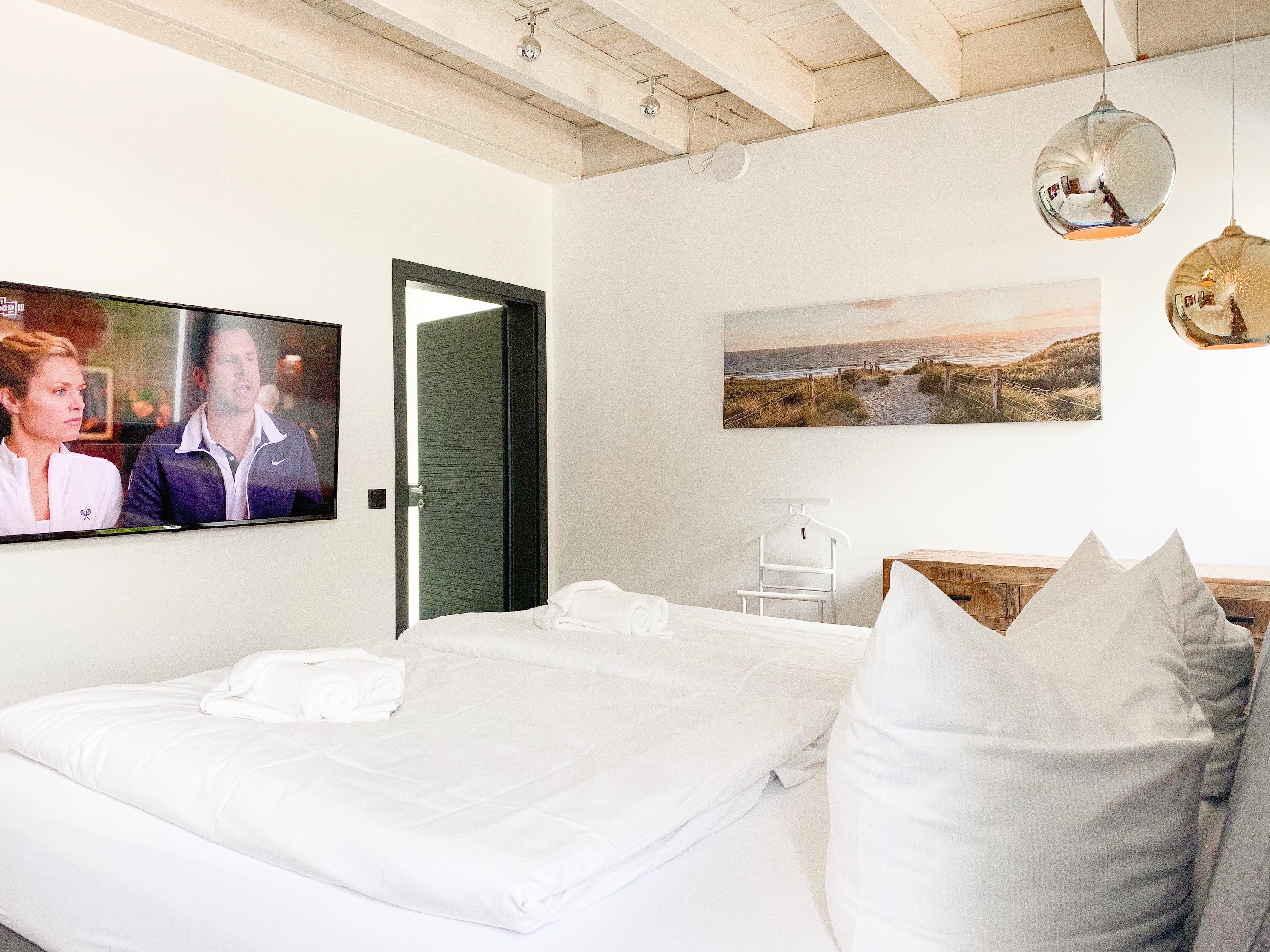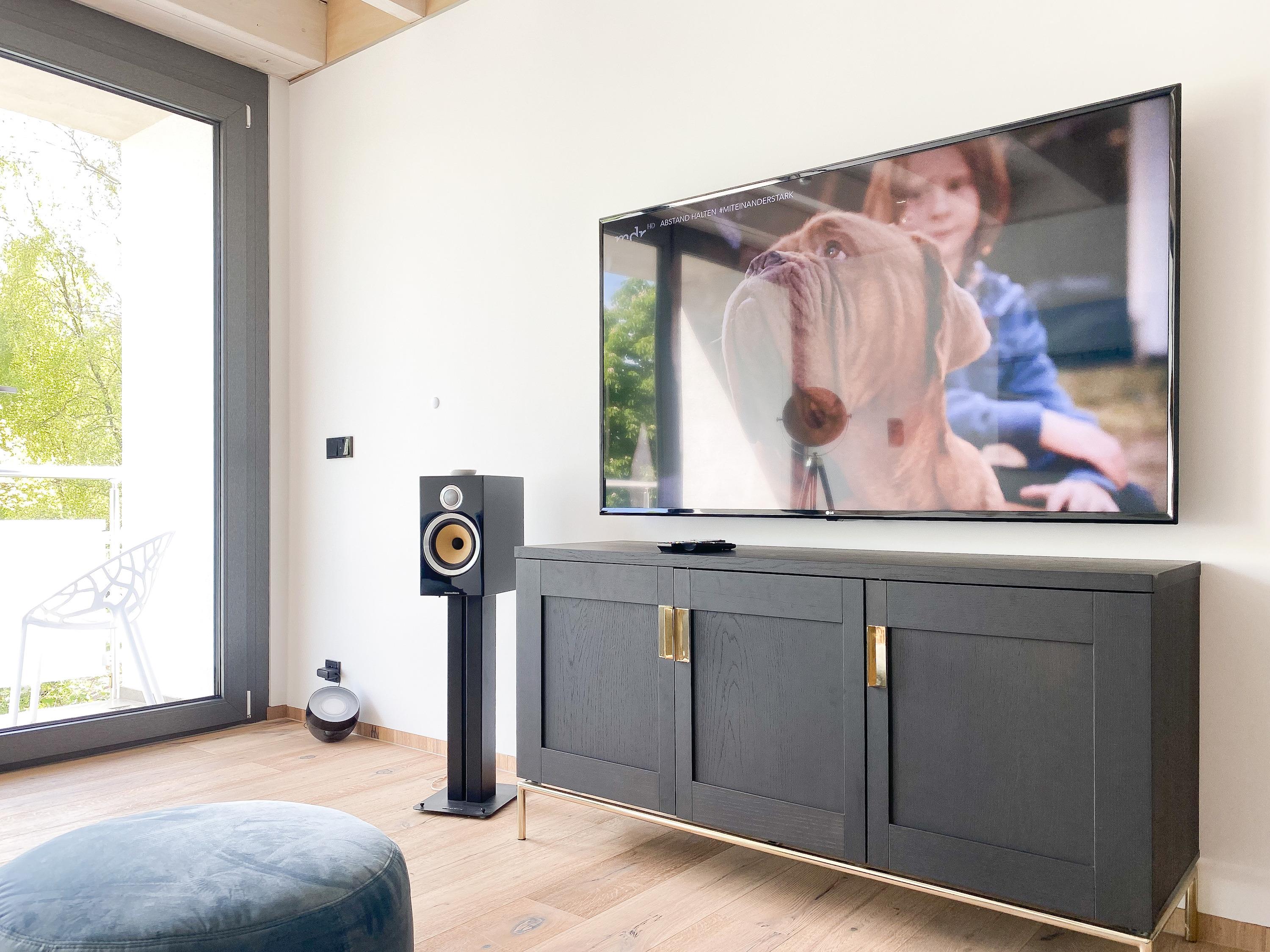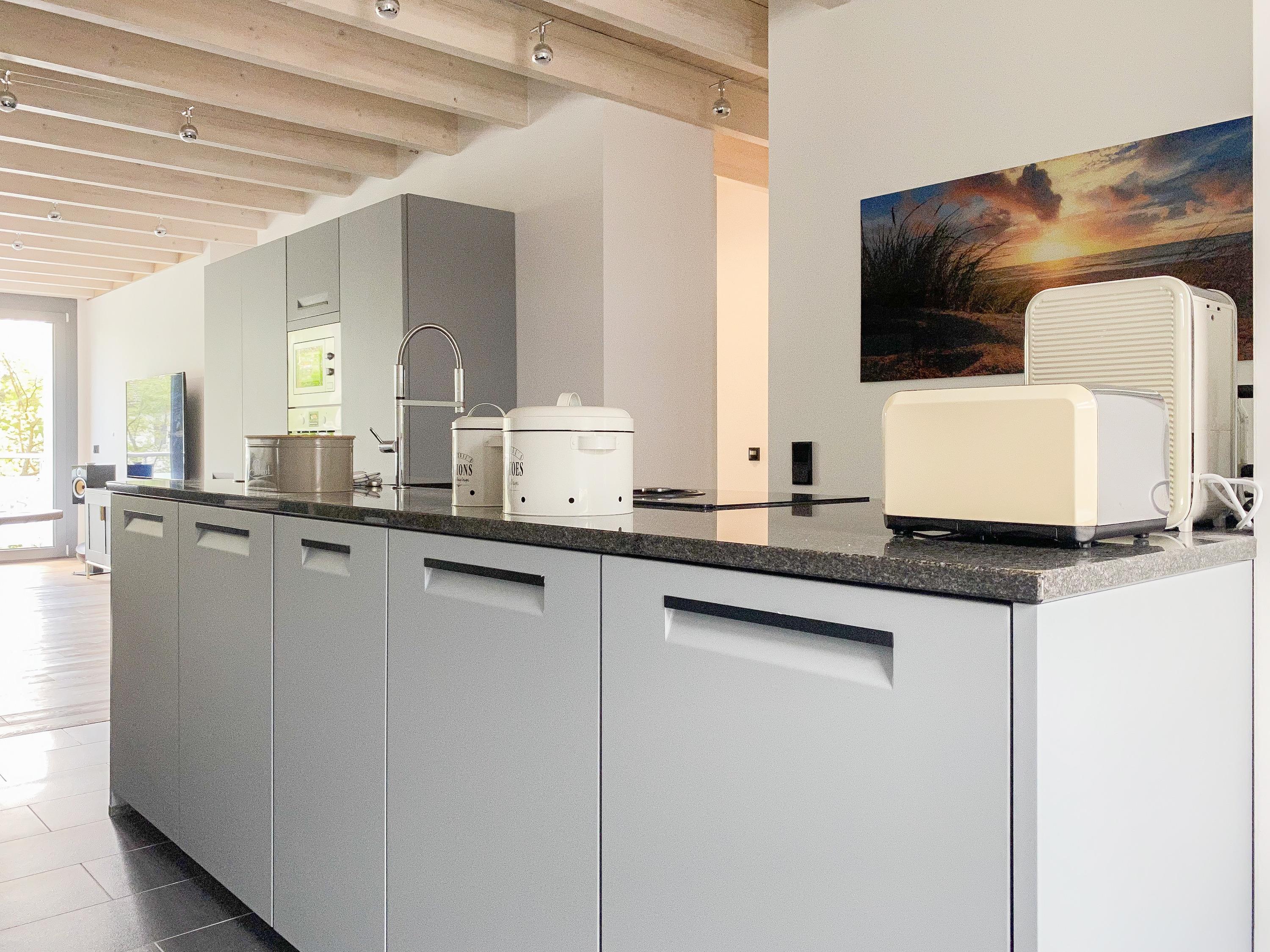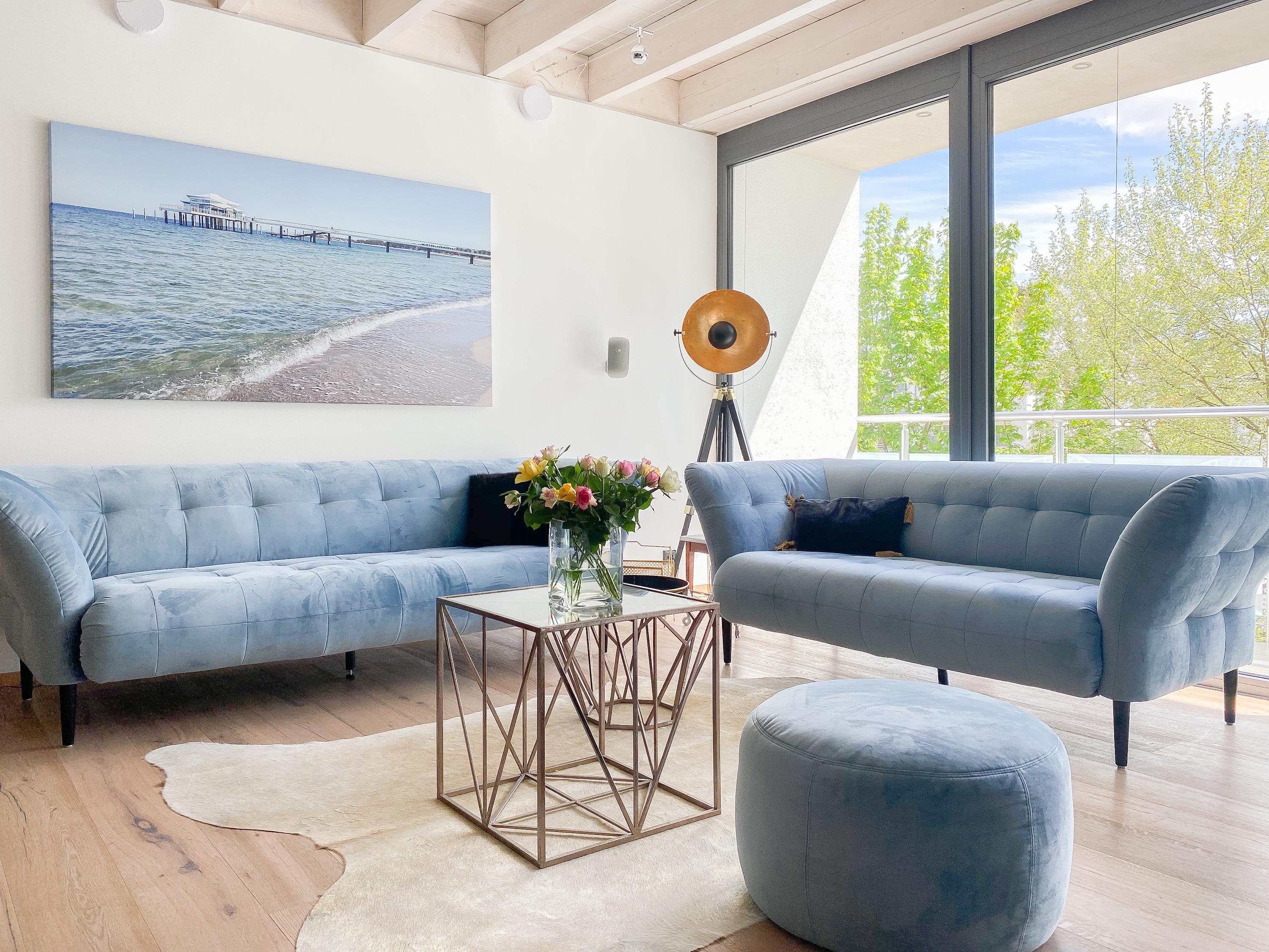 Die Ferienwohnung Meerchenwald 3 befindet sich im 1. Obergeschoss und verfügt über 3 separate Schlafzimmer mit elektromotorisch verstellbaren Boxspringbetten (180x200), Verdunkelungsplissees und TV, zwei moderne Duschbäder en Suite sowie ein zusätzliches Gäste WC im Eingangsbereich. Im Flur bietet ein großer Einbauschrank ausreichend Stauraum für Ihre Urlaubsgarderobe. Bitte beachten Sie, dass im kleinen Schlafzimmer das Bett nur über das Fußende zu erreichen ist. Der großzügige Wohnbereich mit riesigen Glasfronten zum Südbalkon verfügt über 2 hochwertige Sofas, TV, DVD-Player und Surround Anlage. Selbstverständlich steht Ihnen WLAN zur kostenlosen Nutzung zur Verfügung. Der anschließende Essbereich ist für 6 Personen eingerichtet und die perfekt ausgestattete, hochmoderne Wohnküche lässt garantiert keine Wünsche offen.
