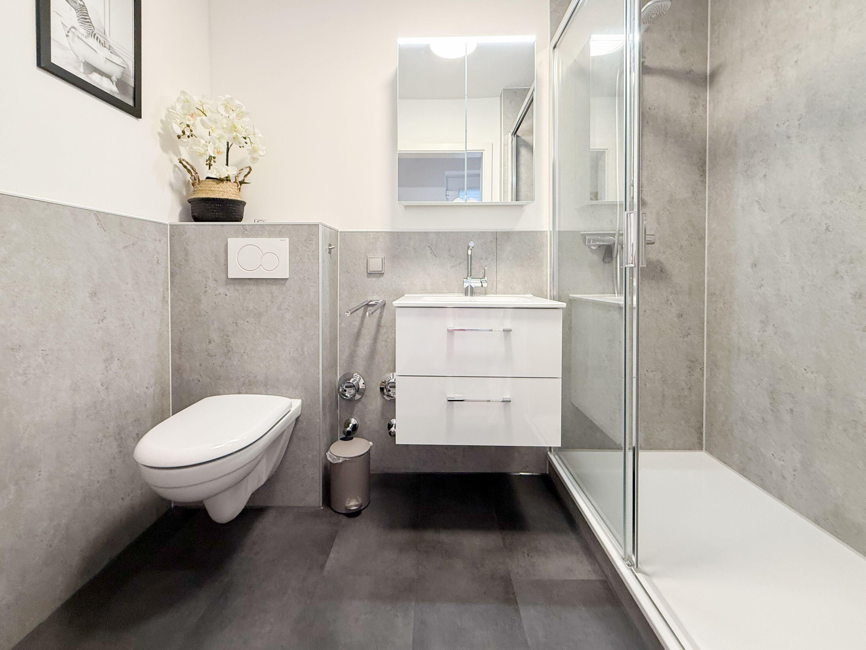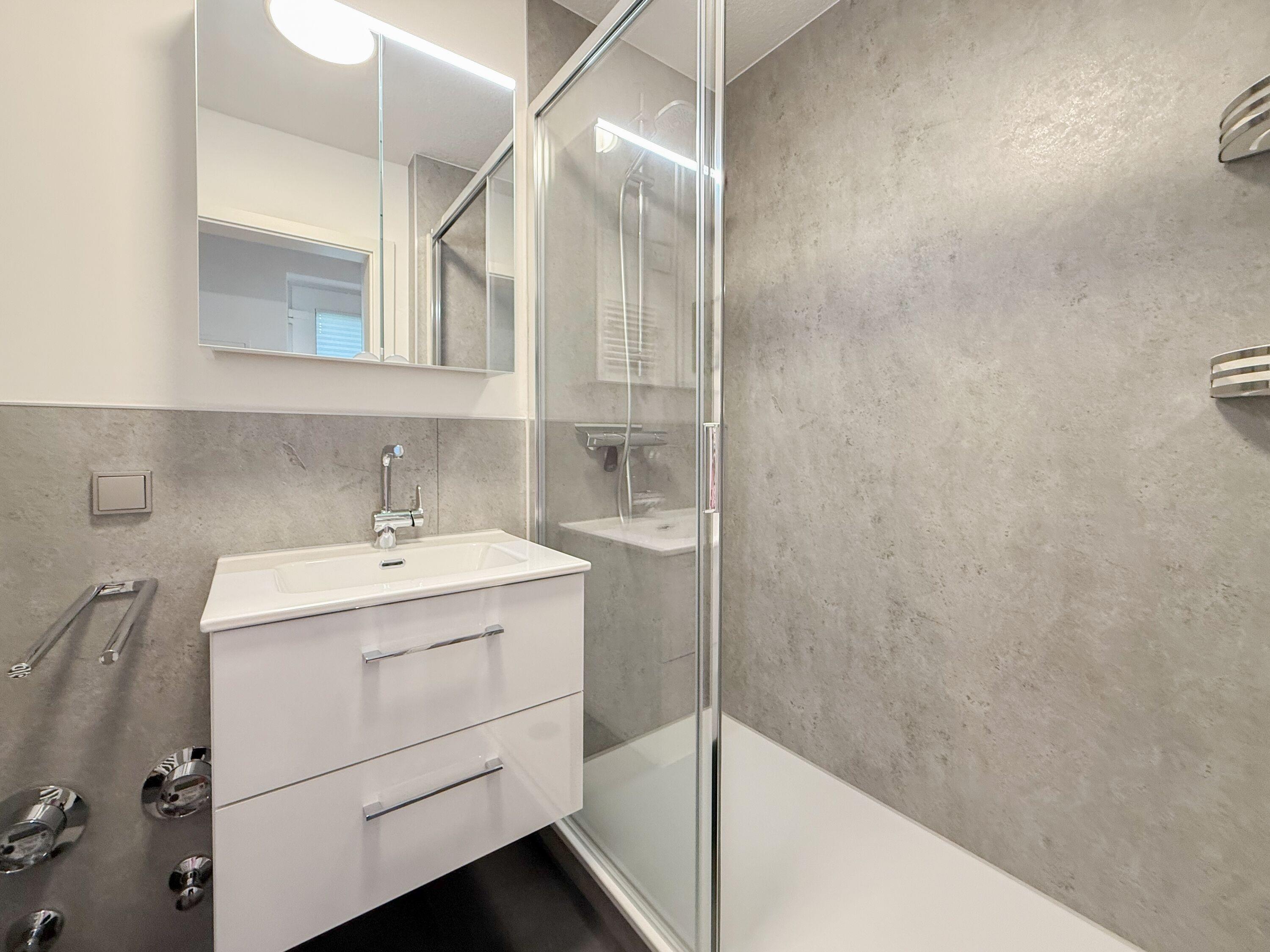 Das Schlafzimmer ist mit einem Doppelbett (160x200) und einem geräumigen Kleiderschrank eingerichtet.[nbsp] Sämtliche Fenster verfügen über Plissees und Vorhänge zur vollständigen Verdunkelung. Alle Fenster sind mit Insektenschutzgittern versehen, jeweils rechtsseitig der Doppelfenster und die Terrassentür. Das neue Duschbad ist modern gestaltet. WLAN steht Ihnen selbstverständlich zur Verfügung.