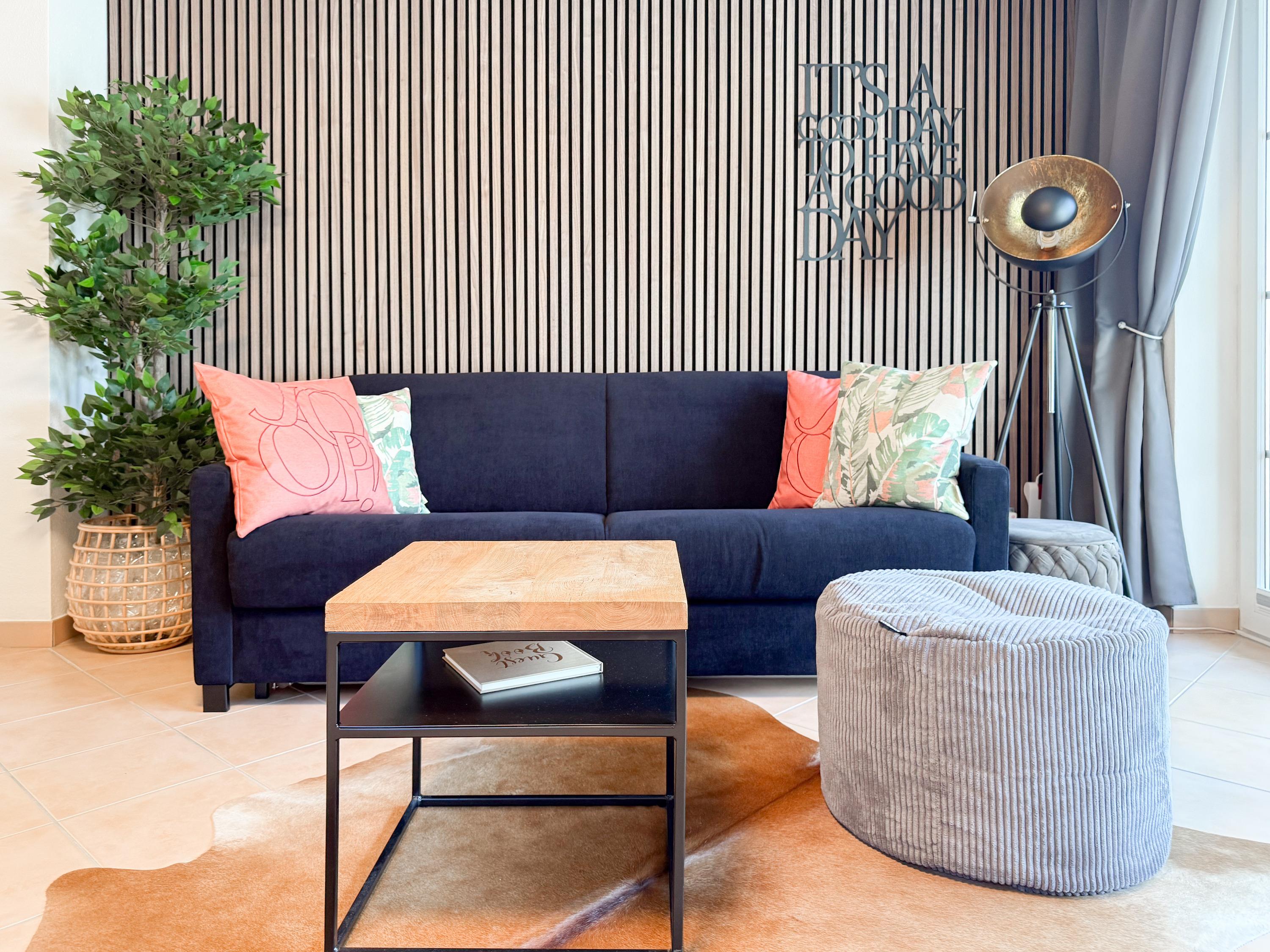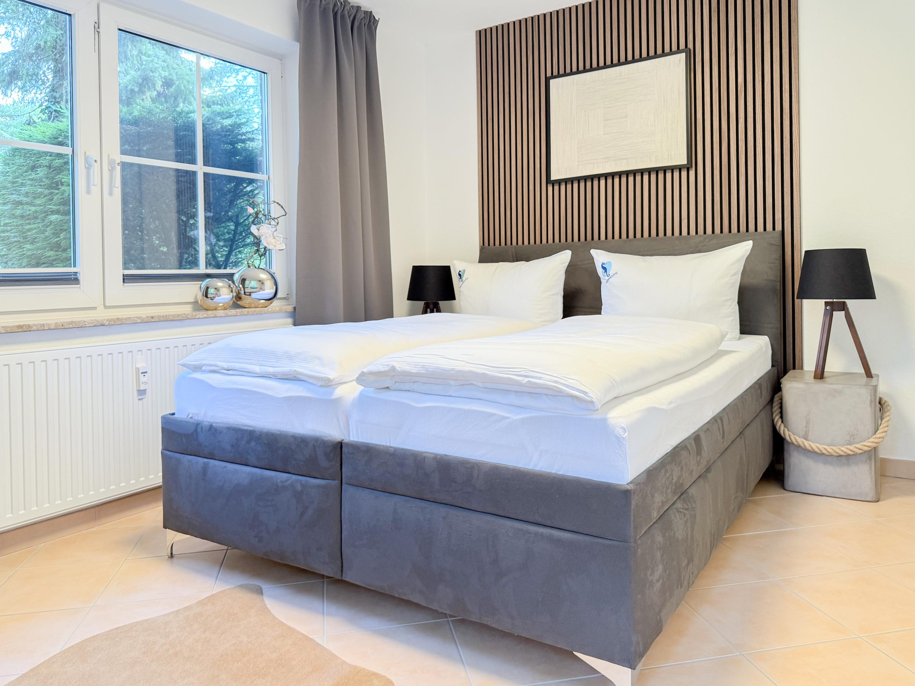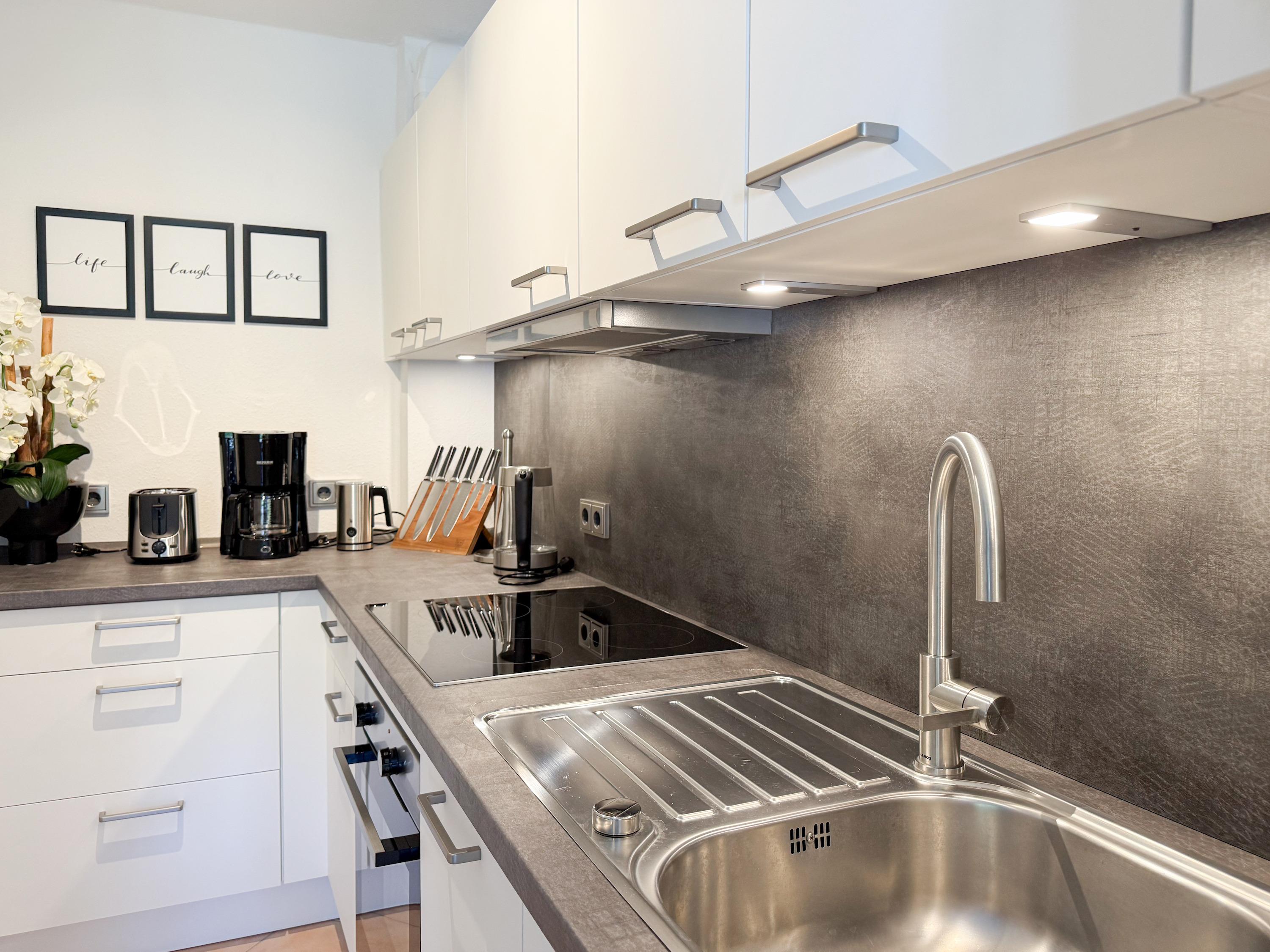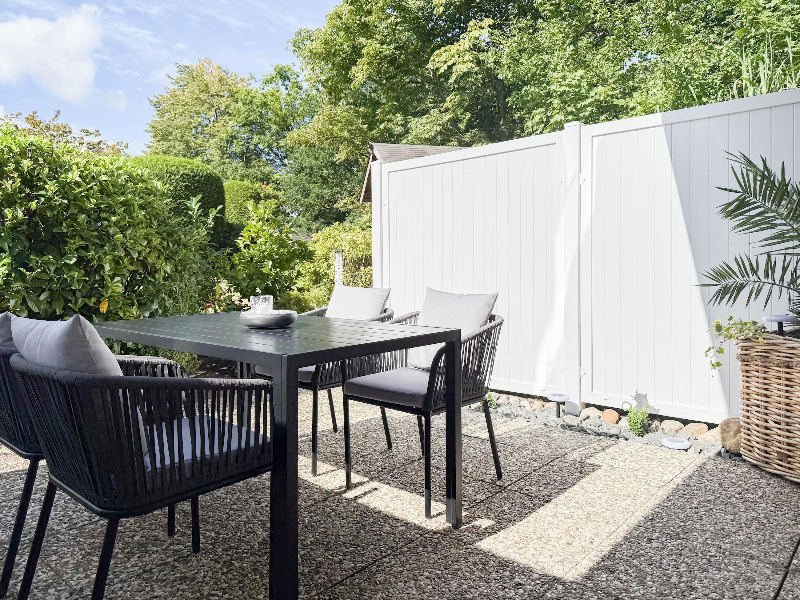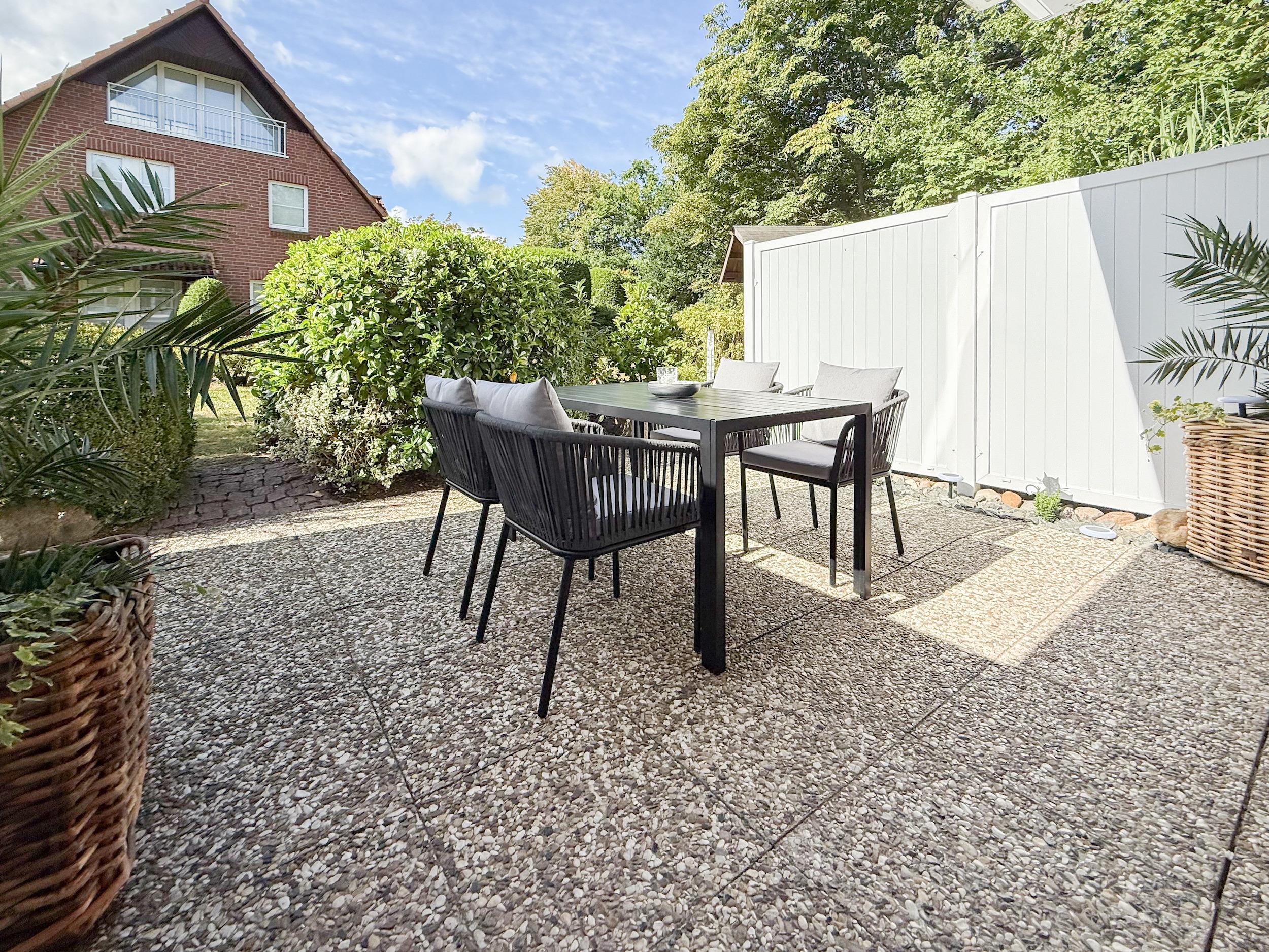 Die hochwertig eingerichtete und bestens ausgestattete Ferienwohnung eignet sich ideal für 3 Personen, die ihren Urlaub in stilvollem Ambiente genießen möchten. Die Terrassenwohnung mit separatem Eingang liegt am Rand der gepflegten Wohnanlage Gorch Fock Park und garantiert Ruhe sowie Privatsphäre. Der Wohnbereich überzeugt durch ein komfortables Sofa mit Schlaffunktion, Smart-TV und Bluetooth-Radio. Der anschließende Essbereich bietet ausreichend Platz, und die offene, neu integrierte Küche fügt sich harmonisch in den Raum ein. Sie ist unter anderem mit Weinkühlschrank, Spülmaschine, Backofen, Induktionsherd, Gefriermöglichkeit und vielem mehr ausgestattet. Genießen Sie sonnige Stunden auf der Südterrasse, die mit einer elektrischen Markise sowie Gartenmöbeln ausgestattet ist.