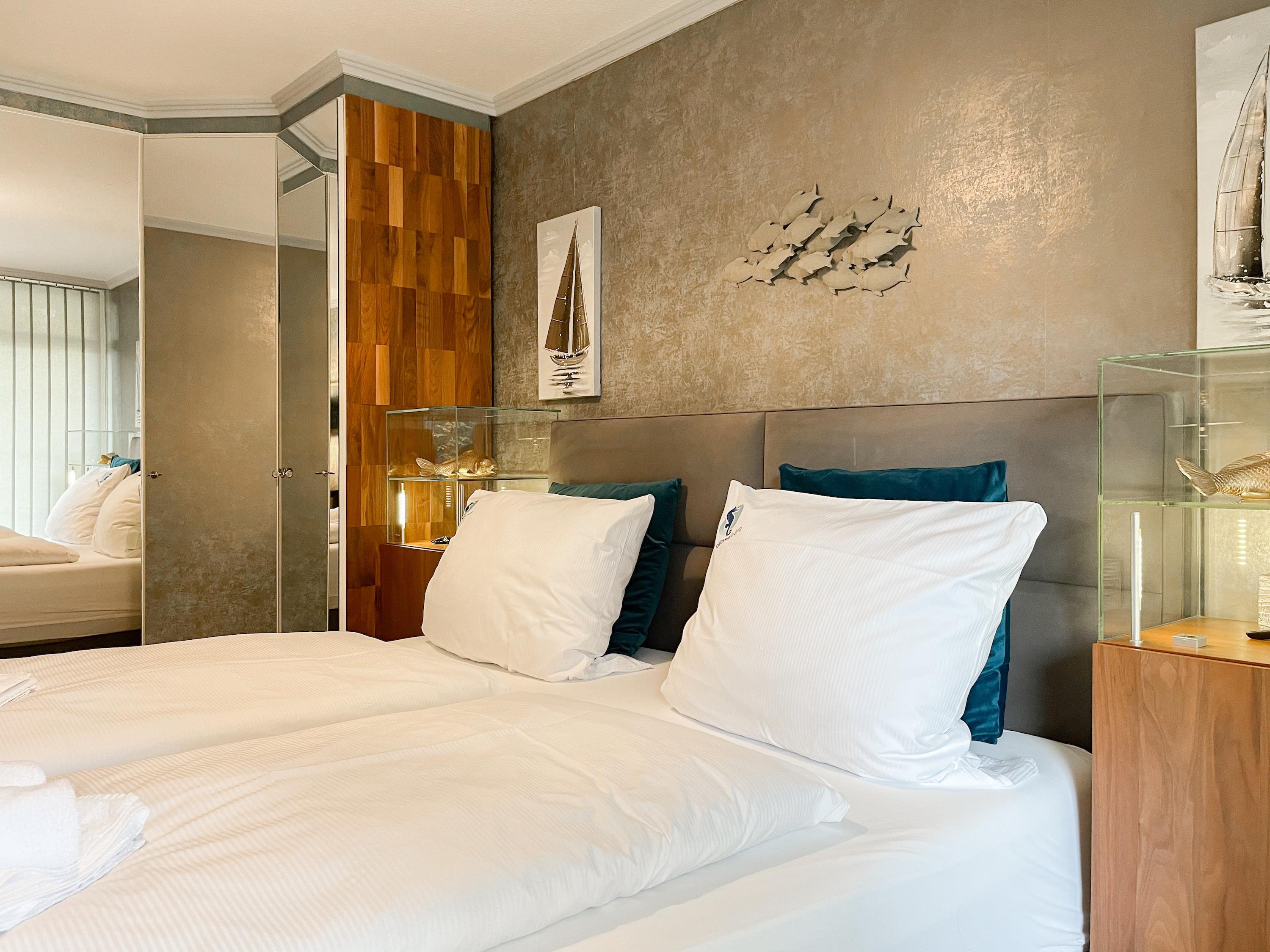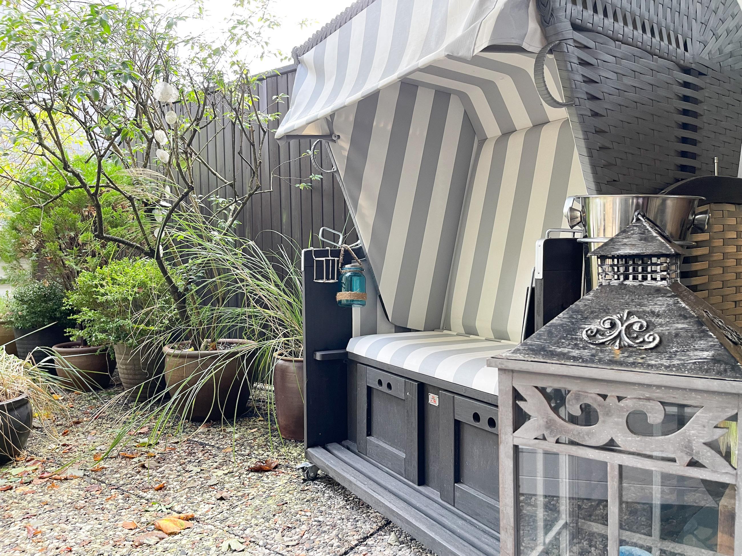 Es erwartet Sie eine gemütlich eingerichtete Ferienwohnung mit ausreichen Raum für 2 Personen, um einen entspannten Urlaub in Strandnähe zu verleben. Highlight ist die riesige, liebevoll bepflanzte Terrasse von 70 qm, die sich über die gesamte Breite der Wohnung erstreckt und mit Gartenmöbeln und einem Strandkorb ausgestattet ist. Ein herrlicher Rückzugsort zu jeder Tageszeit. Der Wohnbereich ist mit einem XL Sofa plus Recamiere und TV ausgestattet, der anschließende Essbereich bietet ausreichend Platz für 4 Personen für gemeinsame Mahlzeiten und gemütliches Beisammensein. Die integrierte Küche ist gut ausgestattet und durch einen Tresen vom Wohnbereich getrennt. Das Schlafzimmer ist mit einem Doppelbett (180x200), einem Kleiderschrank mit ausreichend Stauraum. Die Fenster sind mit vertikal Lamellen versehen, die etwas Licht nehmen, jedoch nicht vollständig verdunkeln. Das Bad verfügt über einen Waschtisch, Föhn, WC und eine Badewanne kombiniert mit einer Dusche.