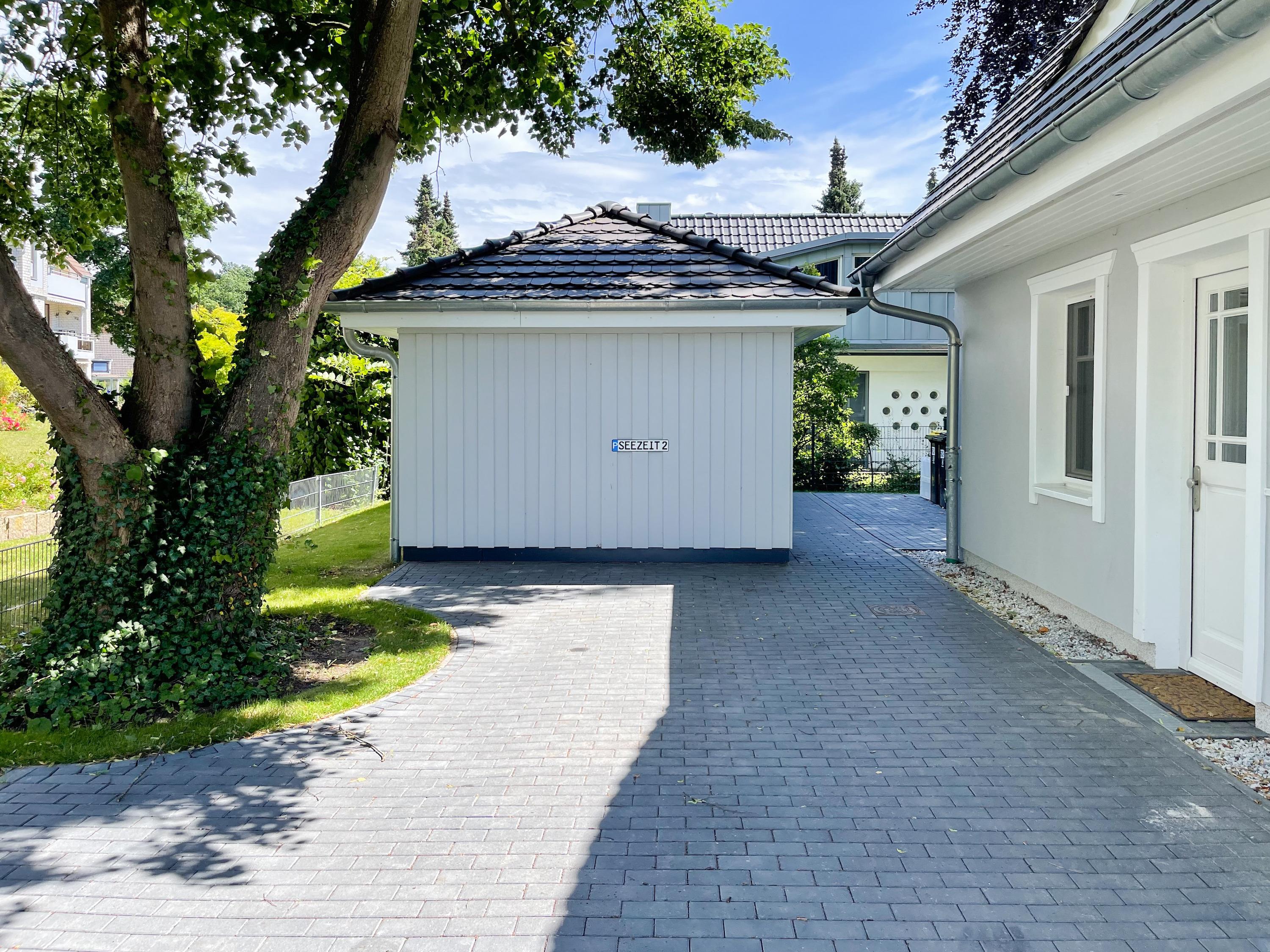 2 Parkplätze befinden sich auf dem Grundstück und eine E-Ladestation steht zur Verfügung. Zum sicheren Abstellen von Fahrrädern, Bollerwagen [&] Co gibt es ein Fahrradhaus mit Lademöglichkeit für E-Bikes.