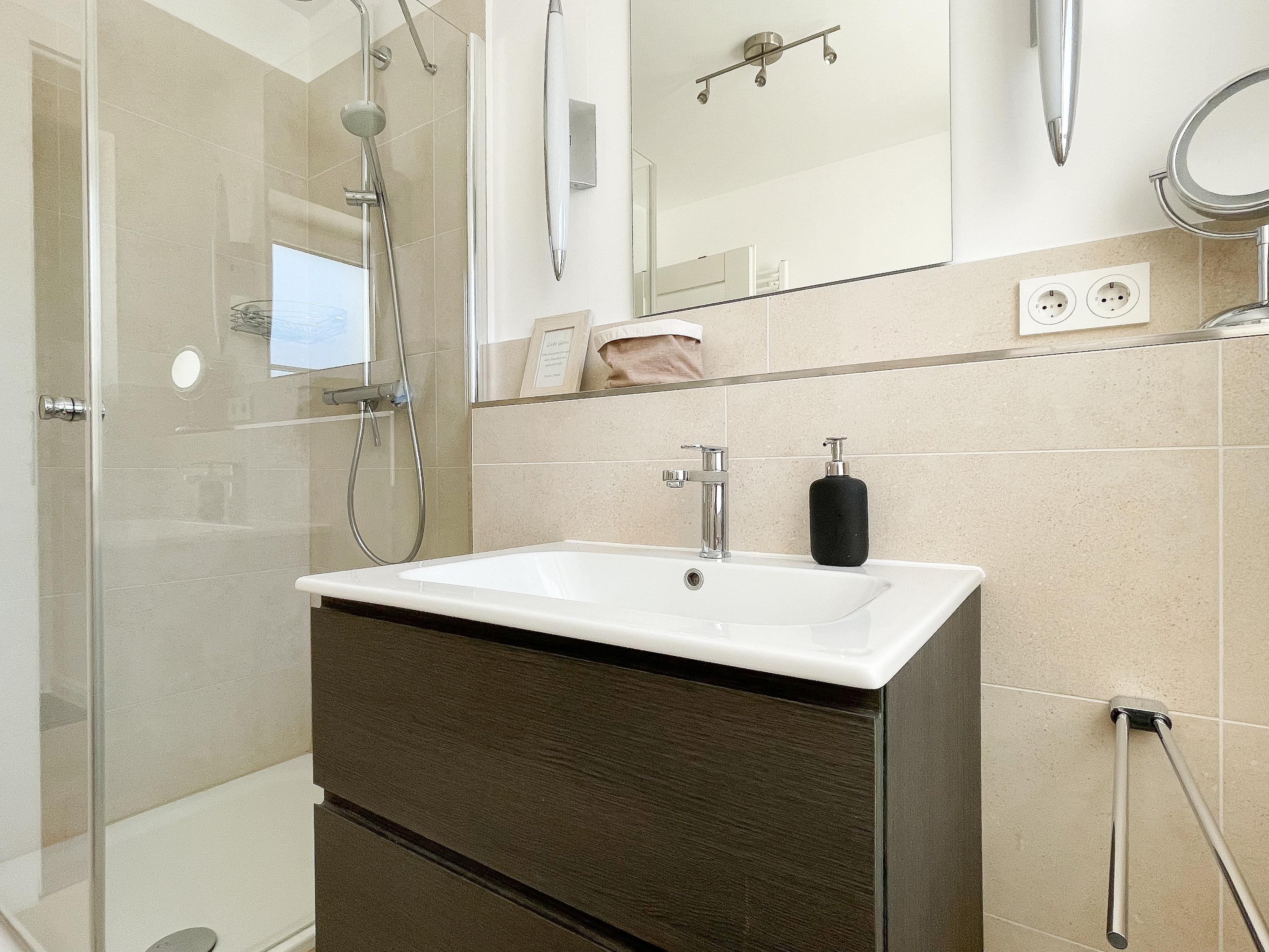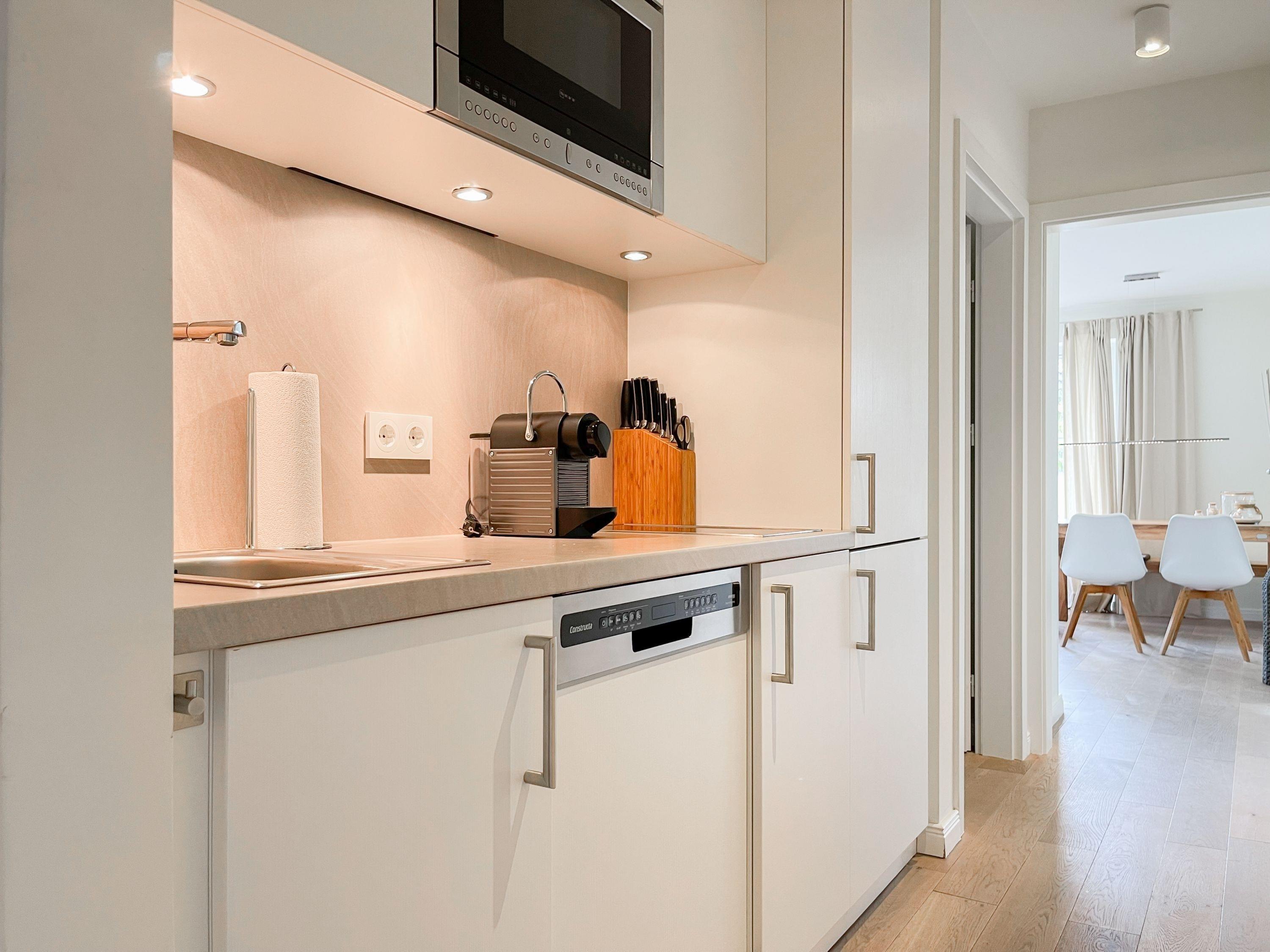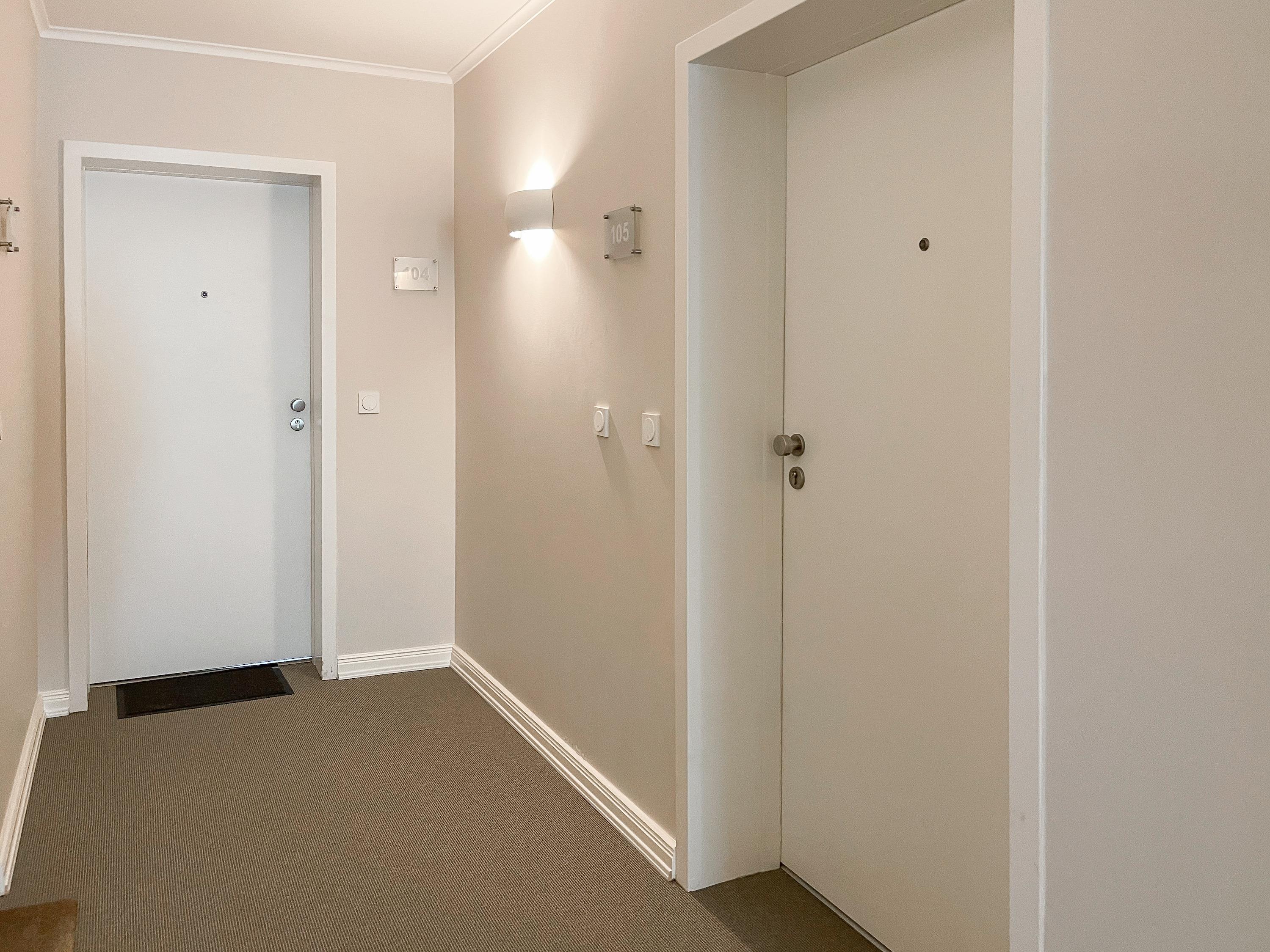 Bodentiefe Fensterelemente, Echtholzparkett und eine hochwertige Einrichtung schaffen eine helle und freundliche Wohnatmosphäre. Alle Fenster sind mit elektrischen Außenjalousien versehen. Es steht ein geschmackvoller, großzügiger Wohnbereich (Sofa mit Schlaffunktion 140x200) mit angrenzendem Essbereich zur Verfügung. TV, Radio, CD Player und kostenloser Internetzugang überWLAN sind vorhanden. Die moderne Küchenzeile ist bestens ausgestattet und verfügt über Geschirrspülmaschine und Mikrowelle mit Backfunktion. Das Schlafzimmer ist mit einem Doppelbett (180x200), Einbauschrank und einem zusätzlichen TV ausgestattet. Das moderne Bad mit großem Fenster verfügt über eine Dusche, Waschtisch, WC, Handtuchwärmer und Fön. Ein Pkw Stellplatz befindet sich in der Tiefgarage (Einfahrtshöhe 1,75 m), Aufzug, Fahrradkeller (eine Platzgarantie für Ihre Fahrräder besteht nicht) sowie Waschmaschine und Trockner (Münzgeräte) sind vorhanden.