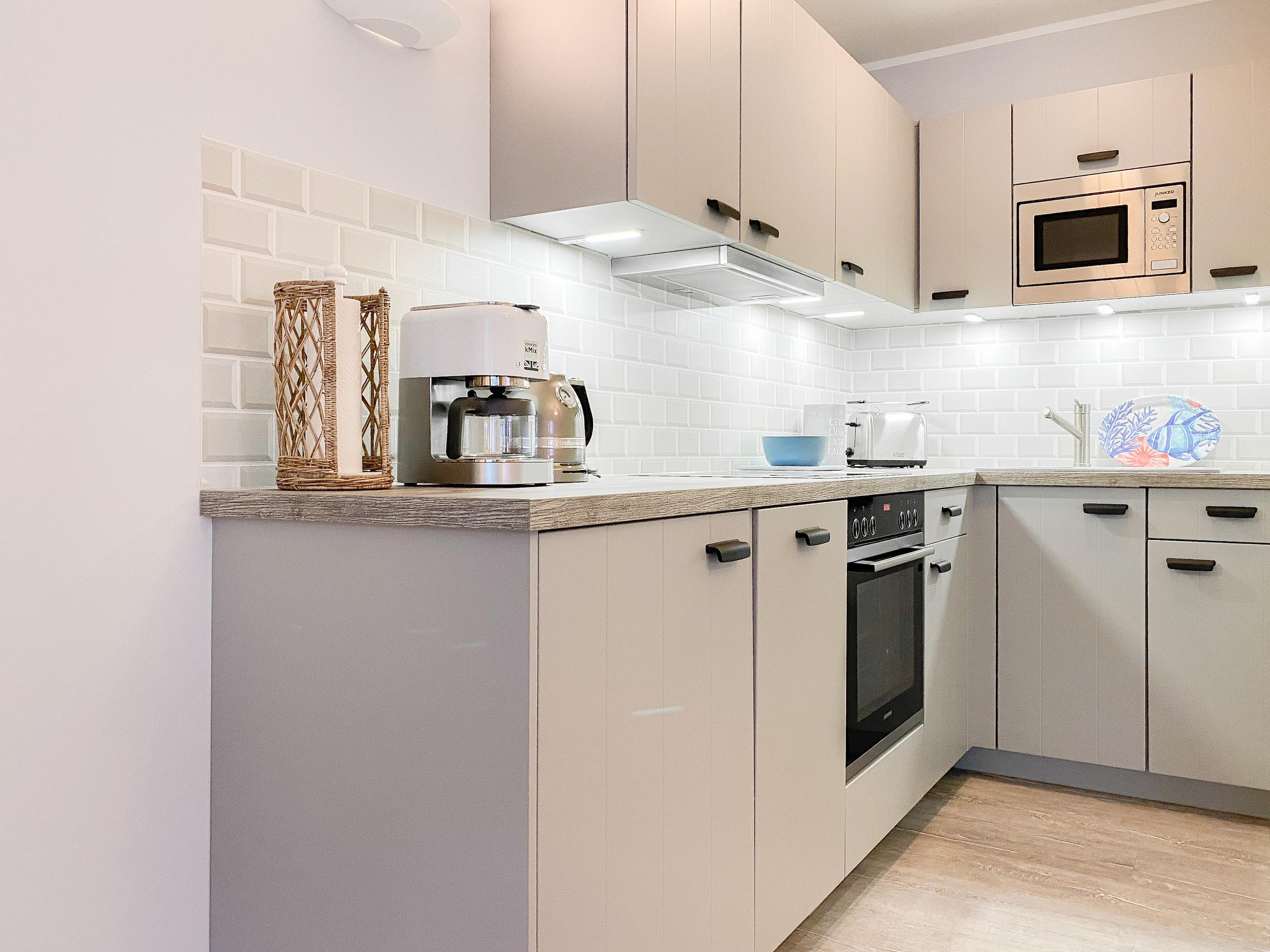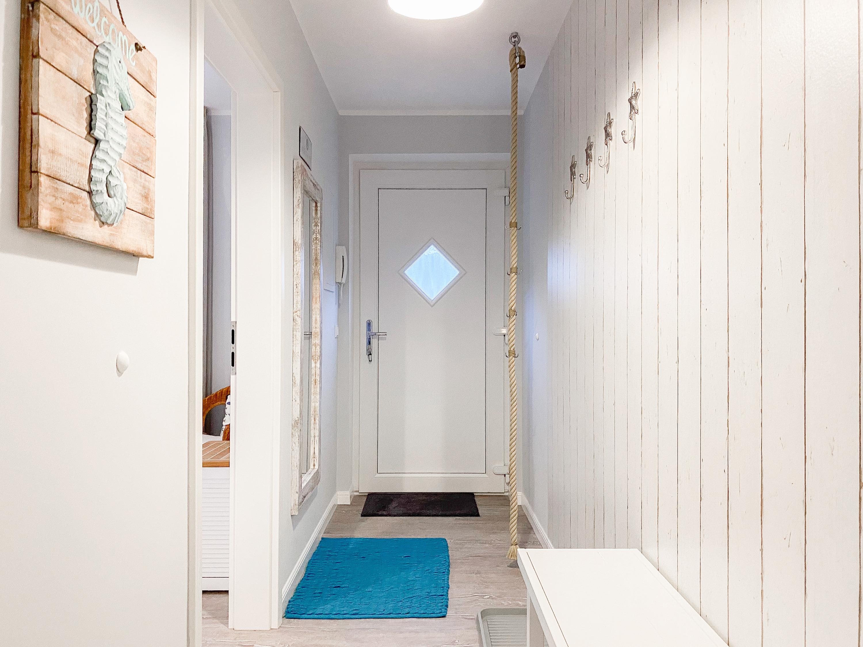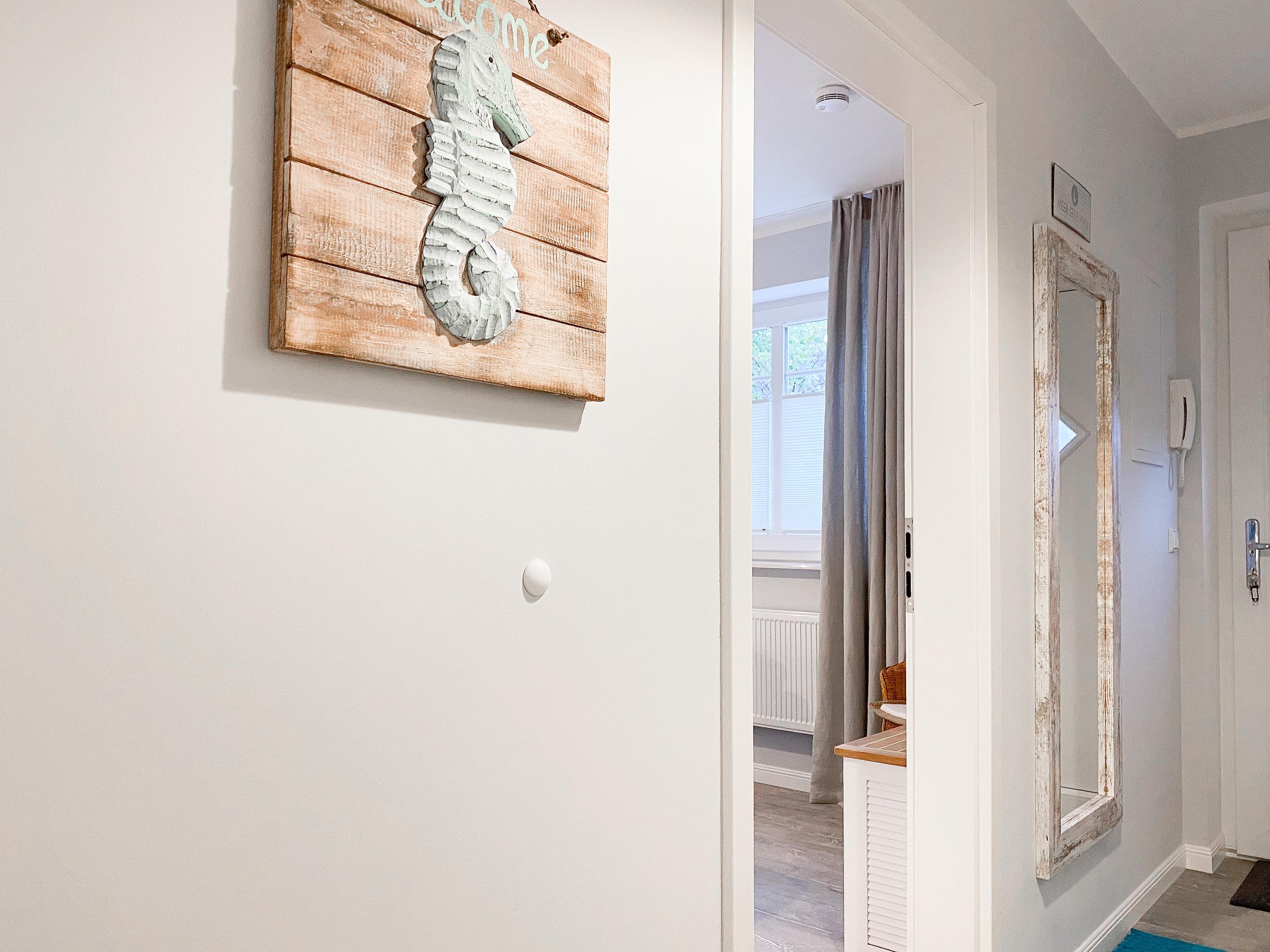 Die Ferienwohnung im 2. Obergeschoss ist hervorragend für[nbsp] 2 Personen geeignet und besticht durch ihr durchdachtes Raumkonzept. Es erwartet Sie ein gemütlicher Wohnbereich mit einem hochwertigen Sofa mit Schlaffunktion (140x190), ein anschließender Essbereich für 2 Personen und eine offene Designküche in bester Ausstattung. Eine liebevoll ausgesuchte Inneneinrichtung und die perfekt darauf abgestimmten Dekorationselemente im Beachstyle laden zum Wohlfühlen in Strandnähe ein. Der teilweise überdachte Sonnenbalkon, ausgestattet mit hochwertigen Gartensesseln mit verstellbarem Rückenteil und Fußhocker, bietet einen schönen Teilseeblick, Meeresrauschen inklusive. Im Schlafzimmer befindet sich ein hochwertiges Boxspringbett, das Ihnen mit einer Größe von 180 x 200 einen hohen Schlafkomfort verspricht und die Fenster sind mit elektrischen Außenjalousien versehen. Der offene Einbauschrank ist großzügig bemessen und bietet ausreichend Stauraum für Ihre Urlaubsgarderobe. Das moderne Duschbad empfängt Sie in einem fröhlichbunten Innendesign und der Handtuchwärmer sorgt für zusätzlichen Komfort. Sowohl ein großer Flatscreen-TV im Wohnzimmer als auch die kostenlose Nutzung des WLAN gehören zum Entertainment-Paket. Ein Aufzug ist selbstverständlich vorhanden.