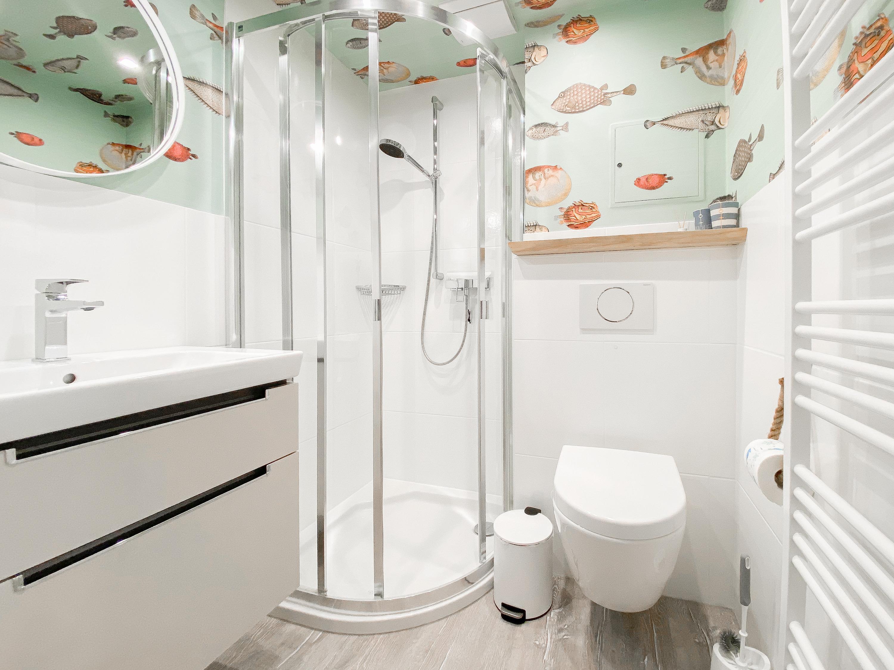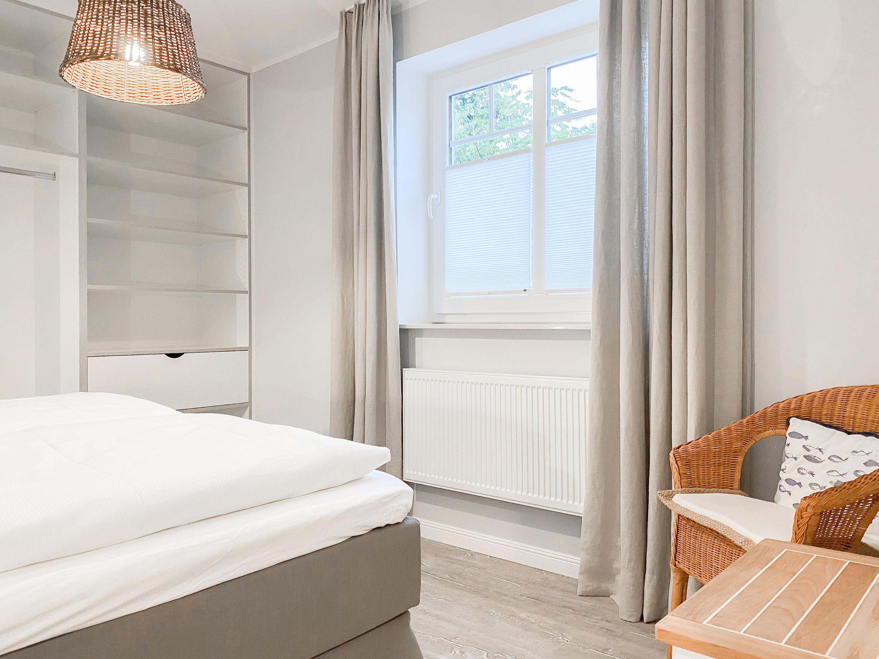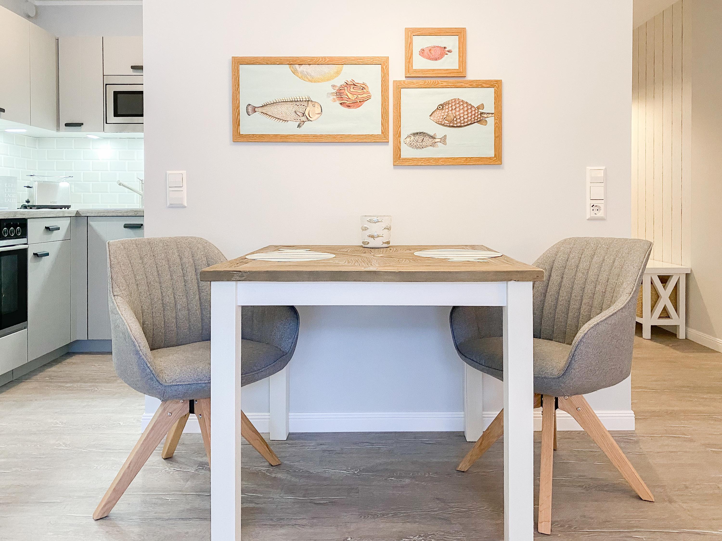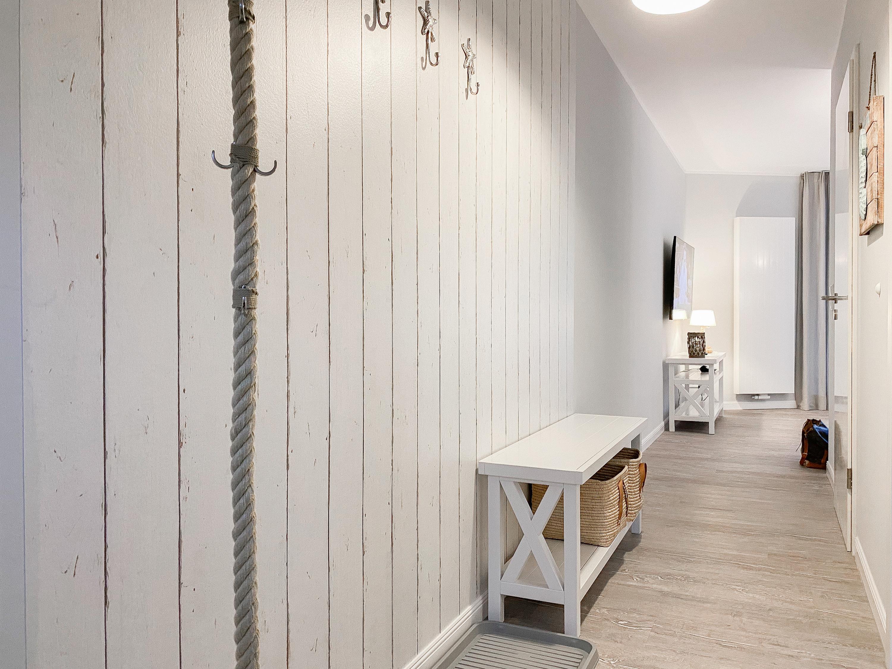 Die Ferienwohnung im 2. Obergeschoss ist hervorragend für[nbsp] 2 Personen geeignet und besticht durch ihr durchdachtes Raumkonzept. Es erwartet Sie ein gemütlicher Wohnbereich mit einem hochwertigen Sofa mit Schlaffunktion (140x190), ein anschließender Essbereich für 2 Personen und eine offene Designküche in bester Ausstattung. Eine liebevoll ausgesuchte Inneneinrichtung und die perfekt darauf abgestimmten Dekorationselemente im Beachstyle laden zum Wohlfühlen in Strandnähe ein. Der teilweise überdachte Sonnenbalkon, ausgestattet mit hochwertigen Gartensesseln mit verstellbarem Rückenteil und Fußhocker, bietet einen schönen Teilseeblick, Meeresrauschen inklusive. Im Schlafzimmer befindet sich ein hochwertiges Boxspringbett, das Ihnen mit einer Größe von 180 x 200 einen hohen Schlafkomfort verspricht und die Fenster sind mit elektrischen Außenjalousien versehen. Der offene Einbauschrank ist großzügig bemessen und bietet ausreichend Stauraum für Ihre Urlaubsgarderobe. Das moderne Duschbad empfängt Sie in einem fröhlichbunten Innendesign und der Handtuchwärmer sorgt für zusätzlichen Komfort. Sowohl ein großer Flatscreen-TV im Wohnzimmer als auch die kostenlose Nutzung des WLAN gehören zum Entertainment-Paket. Ein Aufzug ist selbstverständlich vorhanden.