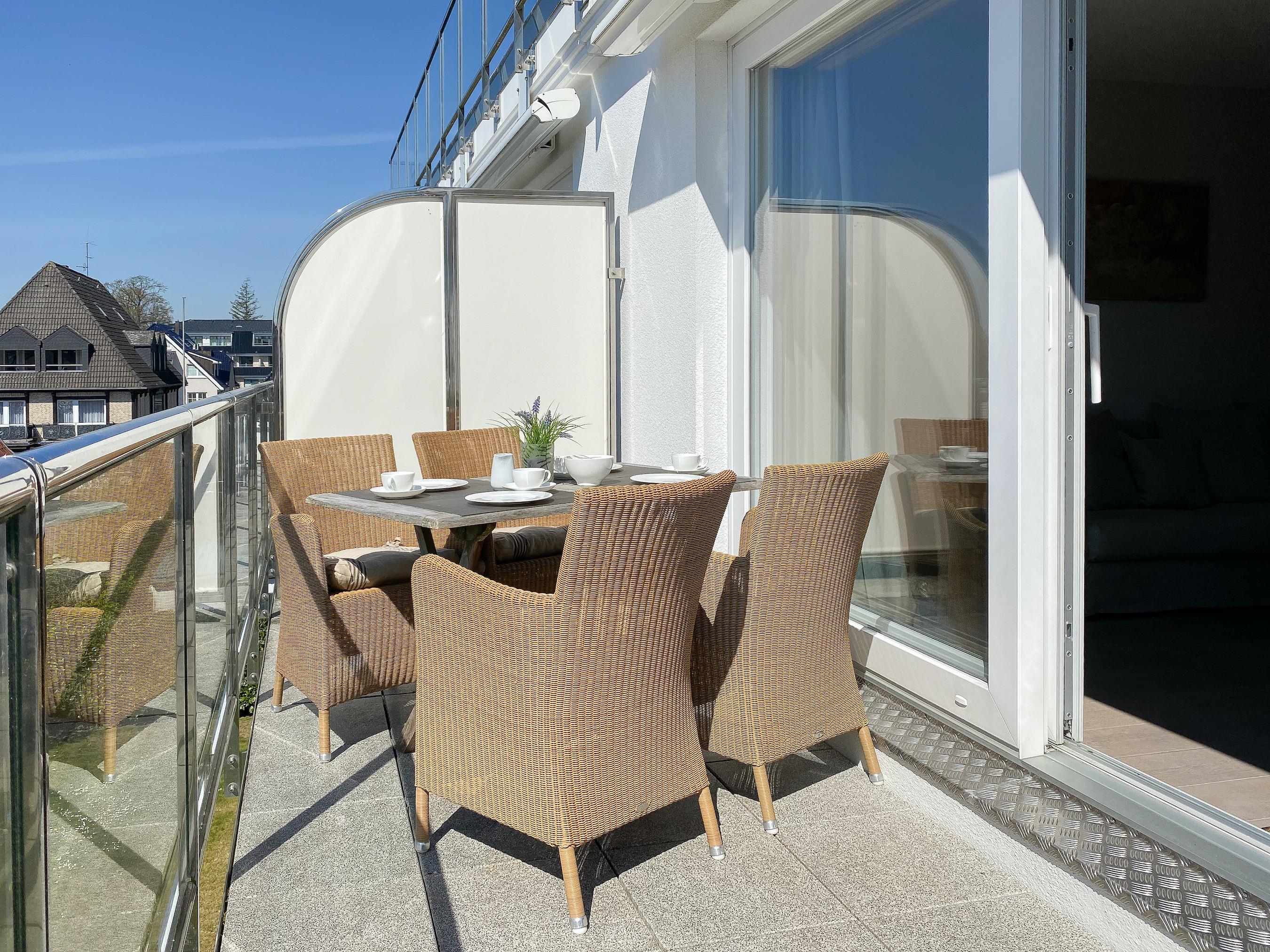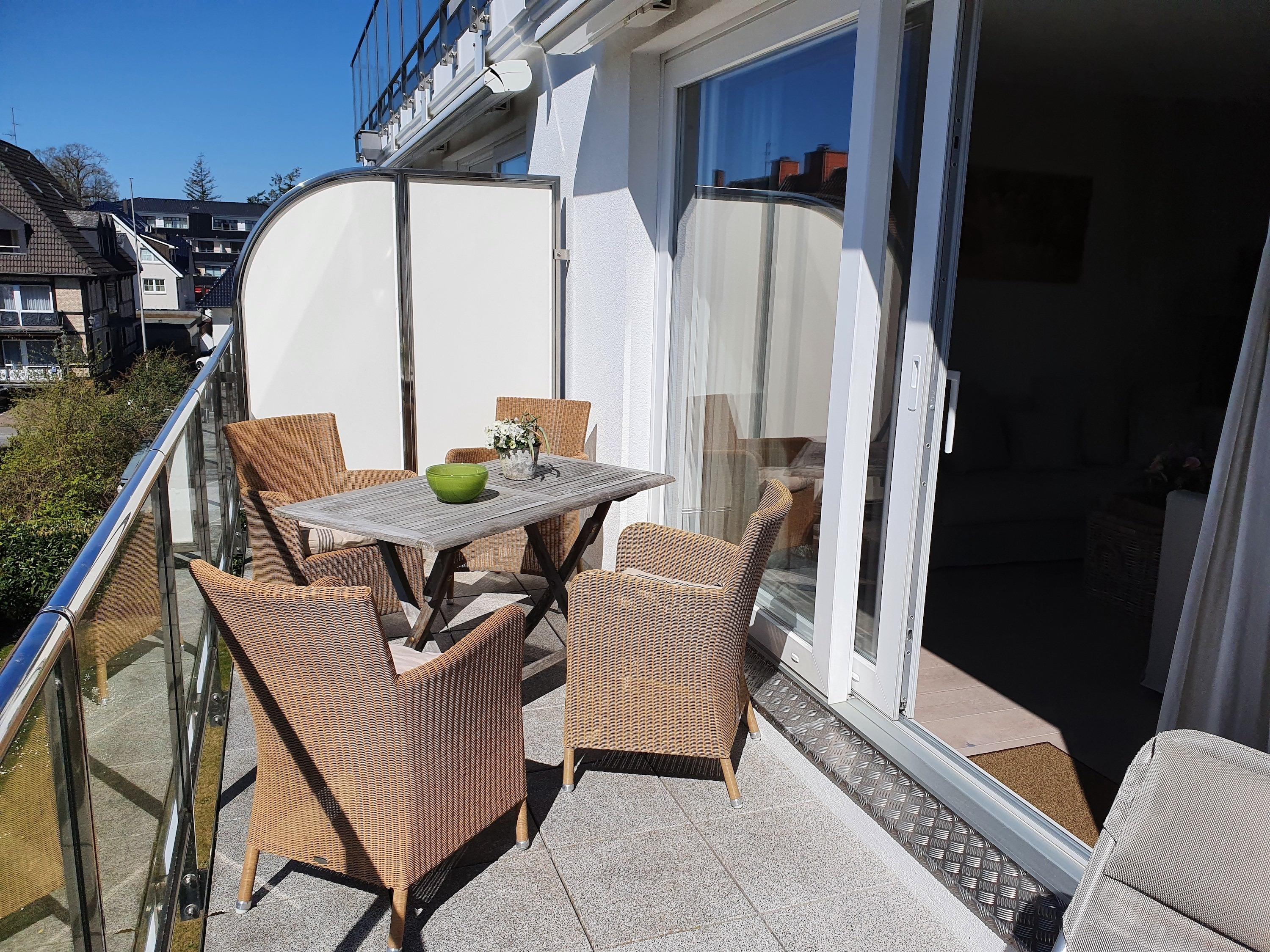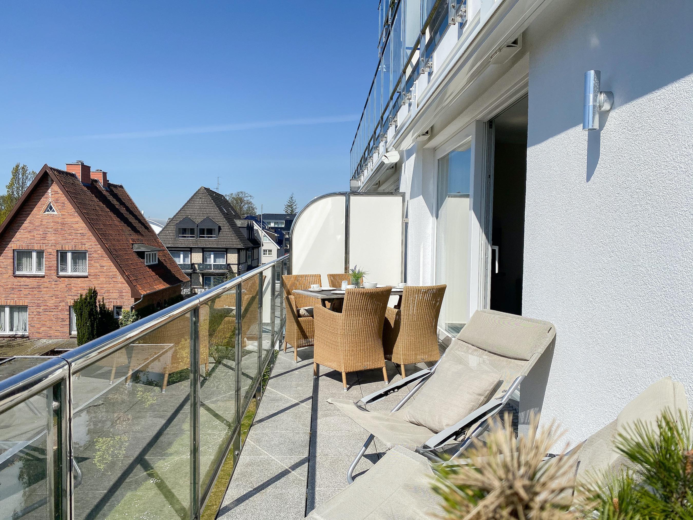 Die Wohnung bietet zeitgemäßen Luxus auf 106 qm Wohnfläche im 2. Obergeschoss des Hauses Timmare I. Mit zwei separaten Schlafzimmern mit Doppelbetten (jeweils 180x200), elektrischen Außenjalousien und TV sowie zwei separaten, hochwertigen Bädern, eines ist mit einer geräumigen Dusche, das andere mit einer großen Badewanne, finden hier 4 Personen reichlich Platz zum Entfalten. Das geschmackvoll gestaltete Wohnzimmer mit Sylter Flair ist mit 2 gemütlichen Sofas, TV, Stereoanlage und kostenlosem Internetzugang über WLAN ausgestattet. Der integrierte Küchenbereich mit einem großen freistehenden Küchenblock zum Essen bilden das Herzstück der Ferienwohnung. Bei der Ausstattung und Einrichtung des Objektes wurde sehr viel Wert auf hochwertige Materialen gelegt. Zwei großzügige Balkone sorgen vom Frühstück bis in die Abendstunden für schöne, sonnige Aussichten.