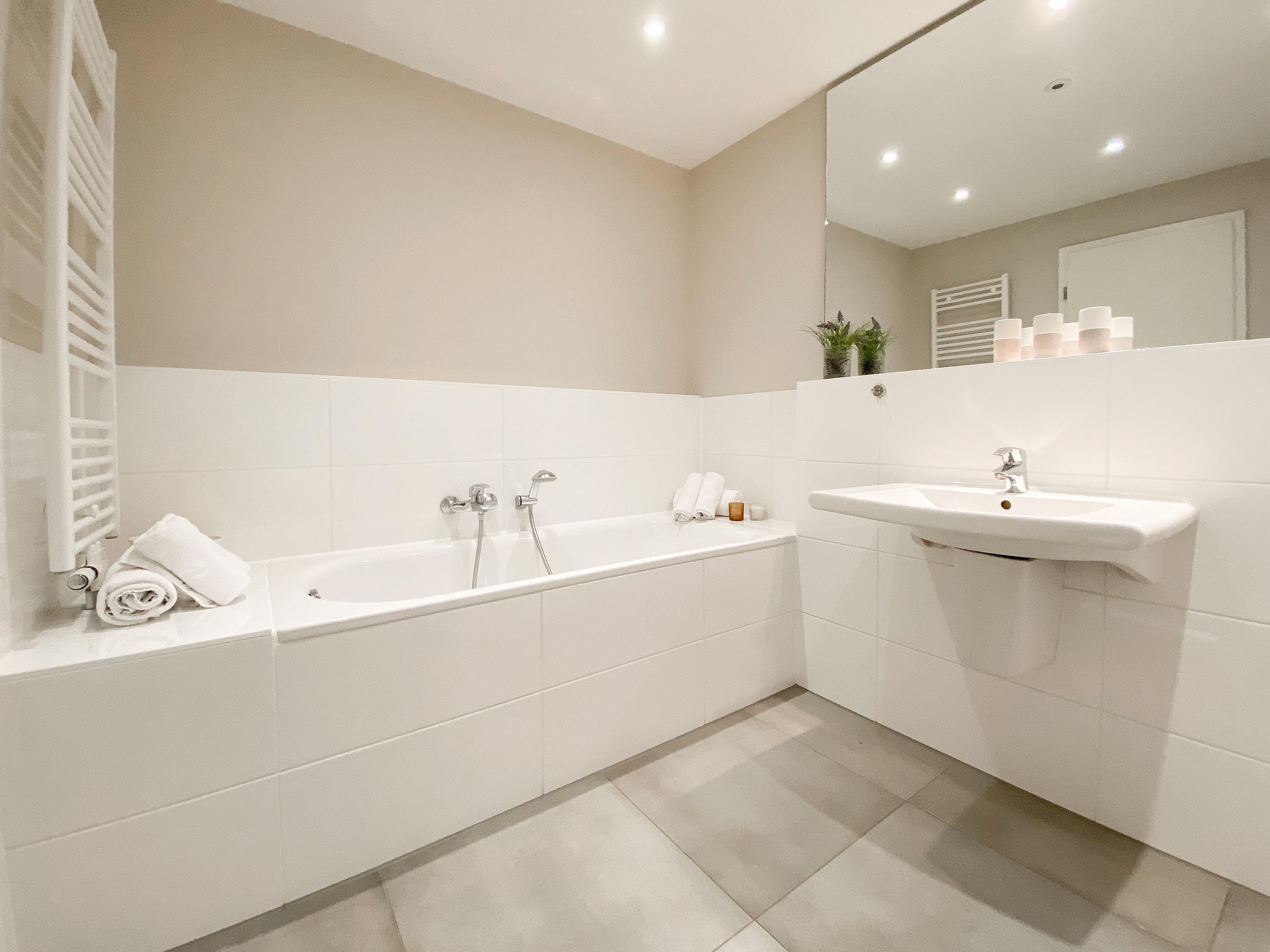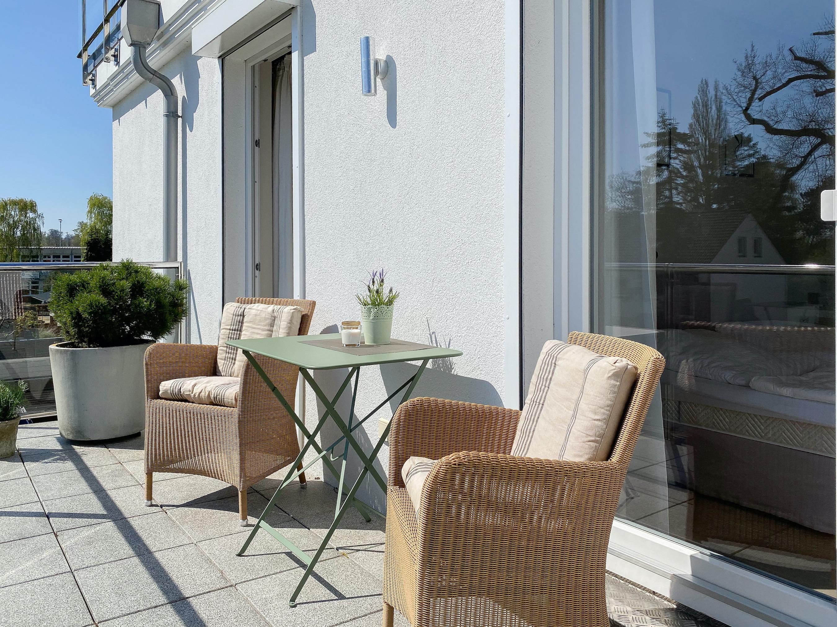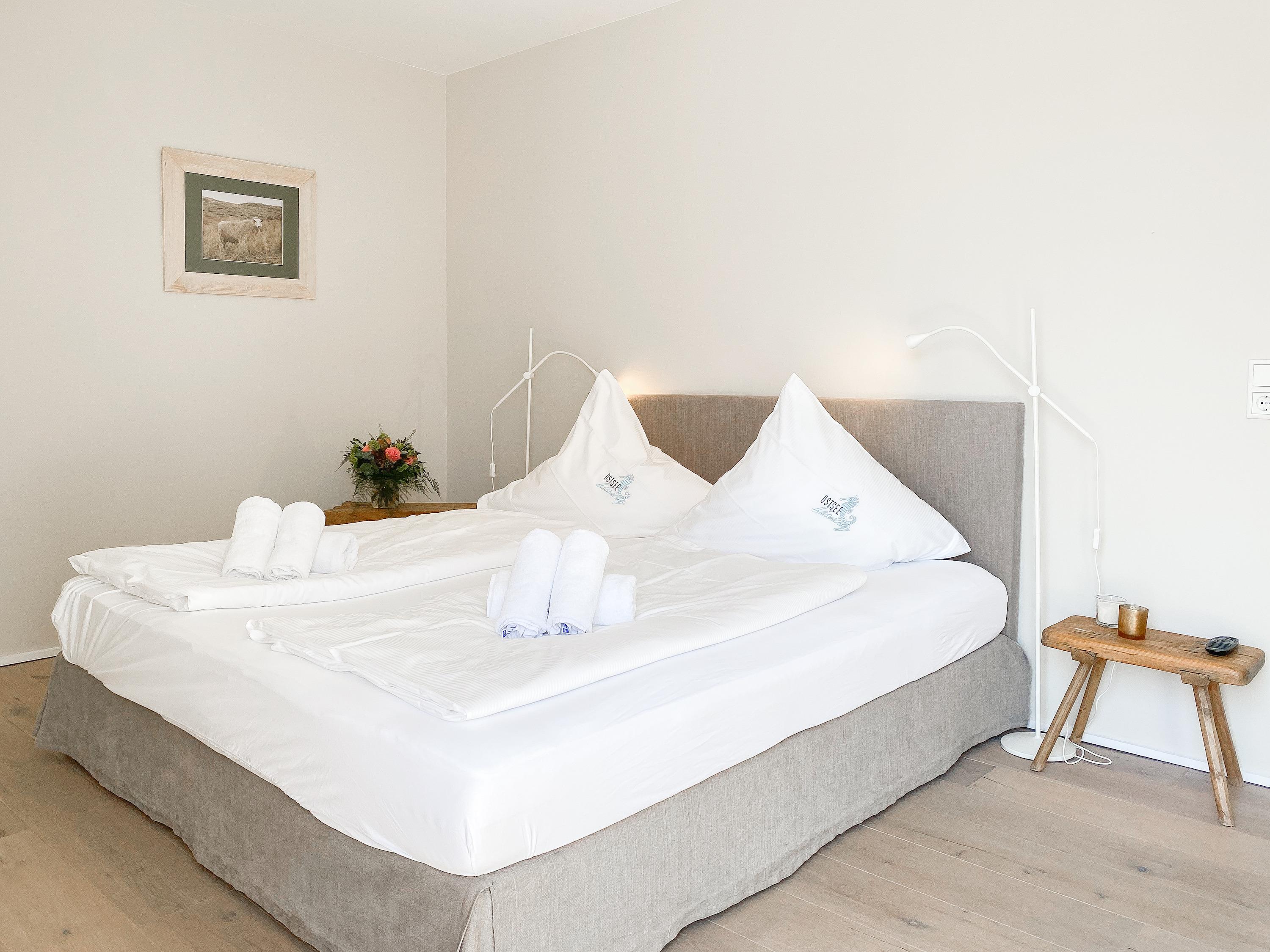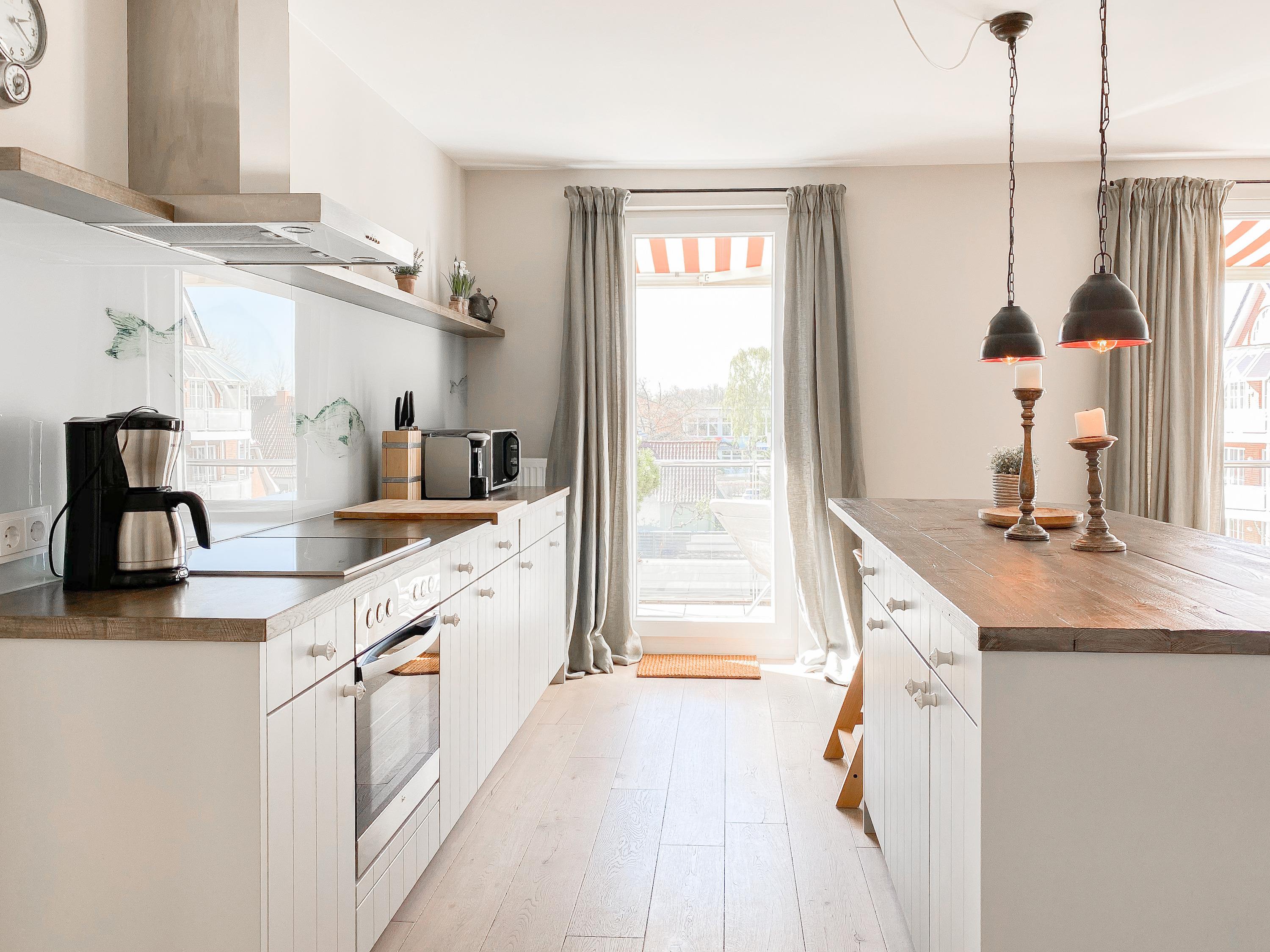 Die Wohnung bietet zeitgemäßen Luxus auf 106 qm Wohnfläche im 2. Obergeschoss des Hauses Timmare I. Mit zwei separaten Schlafzimmern mit Doppelbetten (jeweils 180x200), elektrischen Außenjalousien und TV sowie zwei separaten, hochwertigen Bädern, eines ist mit einer geräumigen Dusche, das andere mit einer großen Badewanne, finden hier 4 Personen reichlich Platz zum Entfalten. Das geschmackvoll gestaltete Wohnzimmer mit Sylter Flair ist mit 2 gemütlichen Sofas, TV, Stereoanlage und kostenlosem Internetzugang über WLAN ausgestattet. Der integrierte Küchenbereich mit einem großen freistehenden Küchenblock zum Essen bilden das Herzstück der Ferienwohnung. Bei der Ausstattung und Einrichtung des Objektes wurde sehr viel Wert auf hochwertige Materialen gelegt. Zwei großzügige Balkone sorgen vom Frühstück bis in die Abendstunden für schöne, sonnige Aussichten.