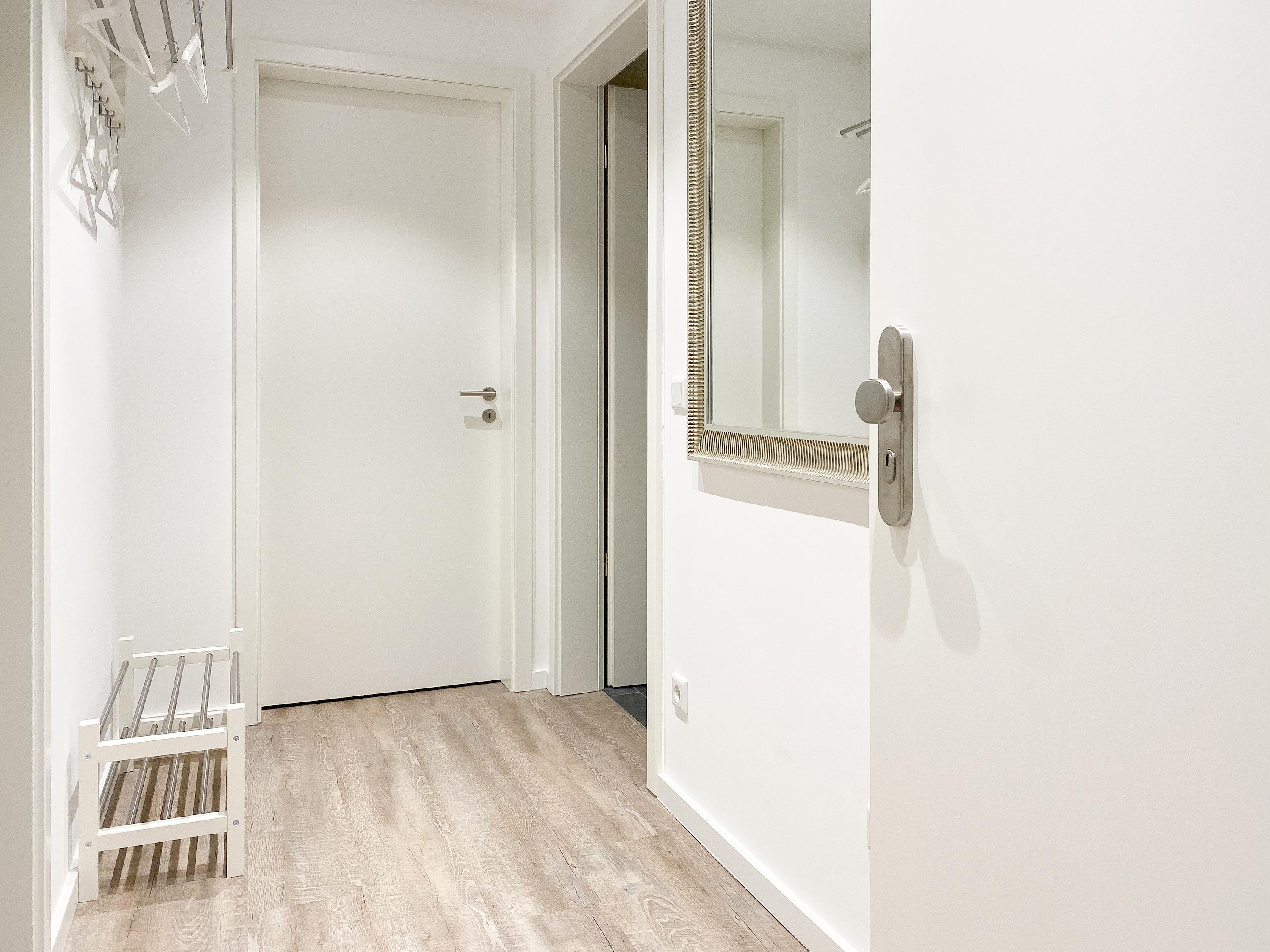 Die großzügig geschnittene Erdgeschosswohnung bietet auf ca. 60 qm Wohnfläche genügend Platz für 4 Personen, um einen entspannten Urlaub zu verleben. Sämtliche Annehmlichkeiten eines Neubaus wie bodentiefe Fenster, Fußbodenheizung und elektrische Außenjalousien sorgen für helle Räumlichkeiten und eine angenehmes Raumklima. Zur Verfügung stehen zwei separate Schlafzimmer, eingerichtet mit einem Doppelbett (180x200) und einem Schlafsofa (140x200) sowie ein modernes Bad mit Walk In Dusche. Die bestens ausgestattete Einbauküche ist direkt mit dem großzügigen Wohn- Essbereich verbunden. Auf der möblierten Terrasse in Südausrichtung können Sie die Sonnentage von früh bis spät an der frischen Luft genießen. Selbstverständlich gehören die kostenlose WLAN Nutzung, Radio und TV zur Ausstattung.
