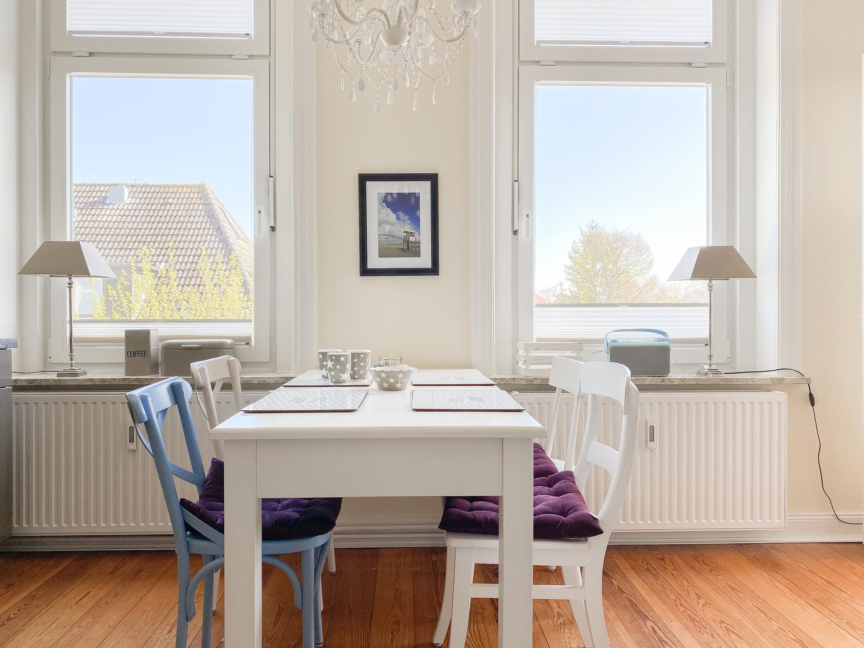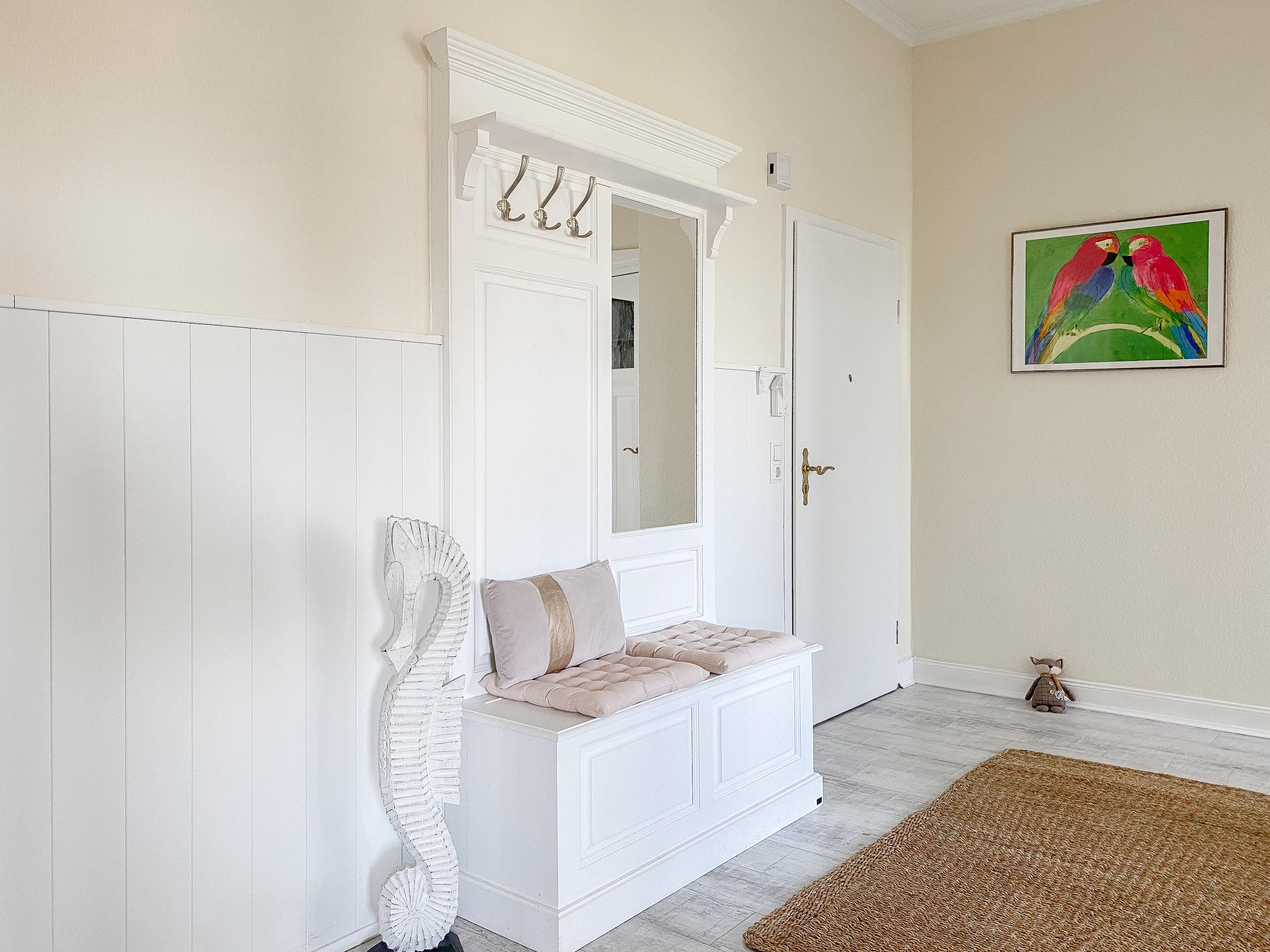 Die charmante Ferienwohnung im 3. OG wurde mit viel Liebe zum Detail saniert und eingerichtet. Die hohen Decken und großen Fenster schaffen eine helle, besondere Wohnatmosphäre. Ankommen und wohl fühlen! Die Wohnung verfügt über ein großes Schlafzimmer mit Doppelbett (180x200), TV und Zugang zur Loggia, über ein kleineres Schlafzimmer mit Einzelbett, das sich zu einem Doppelbett von 160x200 ausziehen lässt sowie ein[nbsp] hochwertiges, großes Duschbad mit viel Tageslicht. Das Zentrum[nbsp] bildet der Wohnbereich, ausgestattet mit einem gemütlichen Sofa , TV und kostenlosem Internetzugang über WLAN, die moderne Einbauküche mit allen notwendigen technischen Geräten und der Essbereich. Von hier ist auch die sonnige, geschützte Loggia zu betreten, die bei Sonne, Wind und Wetter zum Entspannen einlädt.