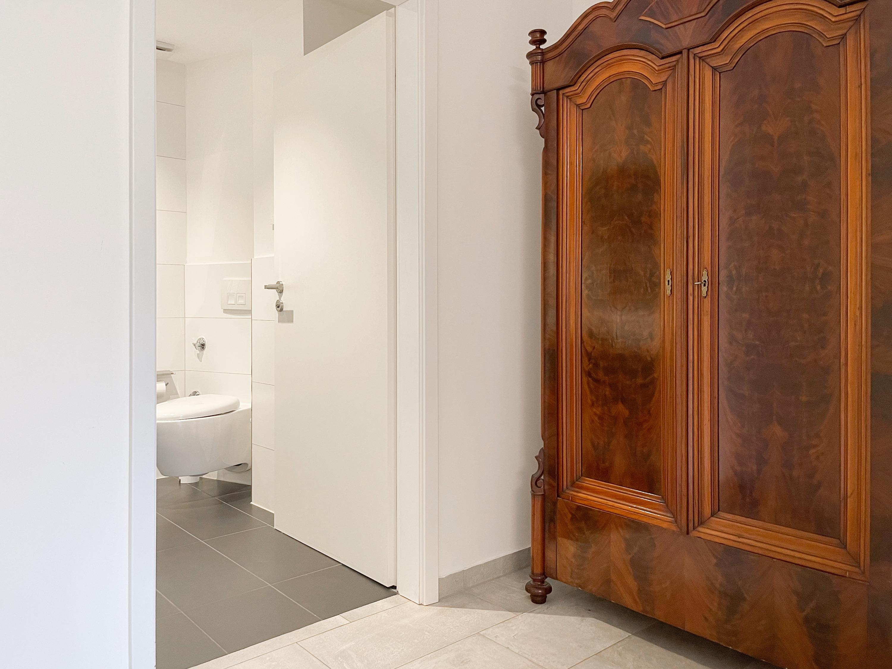 Die Ferienwohnung Waterkant #4 befindet sich im Erdgeschoss und bietet mit 1 Schlafzimmer auf 55 qm ausreichend Raum für 2 Personen, um einen entspannten Ostseeurlaub in Strandnähe zu verleben. Es erwartet Sie ein äußerst großzügiger Wohnbereich mit Sofa, ein anschließender Essbereich und eine offene Einbauküche, gut ausgestattet mit Ceranfeld, Backofen, Geschirrspüler und Kühl- und Gefrierschrank. Die Terrasse mit kleinem Garten erstreckt sich über die gesamte Breite der Wohnung. Der Außenbereich ist umzäunt, jedoch offen zur Nachbarwohnung. Das Schlafzimmer ist mit einem Doppelbett (Boxspring 180x200), TV, Verdunkelungsvorhängen und einem Kleiderschrank eingerichtet. Das Bad ist mit einer Walk In Dusche, Waschtisch, WC und Handtuchwärmer ausgestattet. WLAN kann selbstverständlich kostenlos genutzt werden. Ein Außenstellplatz gehört zur Wohnung. Ein abschließbarer Fahrradraum kann gemeinschaftlich genutzt werden, ebenso Waschmaschine und Trockner, die im separaten Waschraum untergebracht sind.