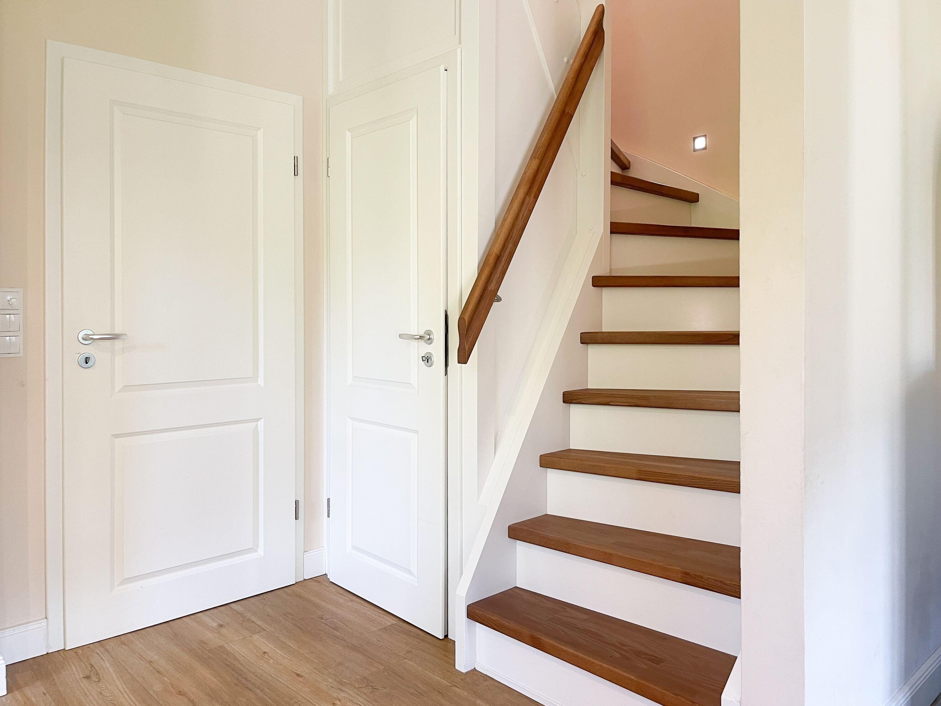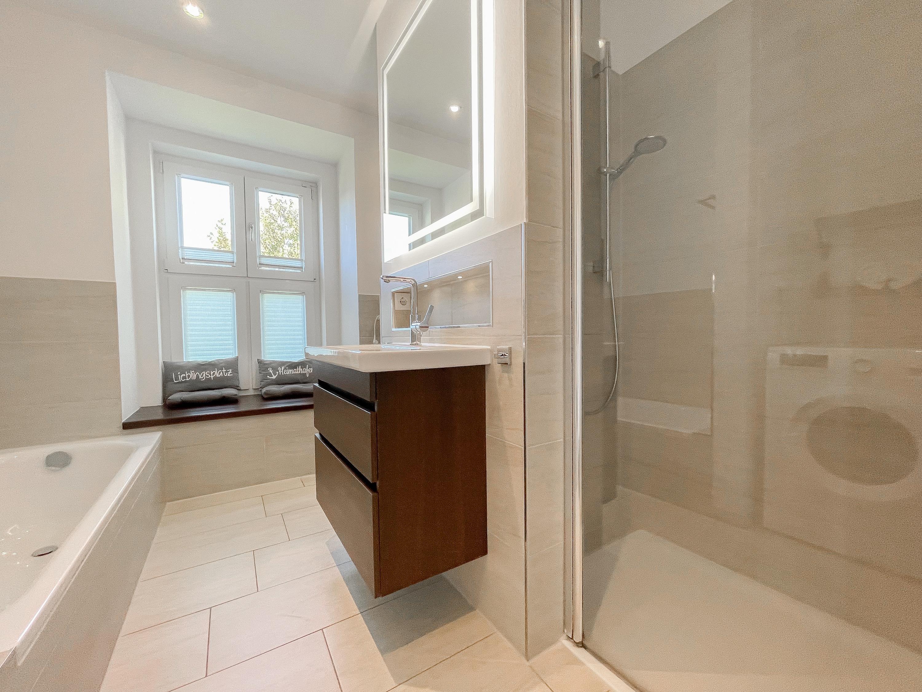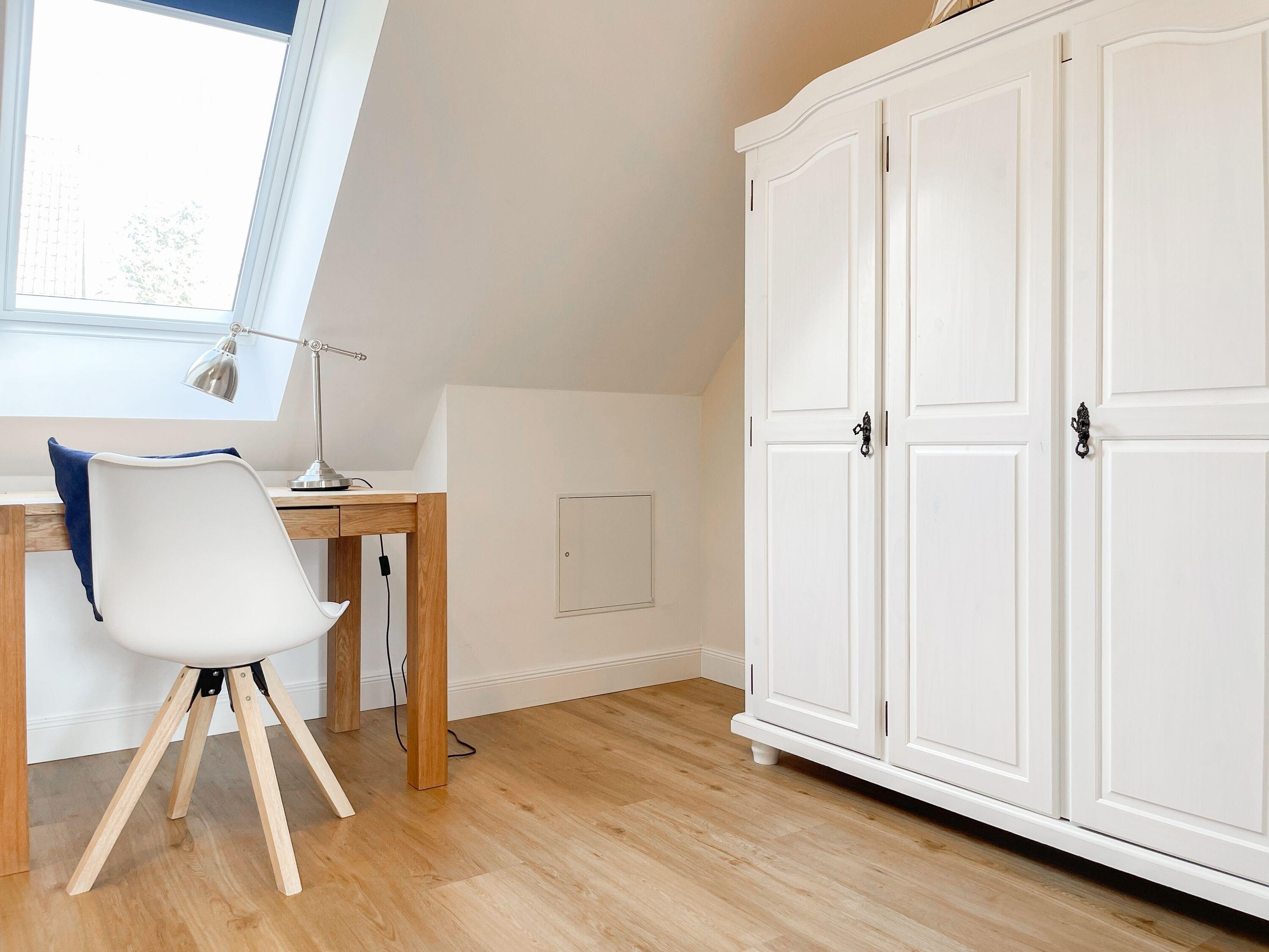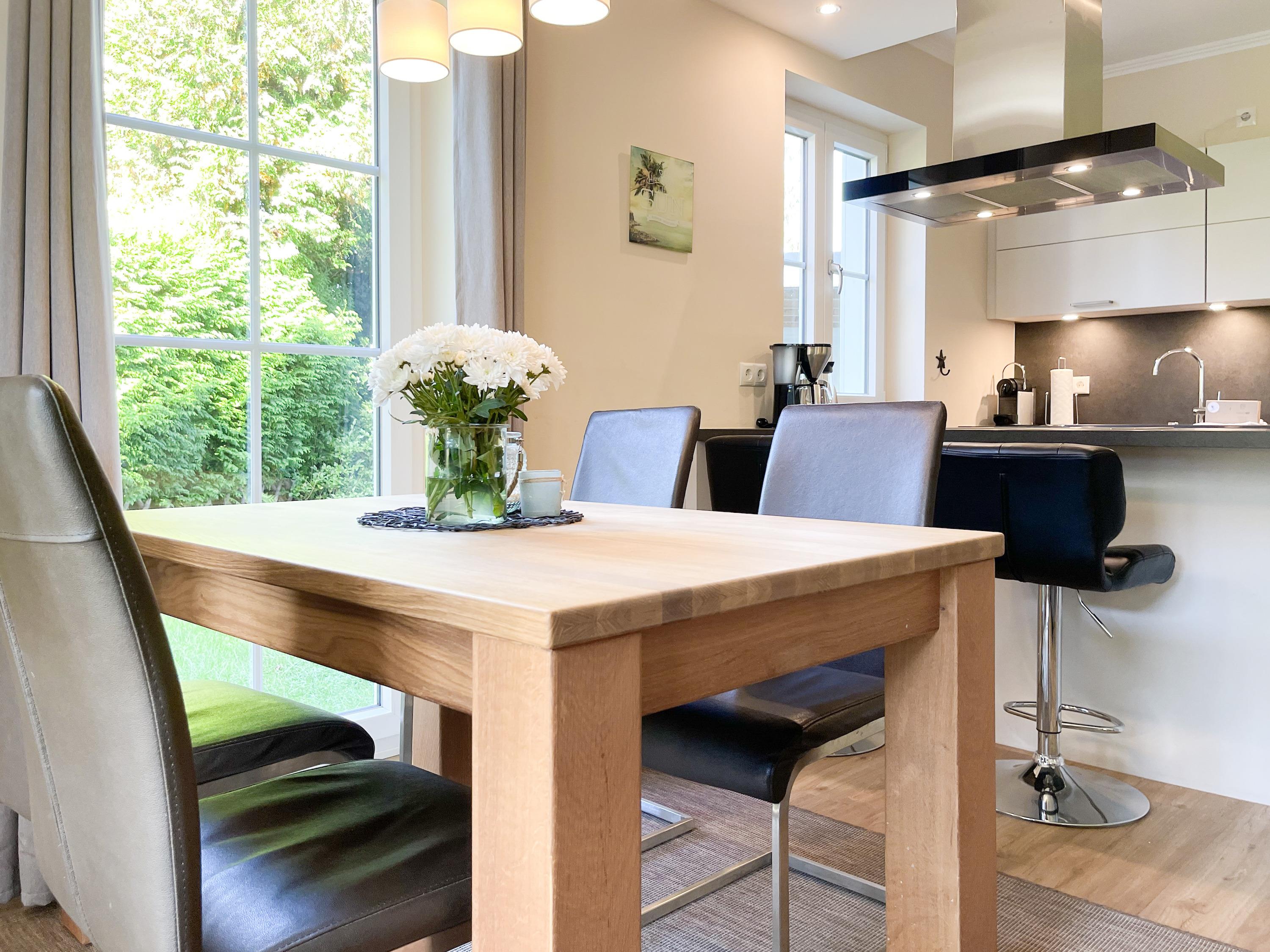 Es erwartet Sie ein wunderschönes Doppelhaus im Hampton Style. Sonnige Räumlichkeiten und die hochwertige Ausstattung sorgen für hohen Wohnstandard in einem schönen Ambiente. Mit 3 Schlafzimmern, einem modernen Bad mit Dusche und Badewanne sowie einem zusätzlichen Gäste WC, bietet das Haus auf[nbsp] 75 qm Wohnfläche ausreichend Raum für 5 Personen, um einen erholsamen Ostseeurlaub ganz nah am Strand zu verbringen. Im Erdgeschoss erwartet Sie ein gemütlich eingerichteter Wohnbereich mit Sofa, TV und Kaminofen, ein anschließender Essbereich sowie eine offene Einbauküche in bester Ausstattung zum gemeinsamen Kochen. Die vorgelagerte überdachte Veranda in Südausrichtung mit Garten ist ein herrlicher Platz zum Entspannen oder für Outdoor Aktivitäten. Ein Schlafzimmer, ausgestattet mit einem Einzelbett (90x200) und einer Kommode[nbsp] sowie ein Gäste WC, sind ebenfalls im Erdgeschoss untergebracht. Im Obergeschoss gibt es zwei separate Schlafzimmer, eines ist mit einem Doppelbett (180x200), einem Kleiderschrank und einem weiteren[nbsp] TV ausgestattet. Das andere ist mit 2 Einzelbetten (90x200), einem Kleiderschrank und einem Schreibtisch für das Homeoffice eingerichtet. Das hochwertige Bad mit Badewanne, Dusche und integrierter Waschmaschine, ist modern und lichtdurchflutet. Die Fenster der Schlafzimmer lassen sich abdunkeln (keine Blackout Verdunkelung). WLAN steht selbstverständlich zur Verfügung.