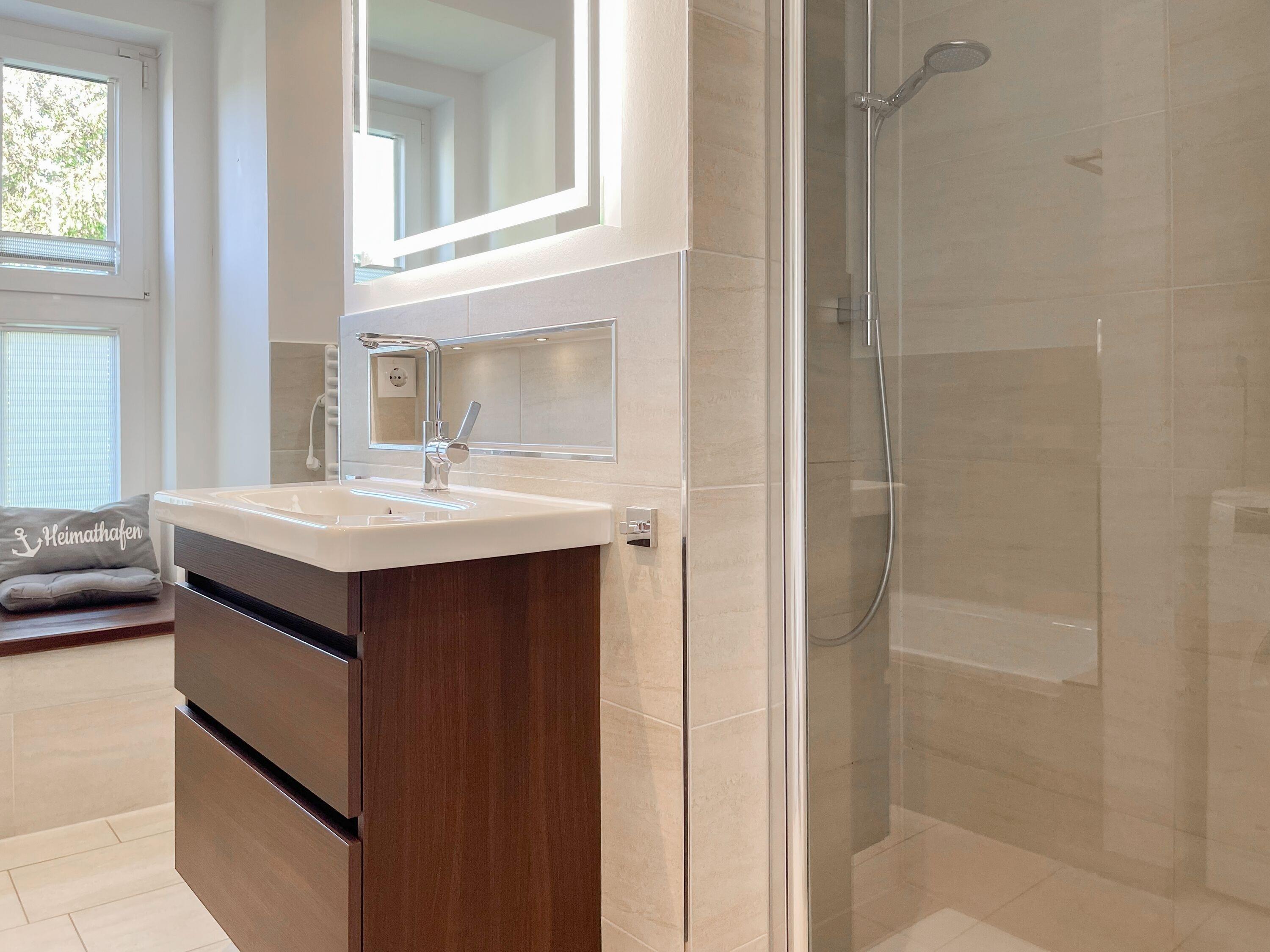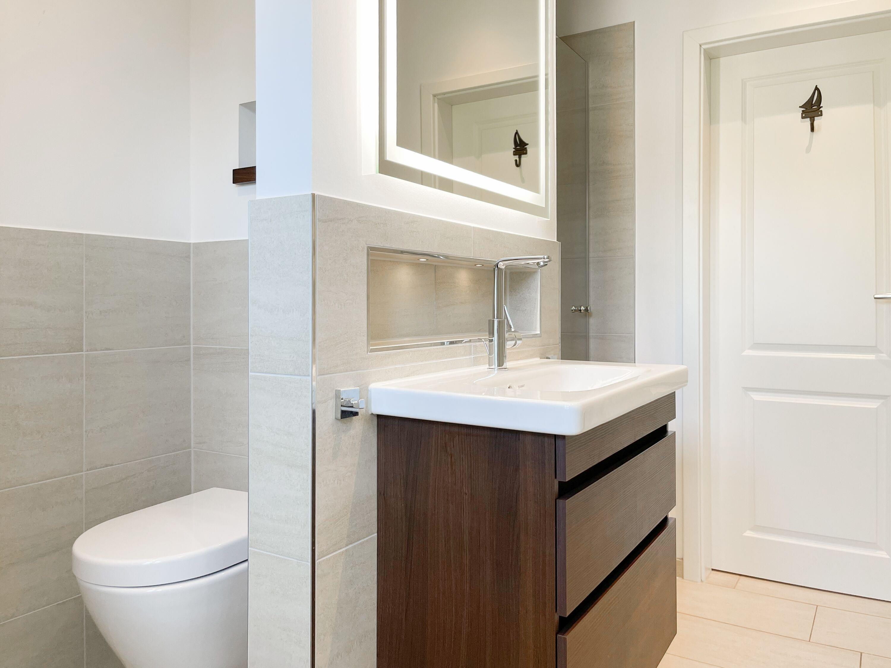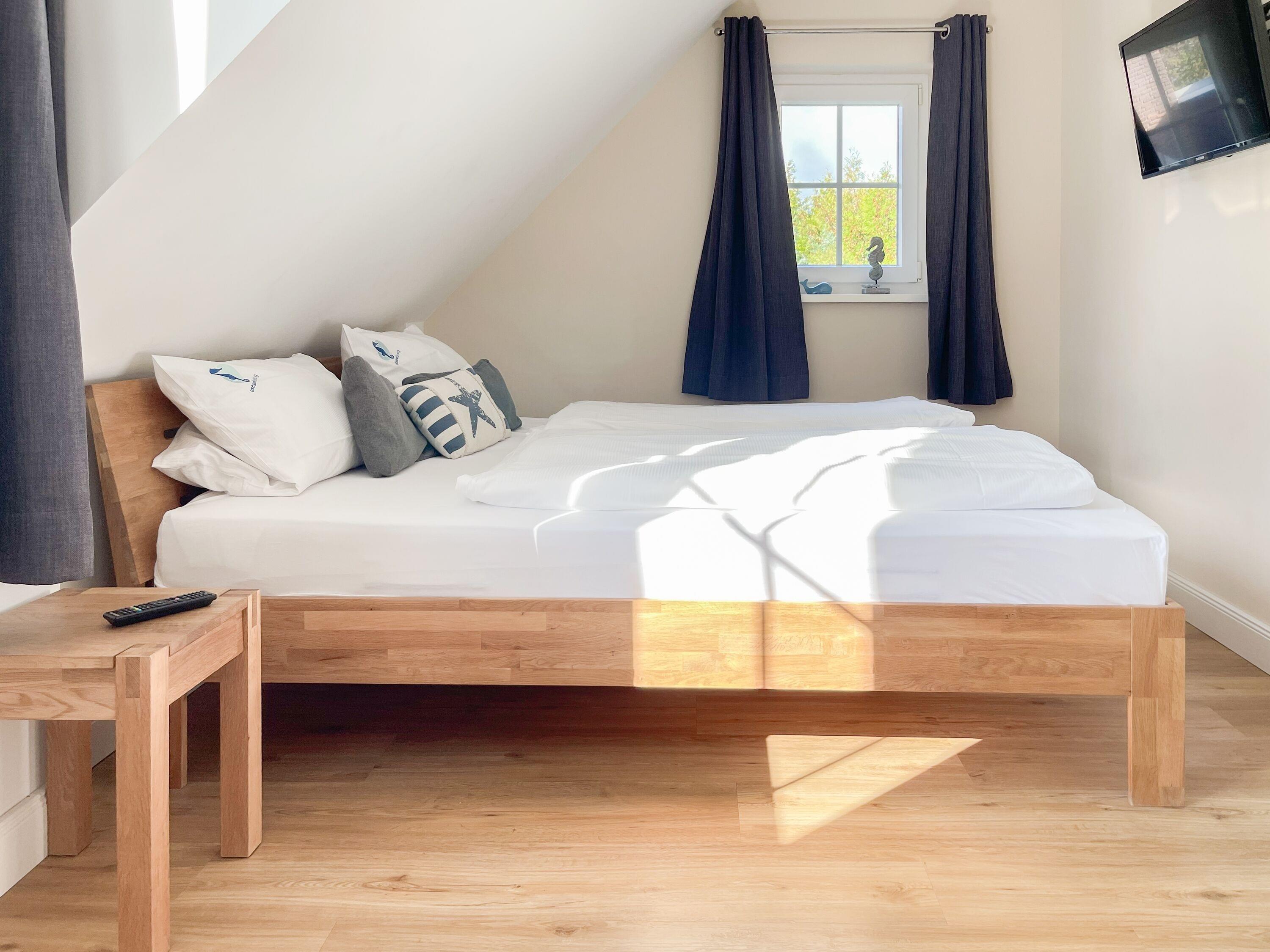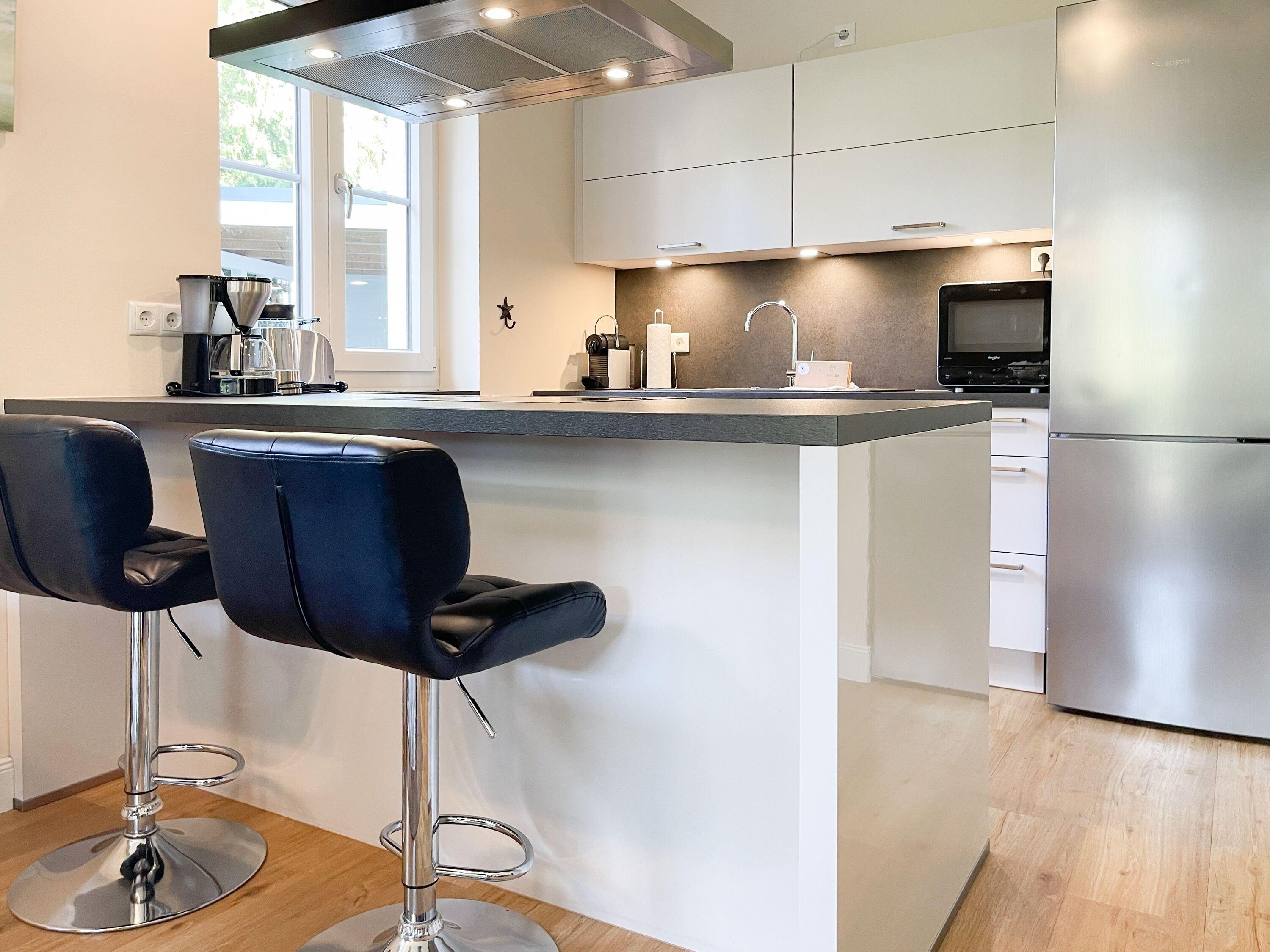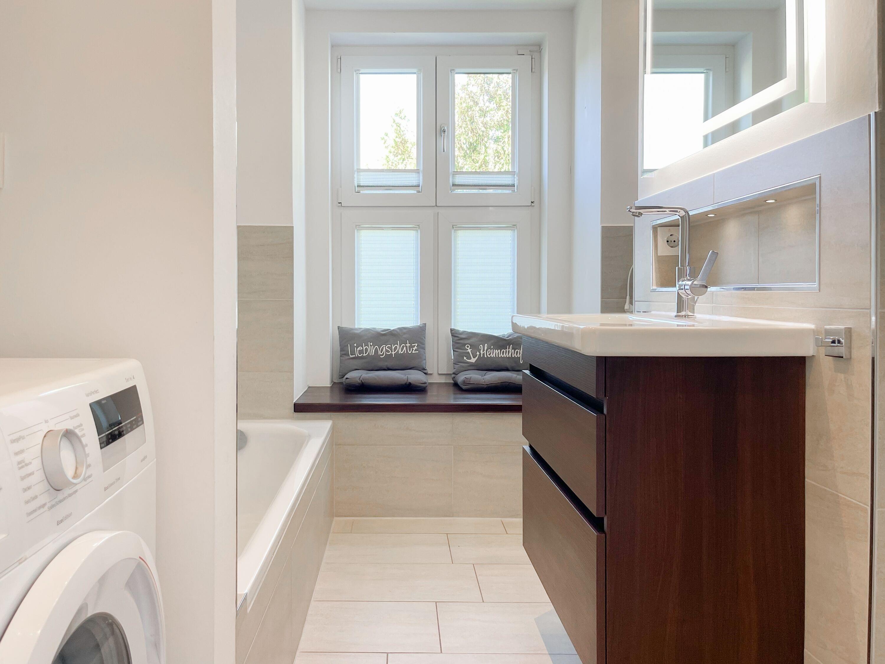 Es erwartet Sie ein wunderschönes Doppelhaus im Hampton Style. Sonnige Räumlichkeiten und die hochwertige Ausstattung sorgen für hohen Wohnstandard in einem schönen Ambiente. Mit 3 Schlafzimmern, einem modernen Bad mit Dusche und Badewanne sowie einem zusätzlichen Gäste WC, bietet das Haus auf[nbsp] 75 qm Wohnfläche ausreichend Raum für 5 Personen, um einen erholsamen Ostseeurlaub ganz nah am Strand zu verbringen. Im Erdgeschoss erwartet Sie ein gemütlich eingerichteter Wohnbereich mit Sofa, TV und Kaminofen, ein anschließender Essbereich sowie eine offene Einbauküche in bester Ausstattung zum gemeinsamen Kochen. Die vorgelagerte überdachte Veranda in Südausrichtung mit Garten ist ein herrlicher Platz zum Entspannen oder für Outdoor Aktivitäten. Ein Schlafzimmer, ausgestattet mit einem Einzelbett (90x200) und einer Kommode[nbsp] sowie ein Gäste WC, sind ebenfalls im Erdgeschoss untergebracht. Im Obergeschoss gibt es zwei separate Schlafzimmer, eines ist mit einem Doppelbett (180x200), einem Kleiderschrank und einem weiteren[nbsp] TV ausgestattet. Das andere ist mit 2 Einzelbetten (90x200), einem Kleiderschrank und einem Schreibtisch für das Homeoffice eingerichtet. Das hochwertige Bad mit Badewanne, Dusche und integrierter Waschmaschine, ist modern und lichtdurchflutet. Die Fenster der Schlafzimmer lassen sich abdunkeln (keine Blackout Verdunkelung). WLAN steht selbstverständlich zur Verfügung.