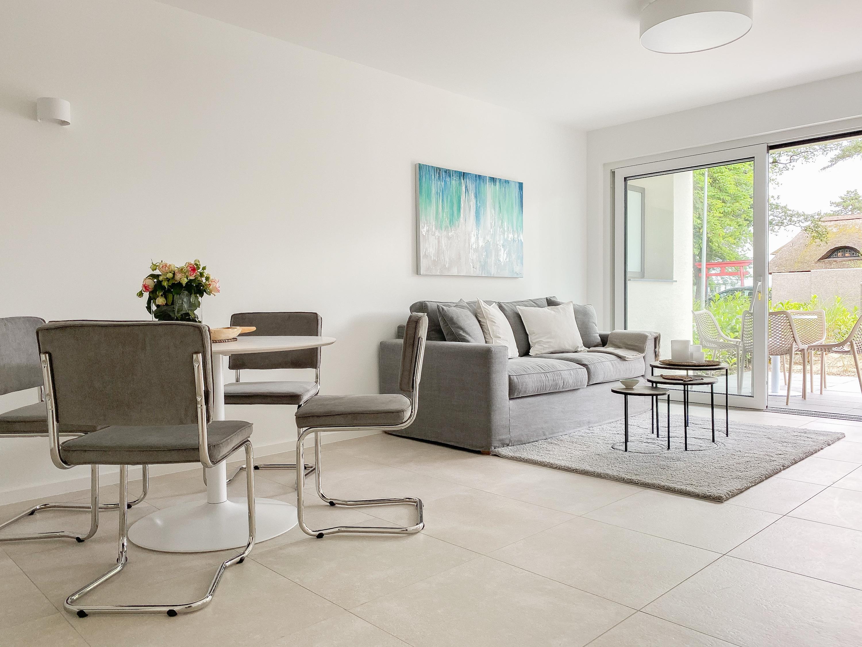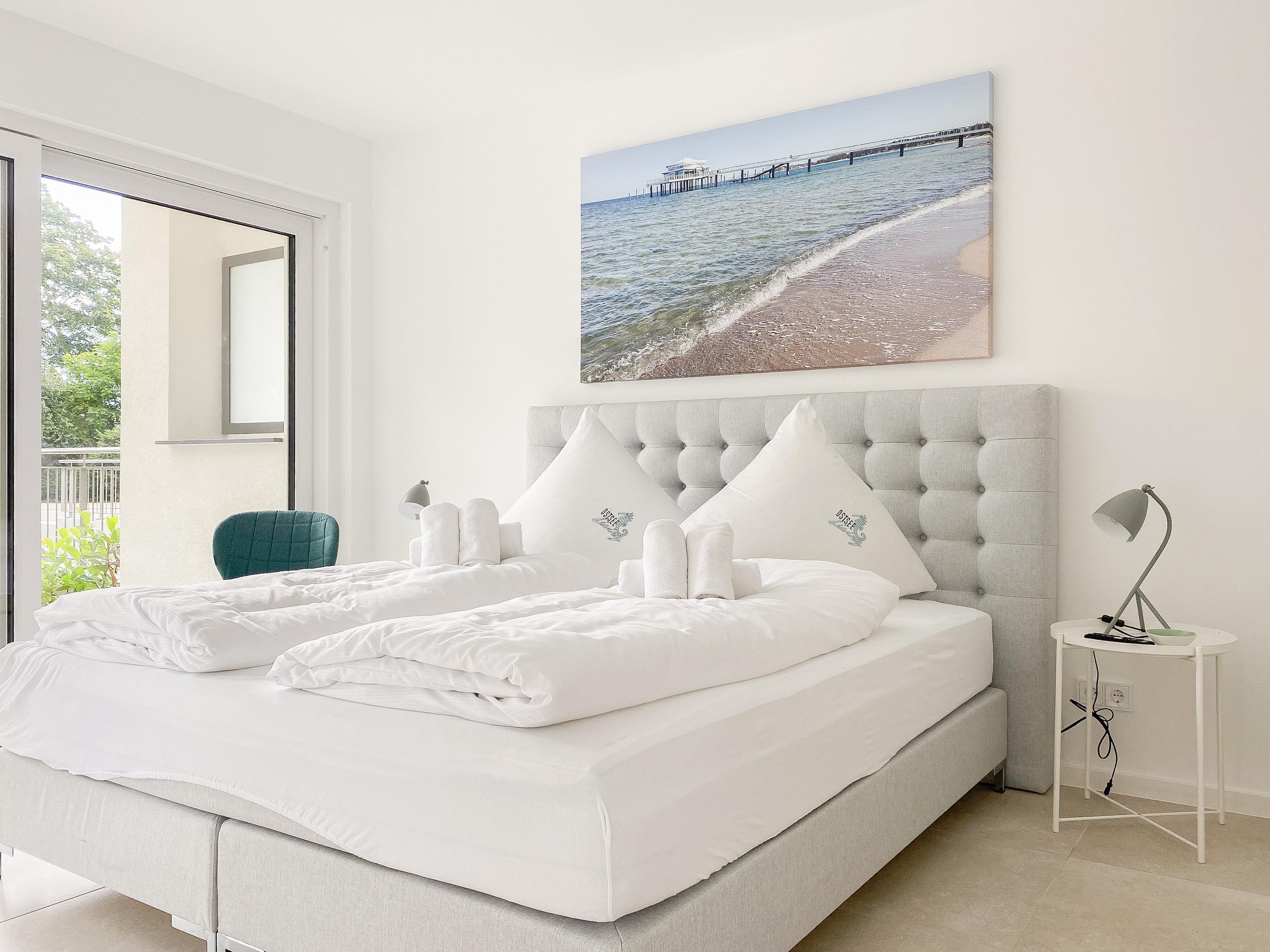 Die Ferienwohnung Wohnen am Strand 2 befindet sich im Erdgeschoss und bietet mit einem Schlafzimmer, ausgestattet mit einem Boxspringbett (180x200 )[nbsp][nbsp]und TV sowie einem bequemen Schlafsofa im Wohnbereich (140x185), [nbsp]jeglichen Komfort für 3 bis 4 [nbsp]Personen, um einen entspannten Urlaub zu verleben. Der hochwertig eingerichtete Wohn- Essbereich lässt keine Wünsche offen. Entspannen Sie auf Ihrer überdachten Terrasse, die sich über die gesamte Breite der Wohnung erstreckt, Brandungsrauschen und frische Ostseeluft inklusive. Es stehen insgesamt 2 TV, Radio und WLAN zur Verfügung. Die Wohnung ist mit Fußbodenheizung ausgestattet und alle Fenster sind mit elektrischen Außenjalousien versehen, die gleichermaßen für Verdunkelung oder Tageslicht mit Privatsphäre sorgen. Zur Wohnung gehört ein fester PKW Außenstellplatz. Das Haus verfügt über einen Fahrstuhl und einen Fahrradkeller. Waschmaschine und Trockner stehen kostenlos zur gemeinschaftlichen Nutzung[nbsp] zur Verfügung.