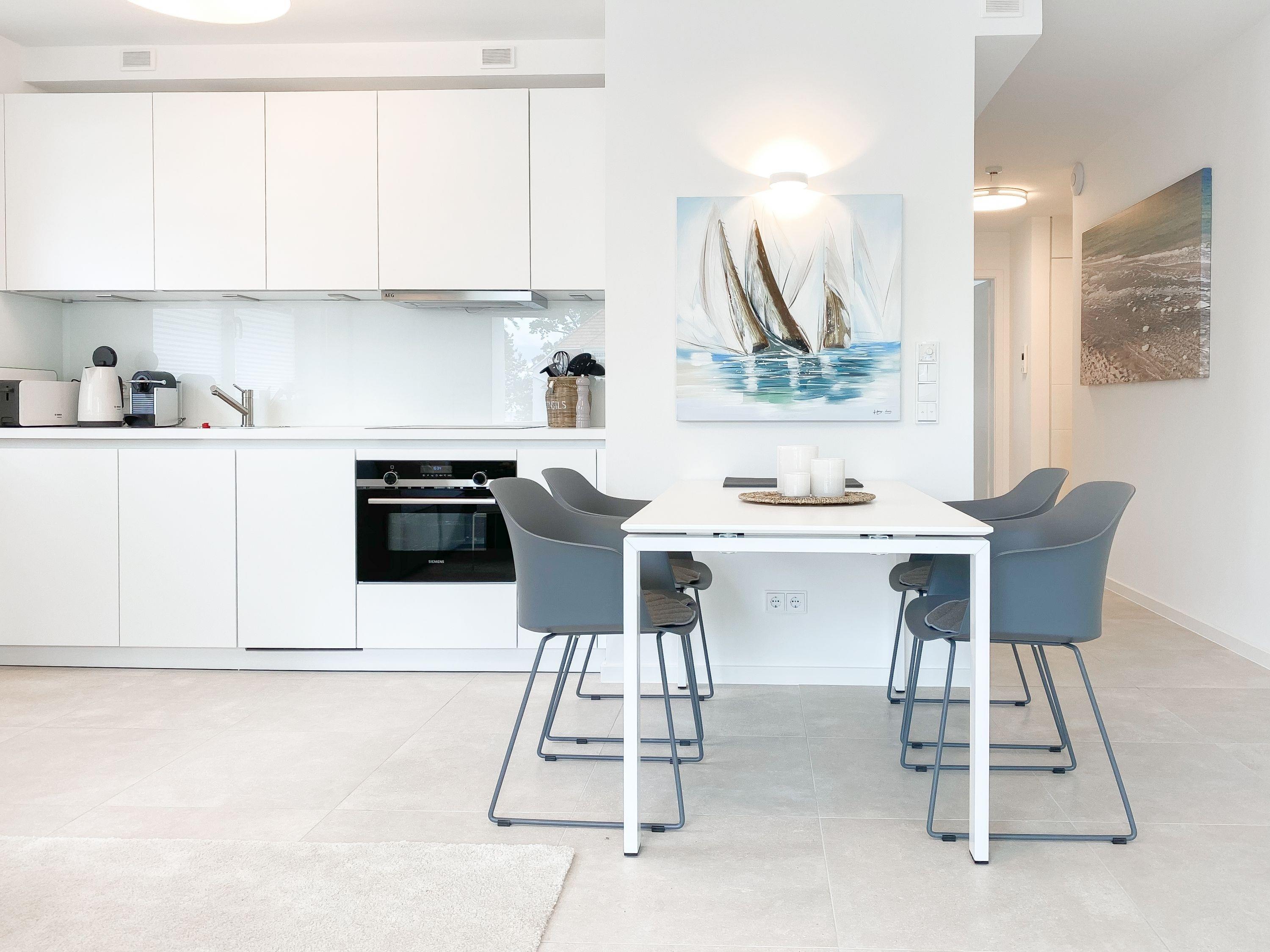 10 exklusive Wohnungen mit Balkonen und Terrassen zur Meerseite bieten traumhafte Ausblicke bis auf die Ostsee und jeglichen Komfort zur Gewährleistung eines hohen Wohnstandards in schönem Ambiente. Alle Wohnungen verfügen über moderne Bäder mit Walk In Duschen, Fußbodenheizung und elektrische Außenjalousien mit einstellbaren Lamellen, die gleichermaßen für Tageslicht und Privatsphäre sorgen.