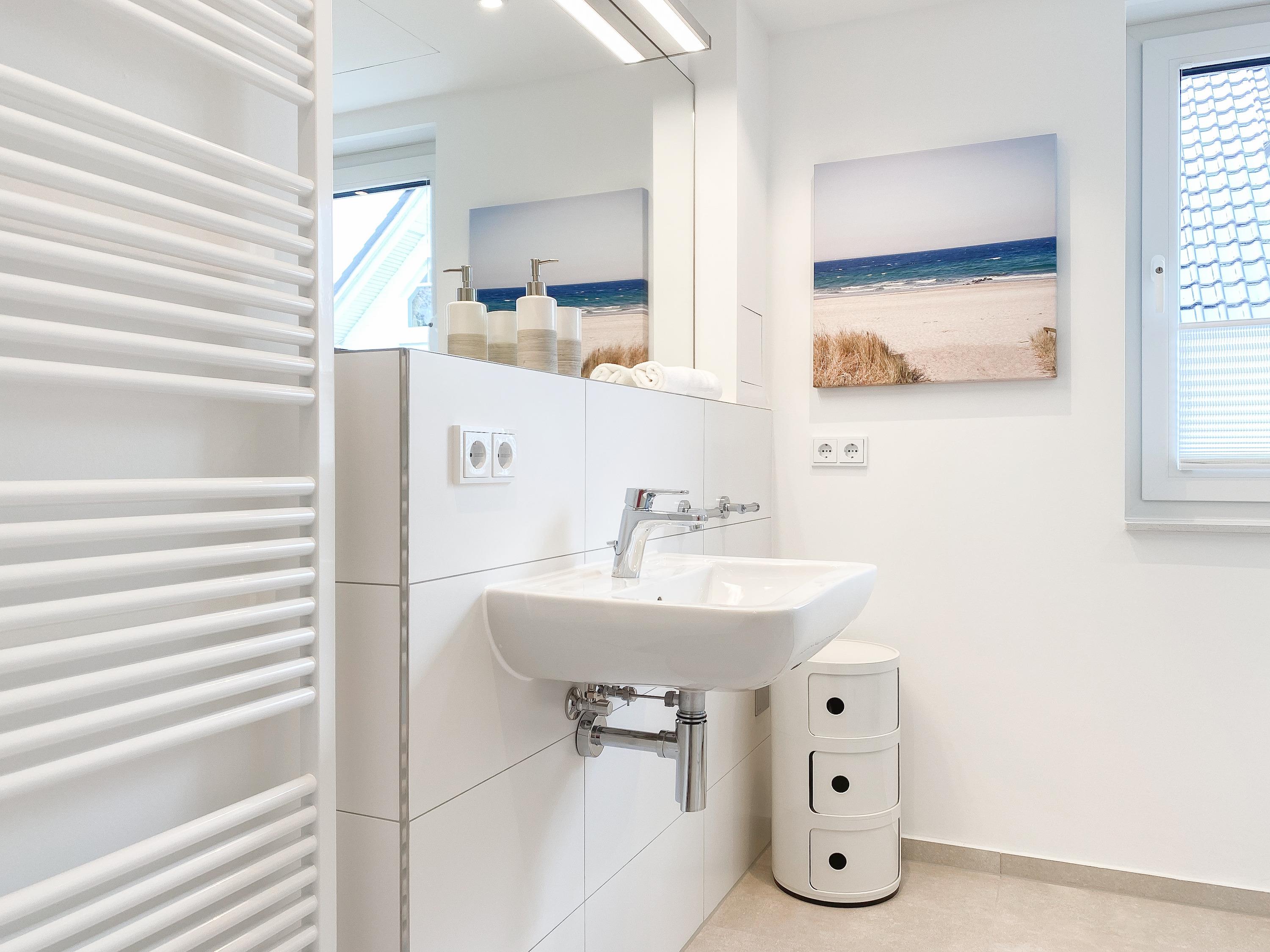 Die Ferienwohnung Wohnen am Strand 4 befindet sich im ersten Obergeschoss und bietet mit 2 Schlafzimmern, die mit Boxspringbetten (180x200 und 160x200) und TV ausgestattet sind sowie 2 Bädern mit bodengleichen Duschen, jeglichen Komfort für 4 Personen, um einen tollen Urlaub zu verleben. Der hochwertig eingerichtete Wohn- Essbereich[nbsp] bietet einen herrlichen Ausblick bis auf die Ostsee. Entspannen Sie auf Ihrem Balkon mit Teilmeerblick, Brandungsrauschen und frische Ostseeluft inklusive. Es stehen insgesamt 3 TV, Radio und WLAN zur Verfügung. Die Wohnung ist mit Fußbodenheizung ausgestattet und alle Fenster sind mit elektrischen Außenjalousien versehen, die gleichermaßen für Verdunkelung oder Tageslicht mit Privatsphäre sorgen.