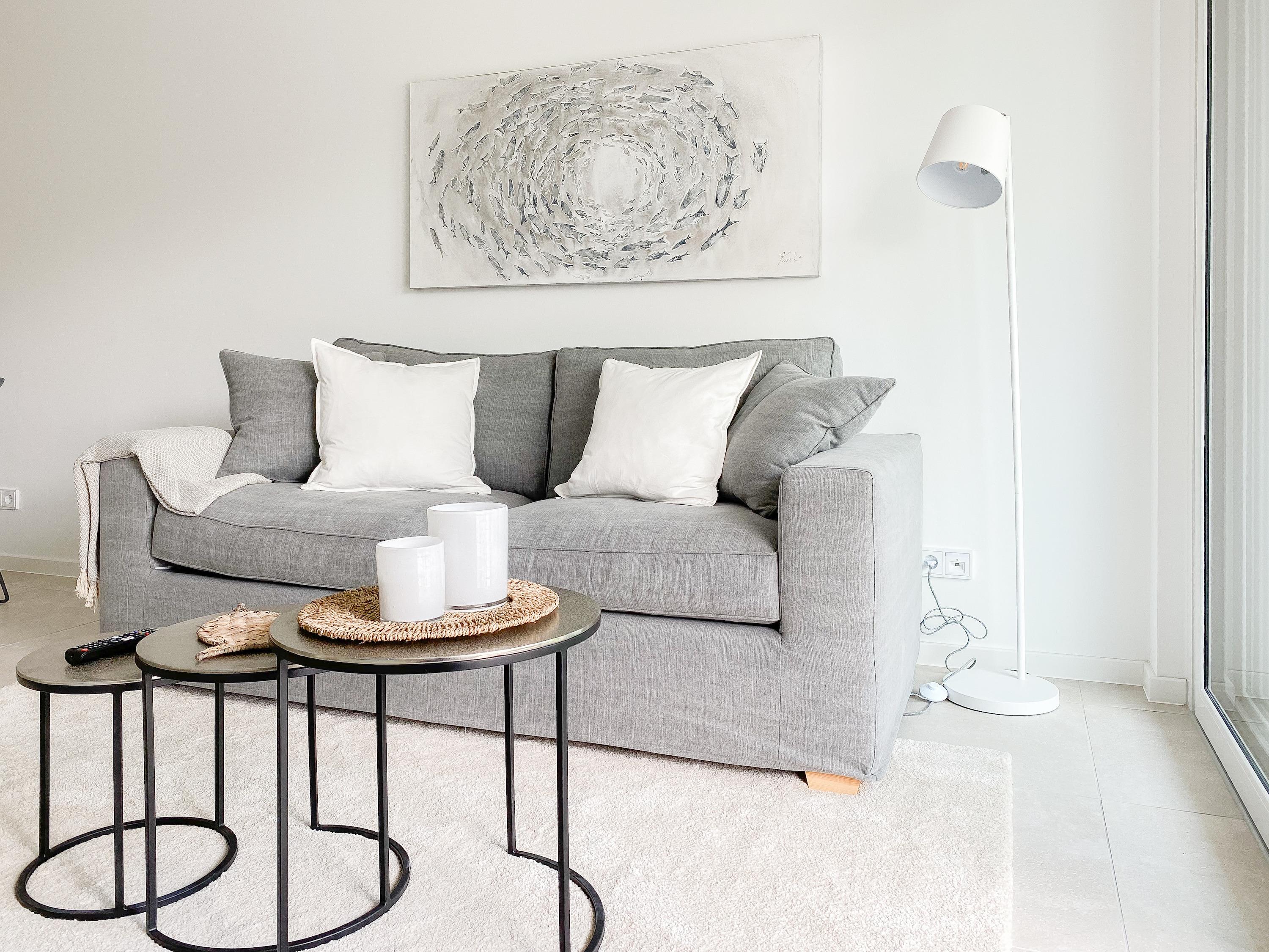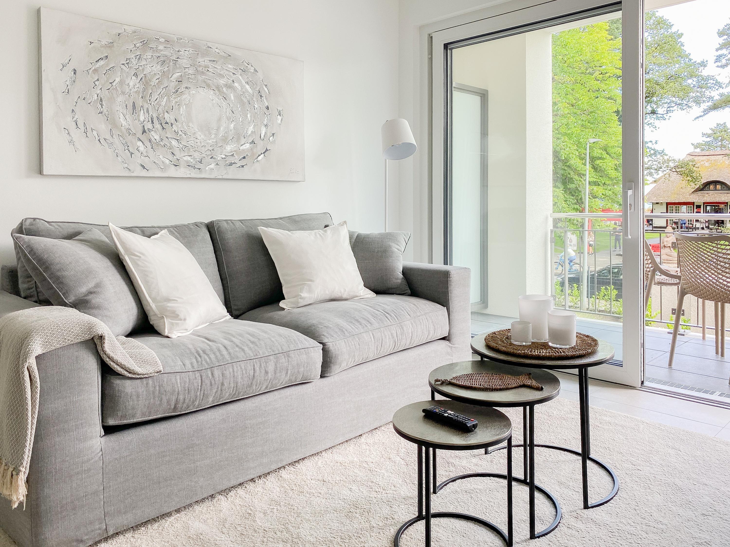 Die Ferienwohnung Wohnen am Strand 5 befindet sich im ersten Obergeschoss und bietet mit einem Schlafzimmer, ausgestattet mit einem Boxspringbett (180x200 )[nbsp][nbsp]und TV sowie einem bequemen Schlafsofa im Wohnbereich (140x185), [nbsp]jeglichen Komfort für 3 bis 4 [nbsp]Personen, um einen entspannten Urlaub zu verleben. Der hochwertig eingerichtete Wohn- Essbereich bietet einen herrlichen Ausblick bis auf die Ostsee. Entspannen Sie auf Ihrem Balkon, der sich über die gesamte Breite der Wohnung erstreckt, Teilmeerblick, Brandungsrauschen und frische Ostseeluft inklusive.[nbsp] Es stehen insgesamt 2 TV, Radio und WLAN zur Verfügung. Die Wohnung ist mit Fußbodenheizung ausgestattet und alle Fenster sind mit elektrischen Außenjalousien versehen, die gleichermaßen für Verdunkelung oder Tageslicht mit Privatsphäre sorgen. Zur Wohnung gehört ein fester Tiefgaragenstellplatz (Einfahrtshöhe 1,90 m). Das Haus verfügt über einen Fahrstuhl und einen Fahrradkeller. Waschmaschine und Trockner stehen kostenlos zur gemeinschaftlichen Nutzung[nbsp] zur Verfügung.