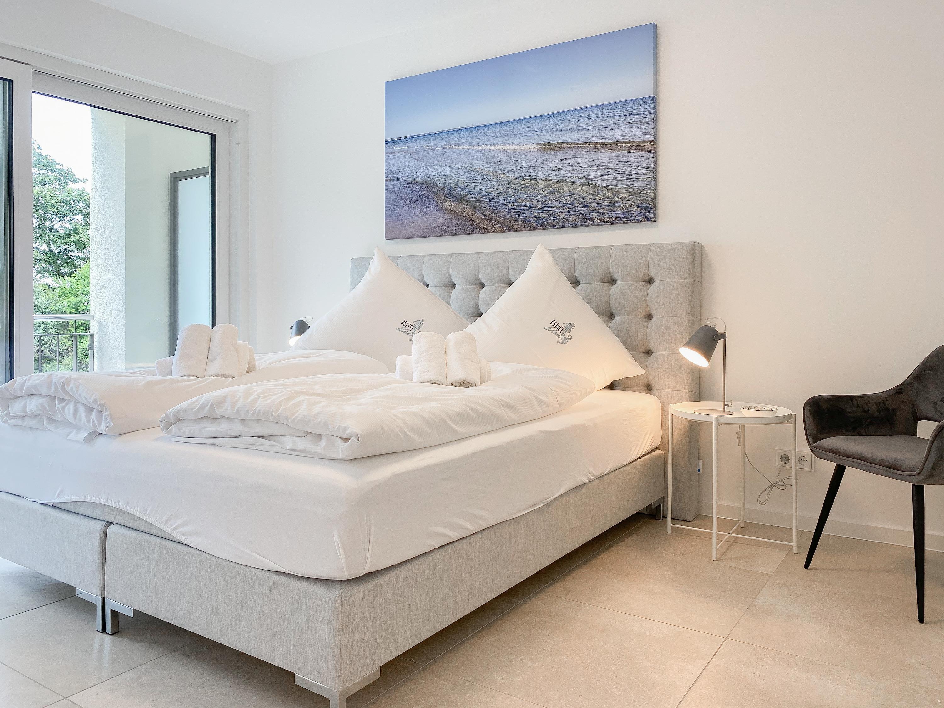 Zehn exklusive Wohnungen mit Balkonen und Terrassen zur Meerseite bieten traumhafte Ausblicke bis auf die Ostsee und jeglichen Komfort zur Gewährleistung eines hohen Wohnstandards in schönem Ambiente. Alle Wohnungen verfügen über moderne Bäder mit Walk In Duschen, Fußbodenheizung und elektrische Außenjalousien mit einstellbaren Lamellen, die gleichermaßen für Tageslicht und Privatsphäre sorgen.