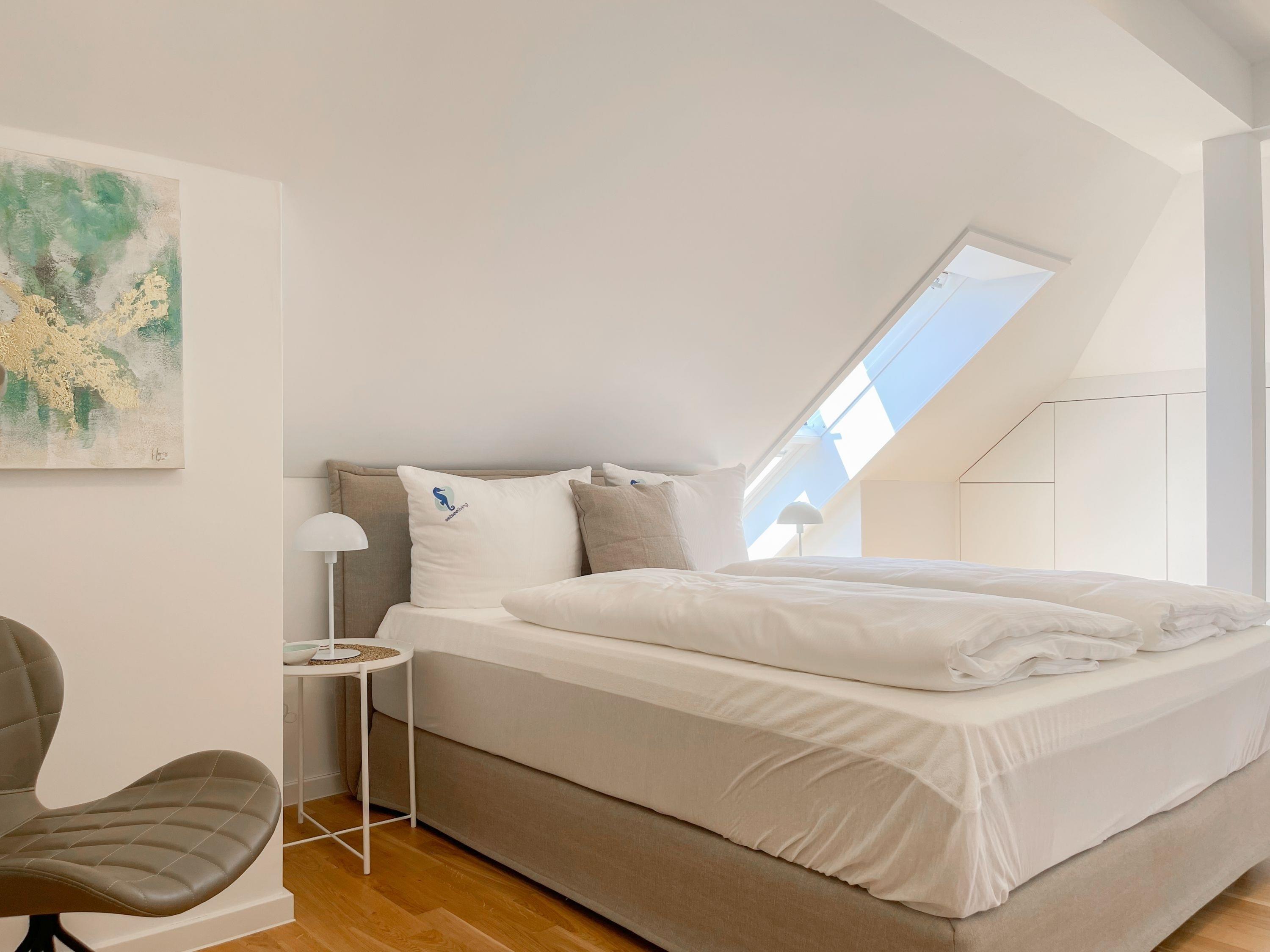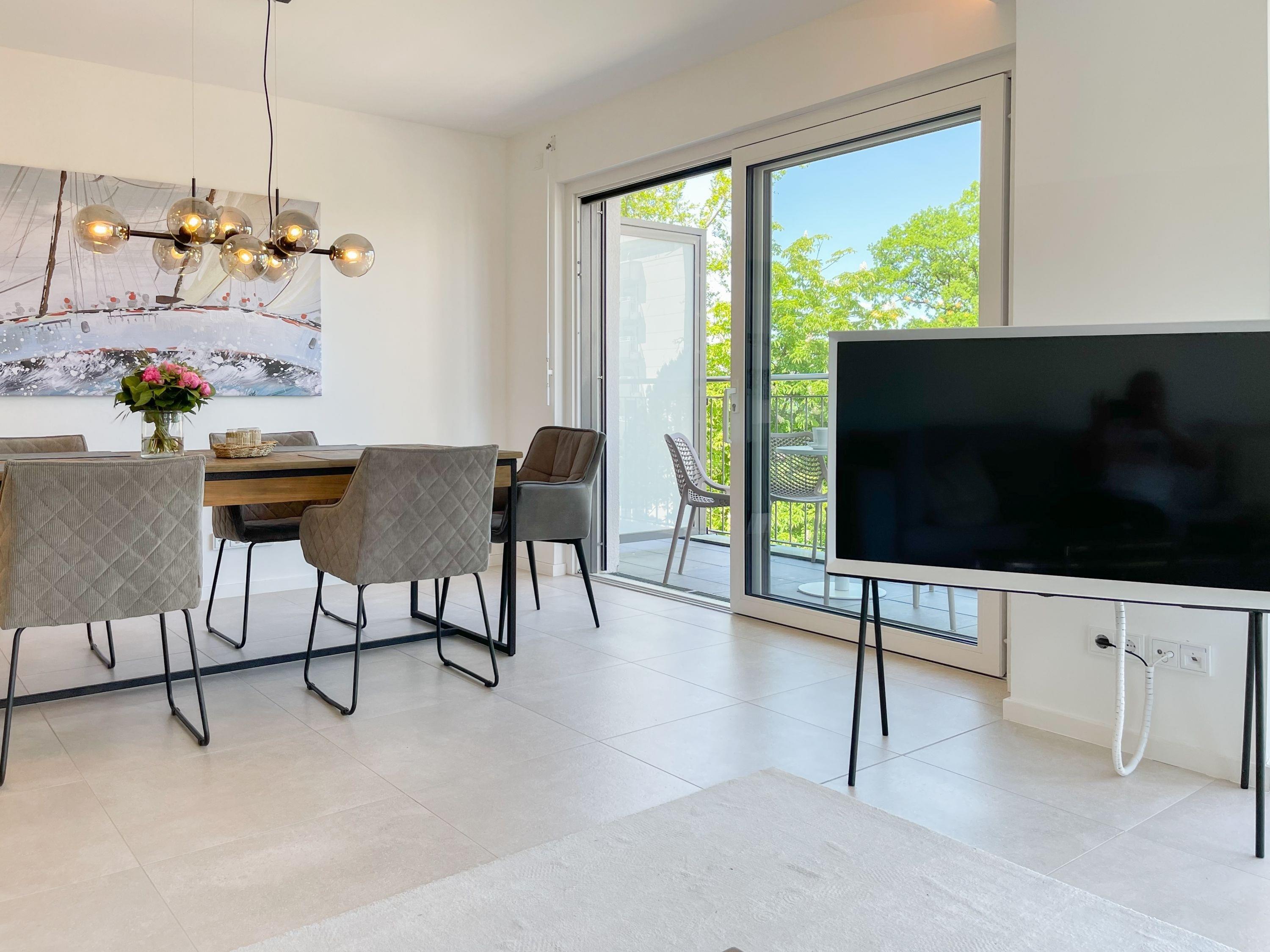 Elf exklusive Wohnungen mit Balkonen und Terrassen zur Meerseite bieten traumhafte Ausblicke bis auf die Ostsee und jeglichen Komfort zur Gewährleistung eines hohen Wohnstandards in schönem Ambiente. Alle Wohnungen verfügen über moderne Bäder mit Walk In Duschen, Fußbodenheizung und elektrische Außenjalousien mit einstellbaren Lamellen, die gleichermaßen für Tageslicht und Privatsphäre sorgen.