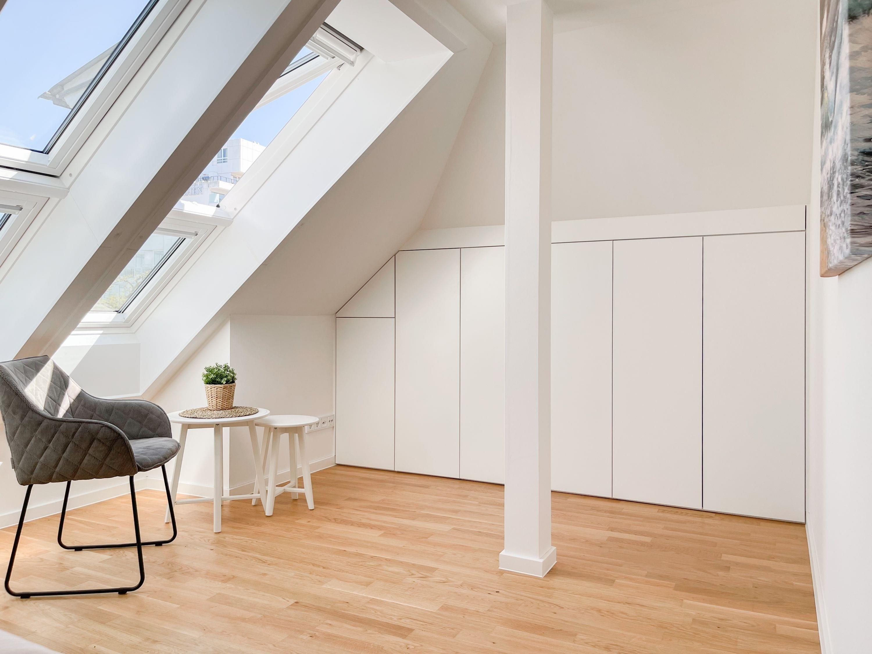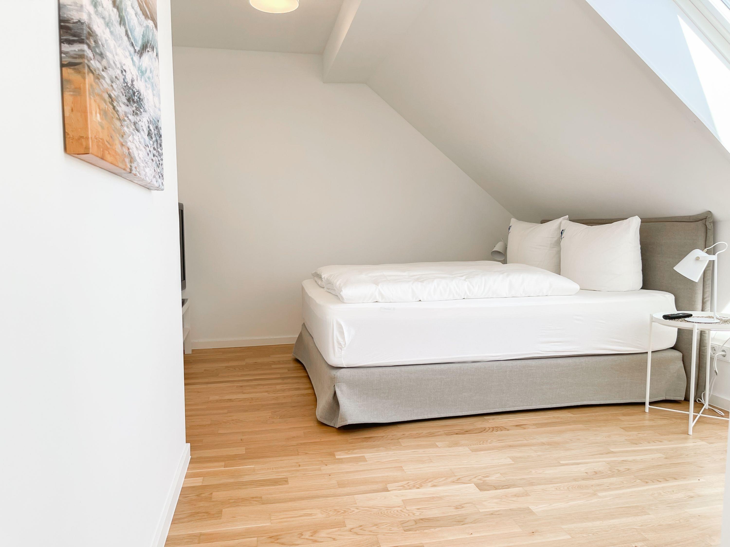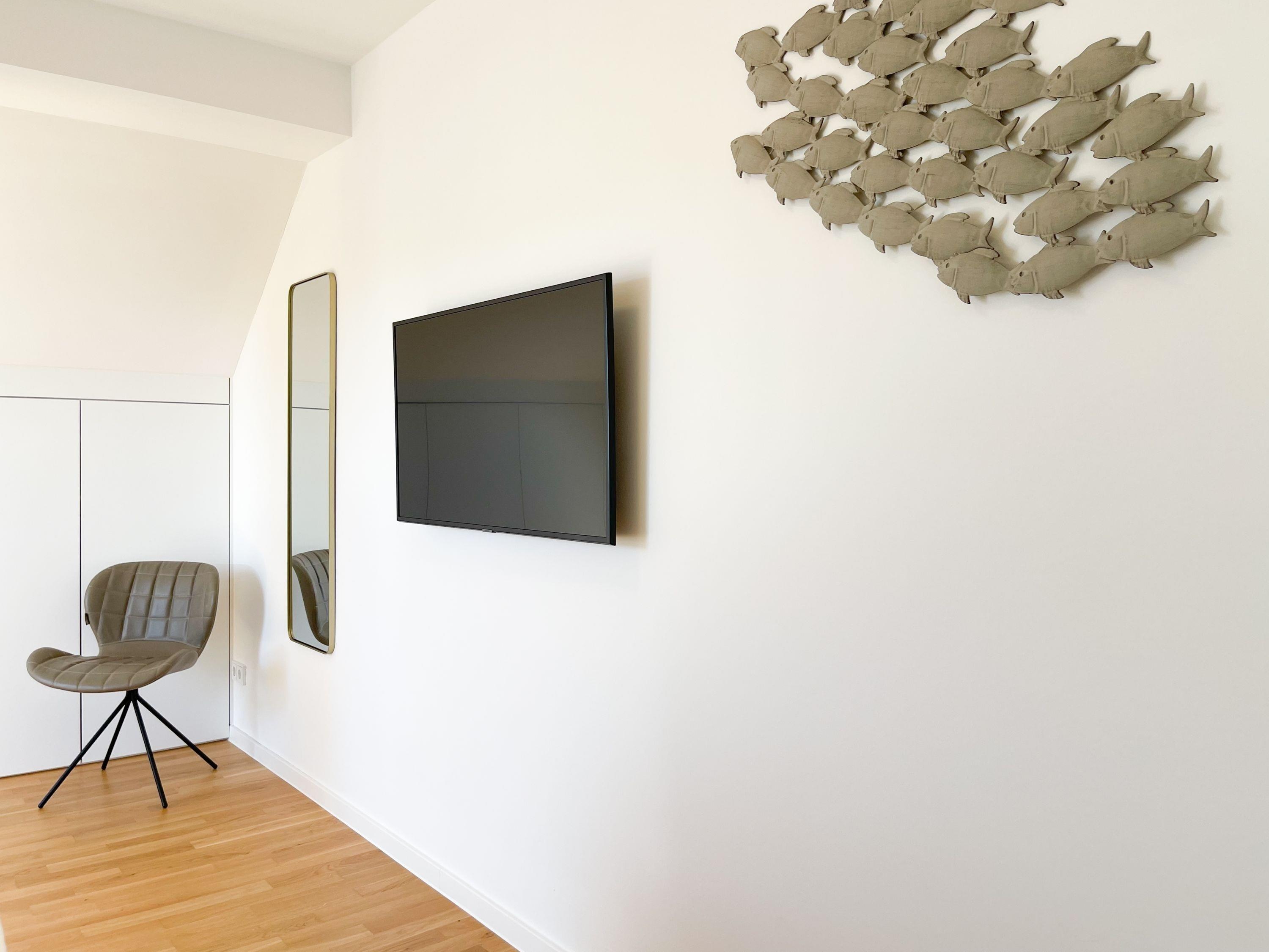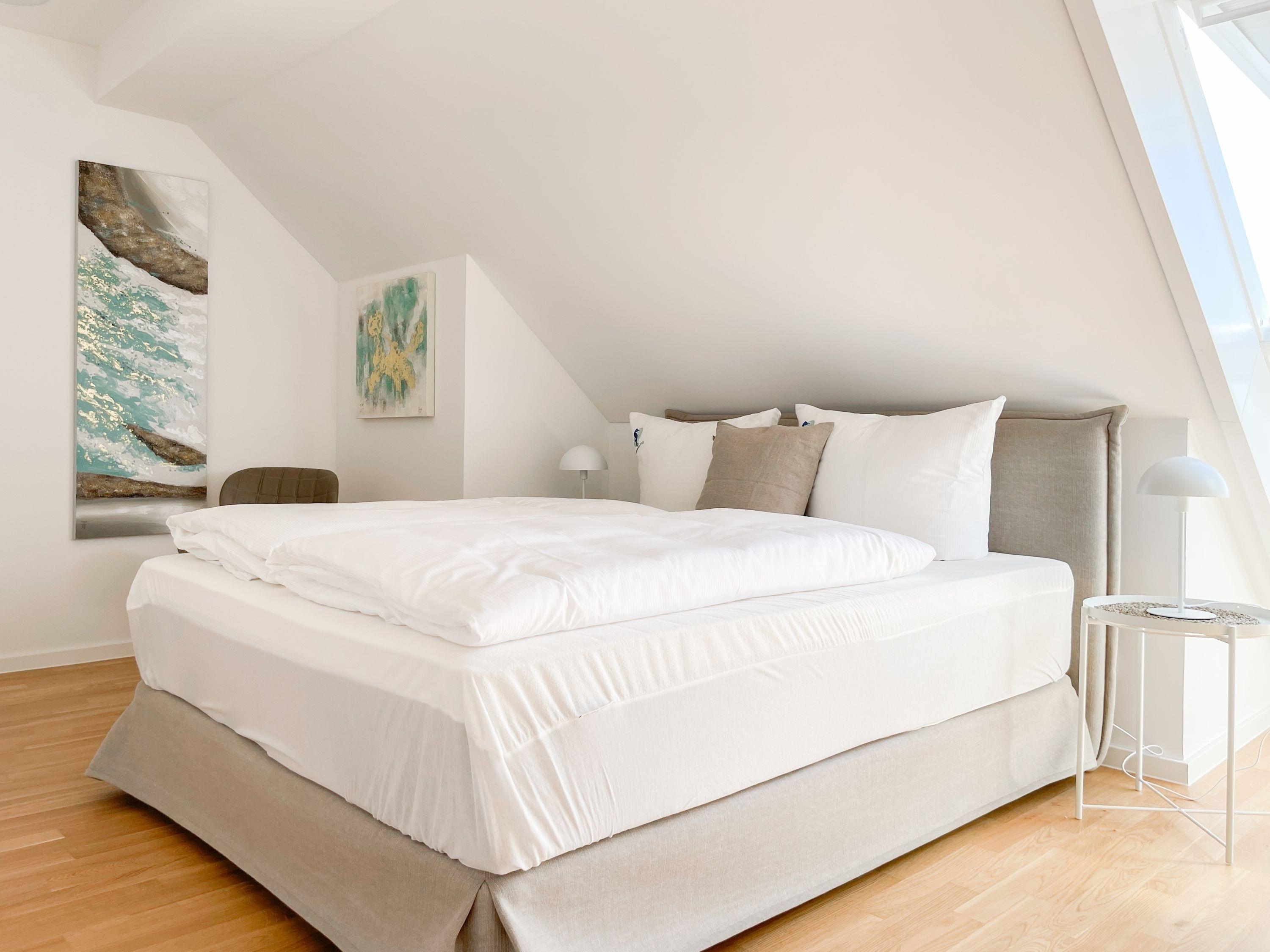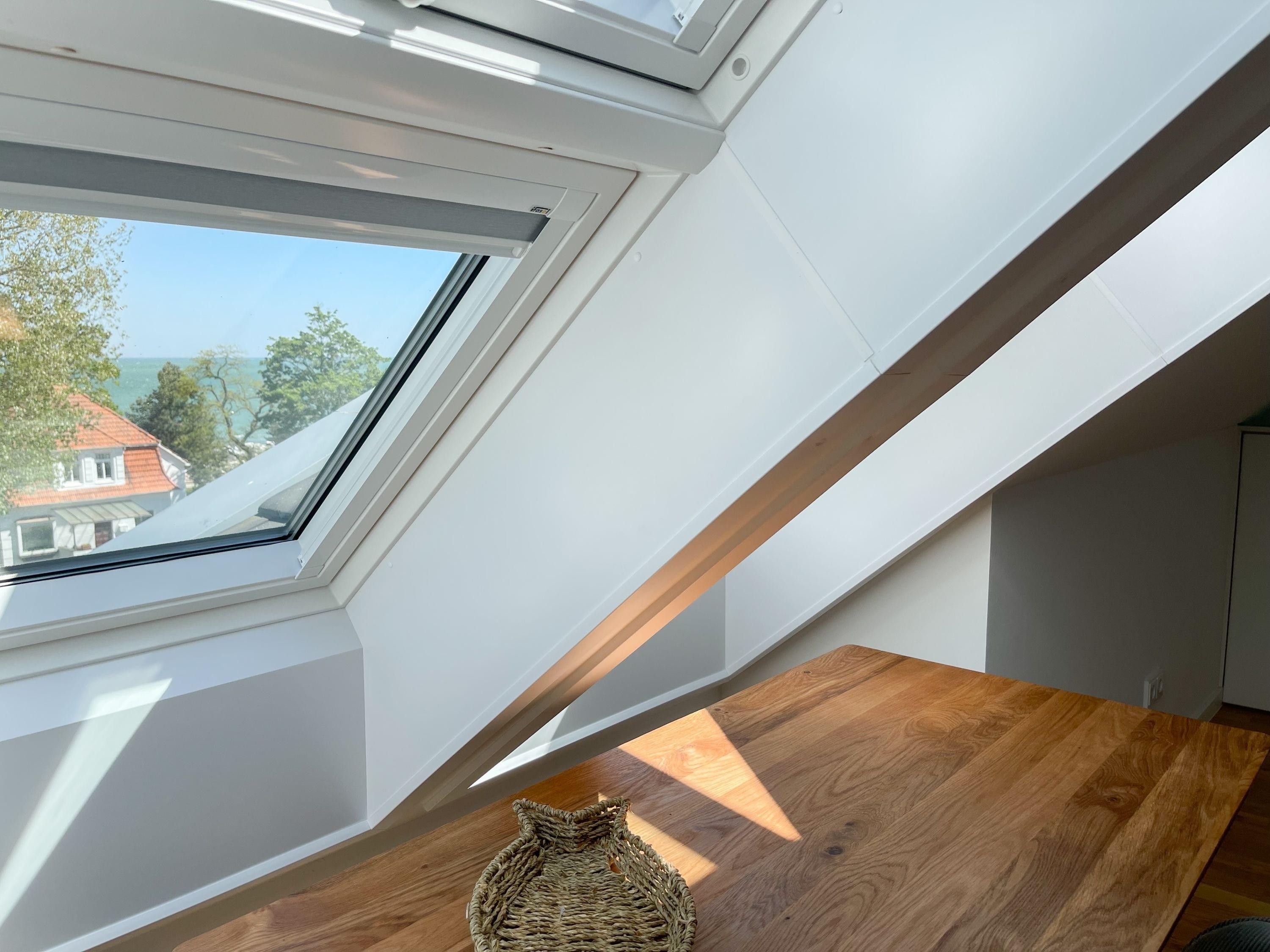 Das traumhafte Penthouse erstreckt sich über zwei großzügige Wohnebenen und bietet herrliche Ausblicke bis auf die Ostsee. Mit drei Schlafzimmern, zwei Bädern und einem separaten Gäste WC, ist es perfekt für sechs Personen geeignet, um einen entspannten Ostseeurlaub in absoluter Strandnähe zu verleben. Die[nbsp] geschmackvolle Einrichtung und hochwertige Ausstattung sorgt für höchsten Wohnstandard in bester Lage. Unten erwartet Sie ein lichtdurchfluteter Wohnbereich mit einem XL-Sofa; TV, Radio und WLAN sind selbstverständlich vorhanden. Die umlaufende Dachterrasse in Richtung Ost und Süd lockt mit traumhaftem Blick und frischer Seeluft ins Freie. Der großzügige Essbereich bietet ausreichend Raum für gemeinsame Mahlzeiten, Spieleabende oder gemütliches Beisammensein. Küche, Gäste WC und Bad 1 mit großer Walk In Dusche, Badewanne, Waschtisch[nbsp] Handtuchtrockner und Fenster befinden sich ebenfalls auf der unteren Wohnebene. Die Infrarotsauna, hervorragende Wirkung gegen Verspannungen und zur Entschlackung, befindet sich in einem hellen, abgeschlossen Raum, der über das Bad 1 zu erreichen ist. Auf der oberen Wohnebene gibt es drei Schlafzimmer, alle mit Boxspringbetten, Einbauschränken, Verdunkelungsplisses und TV eingerichtet sowie das 2. Bad, ebenfalls mit Walk In Dusche, Waschtisch und WC. In einem Schlafzimmer befindet sich zusätzlich ein Schreibtisch für das Homeoffice mit herrlichem Ostseeblick.