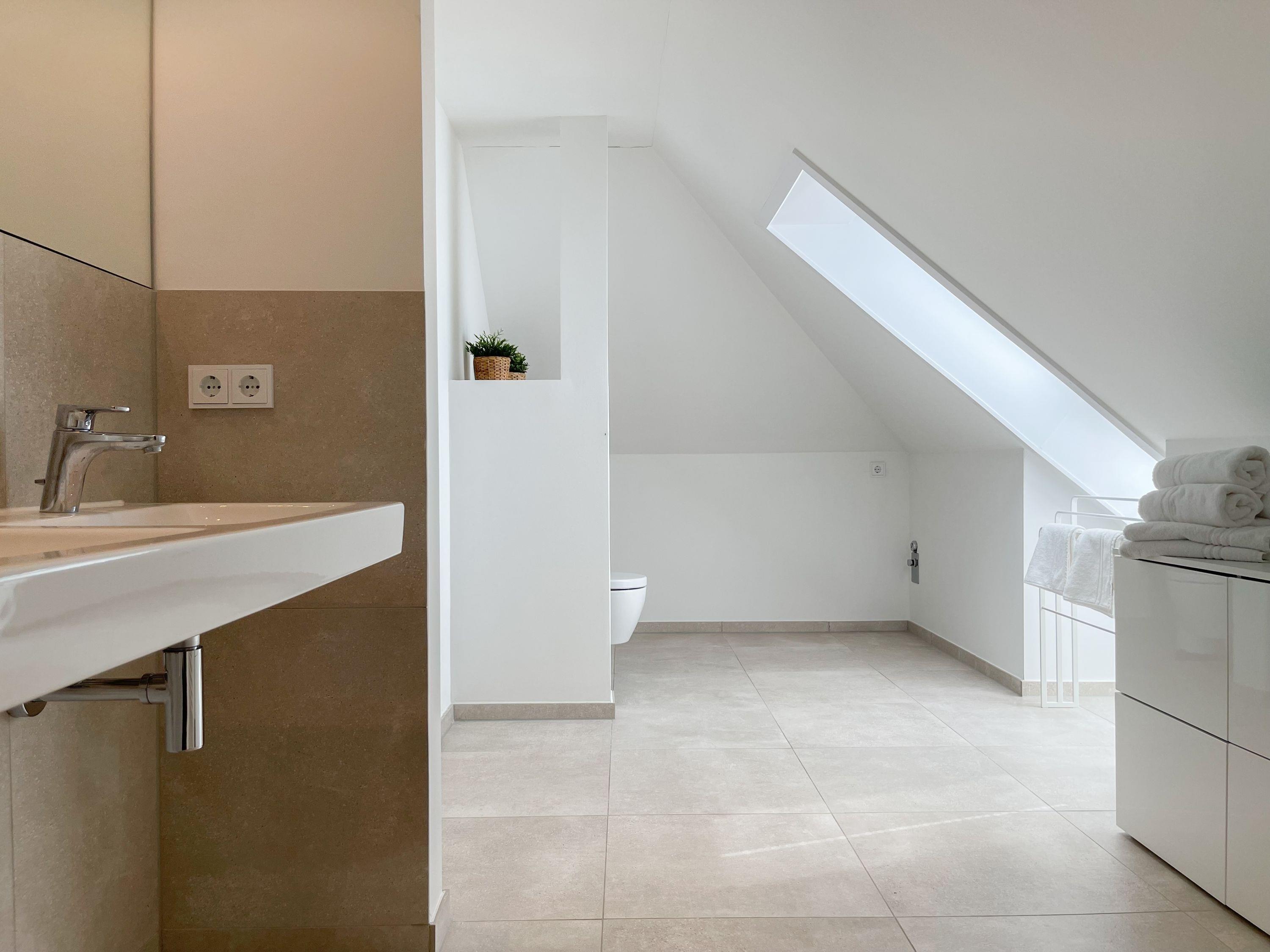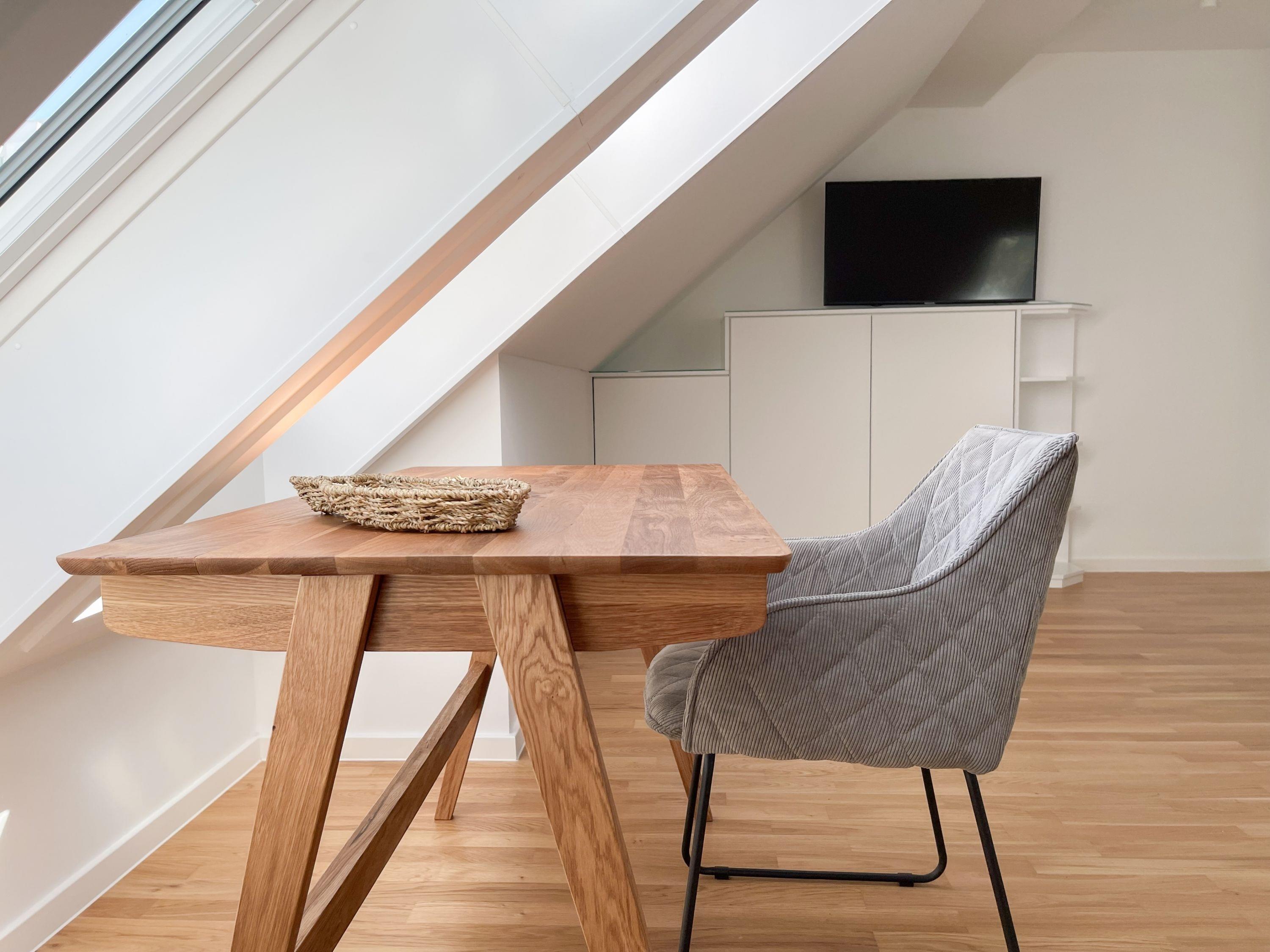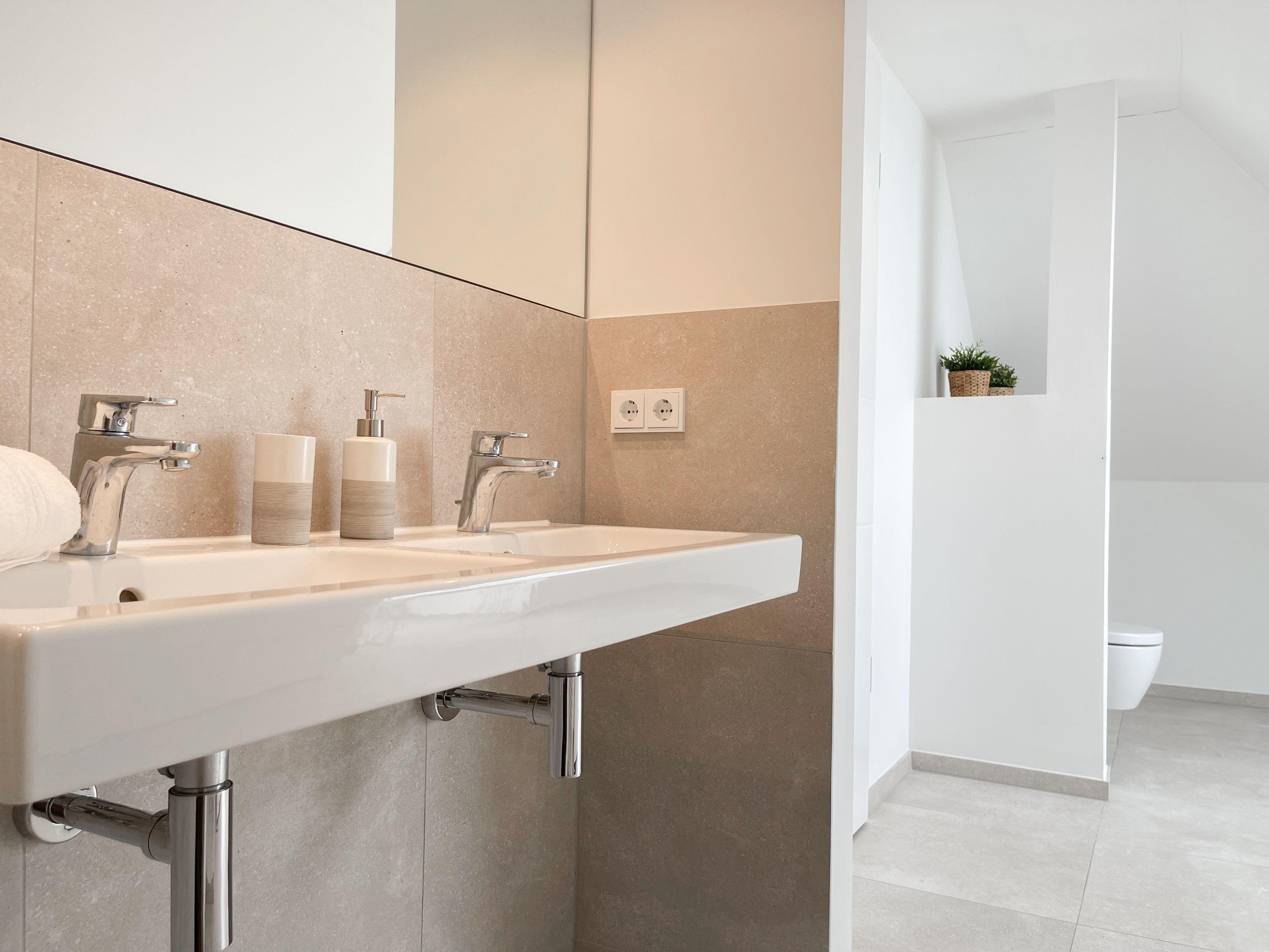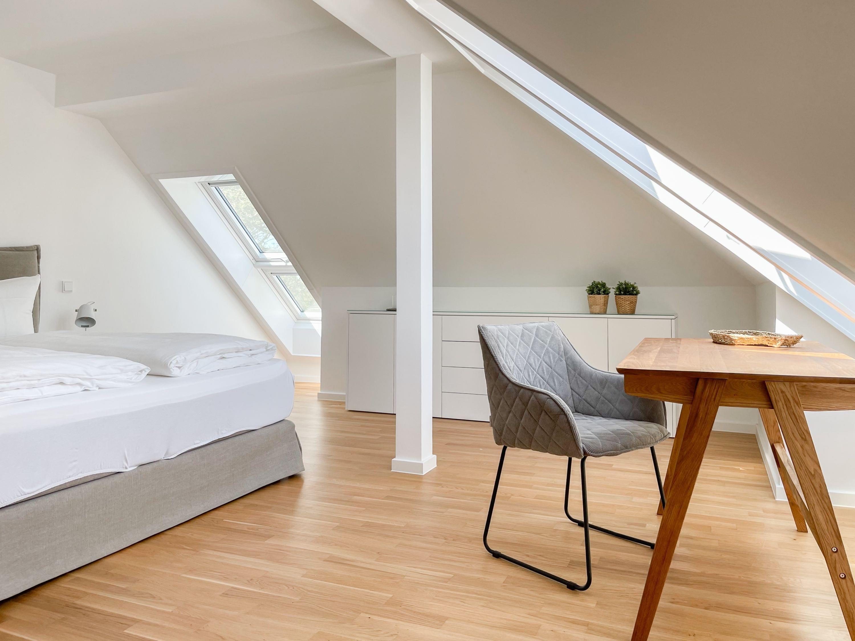 Das traumhafte Penthouse erstreckt sich über zwei großzügige Wohnebenen und bietet herrliche Ausblicke bis auf die Ostsee. Mit drei Schlafzimmern, zwei Bädern und einem separaten Gäste WC, ist es perfekt für sechs Personen geeignet, um einen entspannten Ostseeurlaub in absoluter Strandnähe zu verleben. Die[nbsp] geschmackvolle Einrichtung und hochwertige Ausstattung sorgt für höchsten Wohnstandard in bester Lage. Unten erwartet Sie ein lichtdurchfluteter Wohnbereich mit einem XL-Sofa; TV, Radio und WLAN sind selbstverständlich vorhanden. Die umlaufende Dachterrasse in Richtung Ost und Süd lockt mit traumhaftem Blick und frischer Seeluft ins Freie. Der großzügige Essbereich bietet ausreichend Raum für gemeinsame Mahlzeiten, Spieleabende oder gemütliches Beisammensein. Küche, Gäste WC und Bad 1 mit großer Walk In Dusche, Badewanne, Waschtisch[nbsp] Handtuchtrockner und Fenster befinden sich ebenfalls auf der unteren Wohnebene. Die Infrarotsauna, hervorragende Wirkung gegen Verspannungen und zur Entschlackung, befindet sich in einem hellen, abgeschlossen Raum, der über das Bad 1 zu erreichen ist. Auf der oberen Wohnebene gibt es drei Schlafzimmer, alle mit Boxspringbetten, Einbauschränken, Verdunkelungsplisses und TV eingerichtet sowie das 2. Bad, ebenfalls mit Walk In Dusche, Waschtisch und WC. In einem Schlafzimmer befindet sich zusätzlich ein Schreibtisch für das Homeoffice mit herrlichem Ostseeblick.