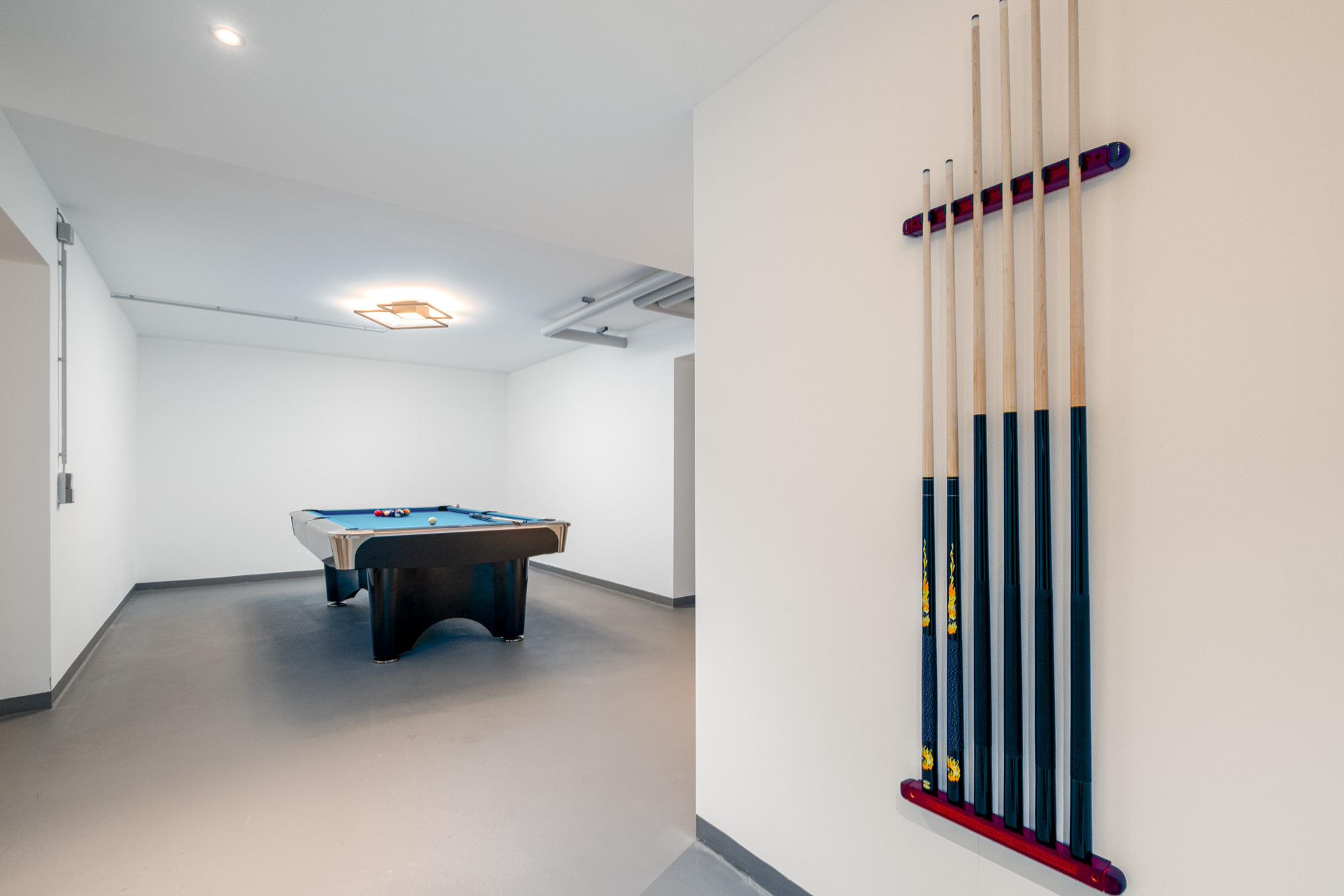 Im Gemeinschaftskeller der Appartementanlage befindet sich ein Fitnessraum, welcher mit einem Stepper, einem Rudergerät und einem Heimtrainer-Fahrrad ausgestattet ist. In zwei weiteren separaten Räumen befinden sich einmal ein Billardtisch sowie eine Dartscheibe. Darüber hinaus befinden[nbsp][nbsp]sich im Keller eine Sauna sowie eine Dusche zur gemeinschaftlichen Nutzung in der Anlage.