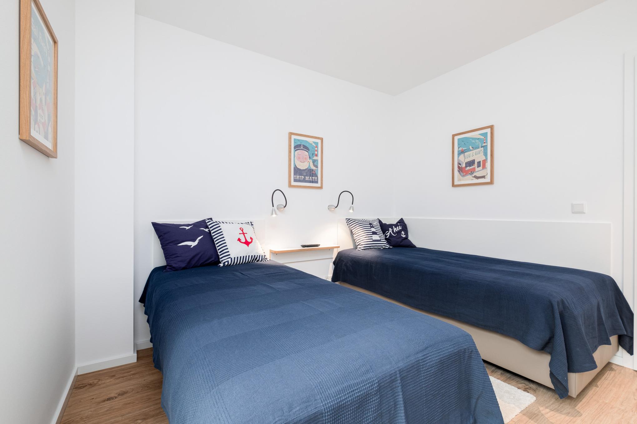 Das Schlafzimmer I bietet Ihnen mit einem hochwertigen Boxspringbett (180x200cm) sowie einem zusätzlichen 2. TV mit Smartfunktion eine Ruheoase für erholsame Stunden. Im Schlafzimmer II erwarten Sie zwei komfortable Einzelbetten (je 90x200cm) sowie ein 3. TV mit Smartfunktion. In beiden Schlafräumen haben Sie die Möglichkeit Ihr Gepäck in entsprechenden Kleiderschränken zu verstauen.