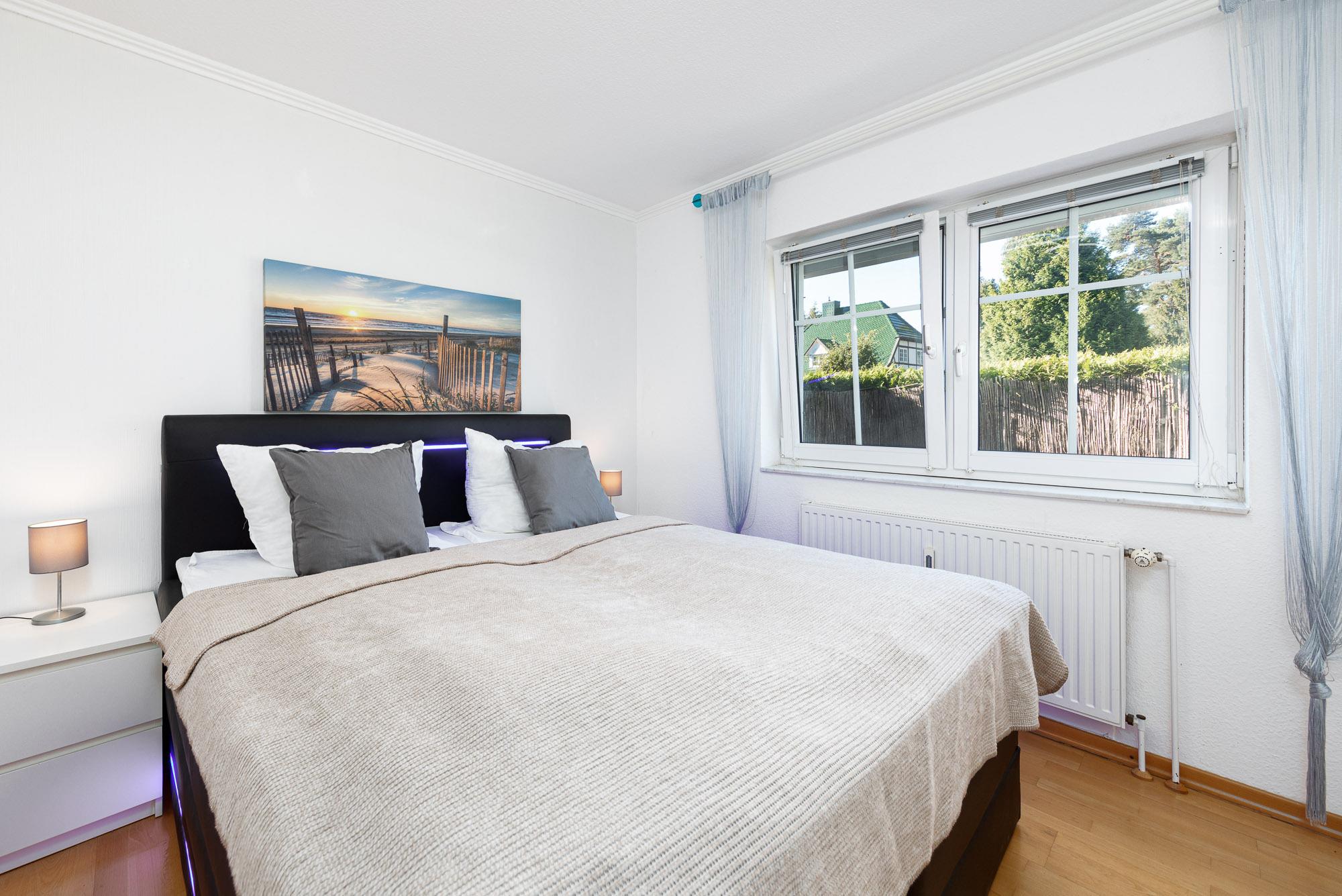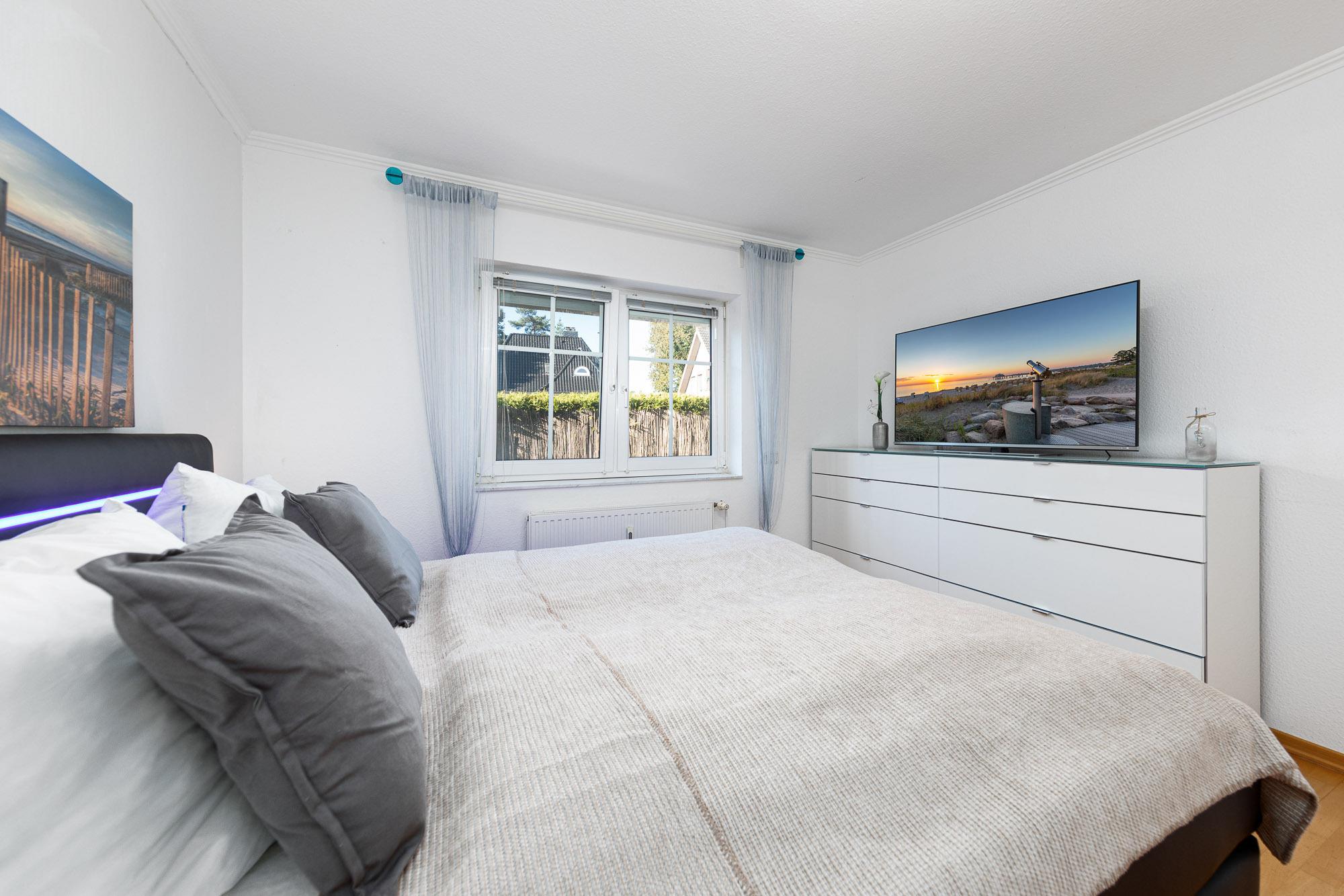 Im separaten Schlafzimmer erwartet Sie ein großzügiges Schlafzimmer mit Doppelbett (180x200cm, durchgängig) mit zweitem TV.