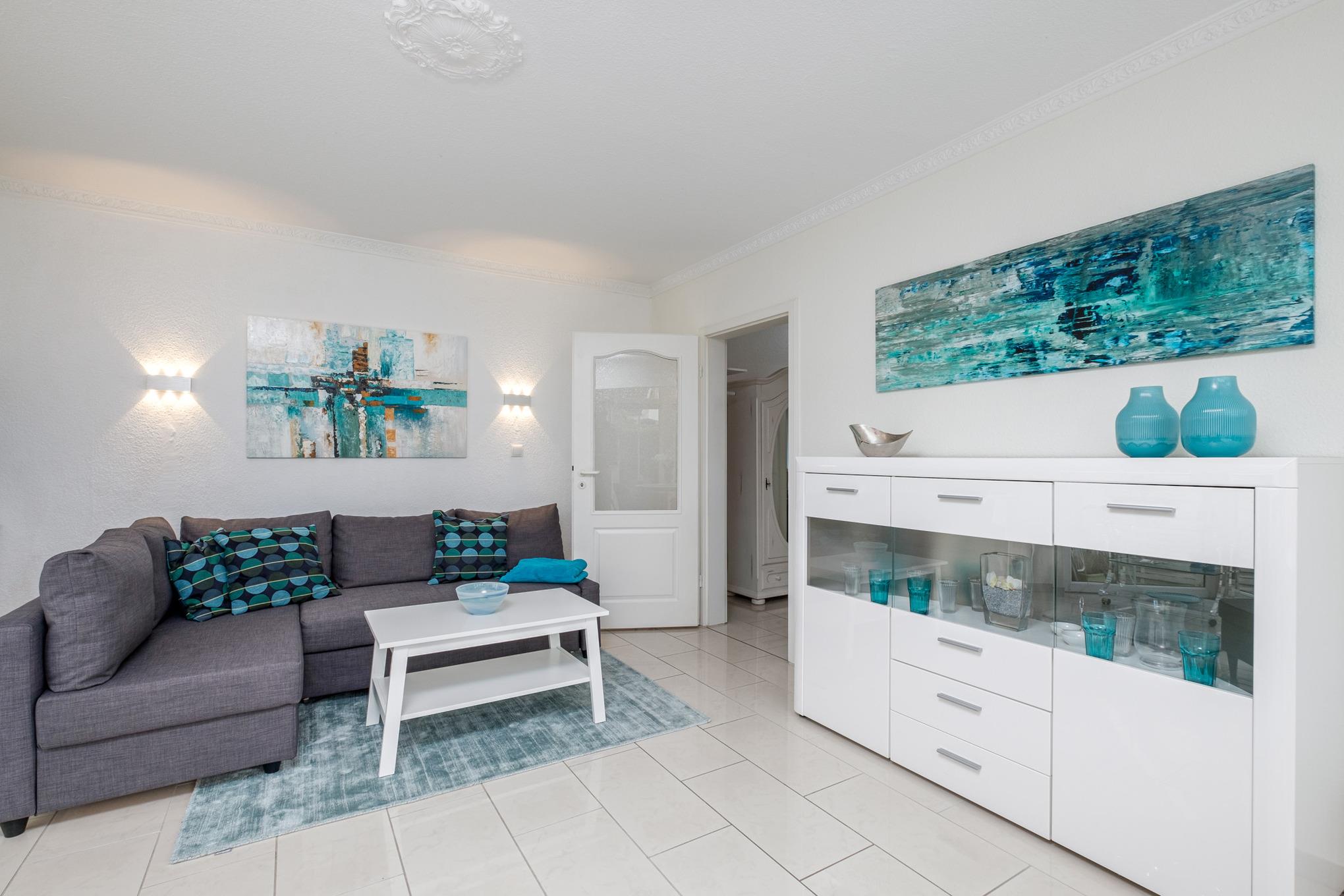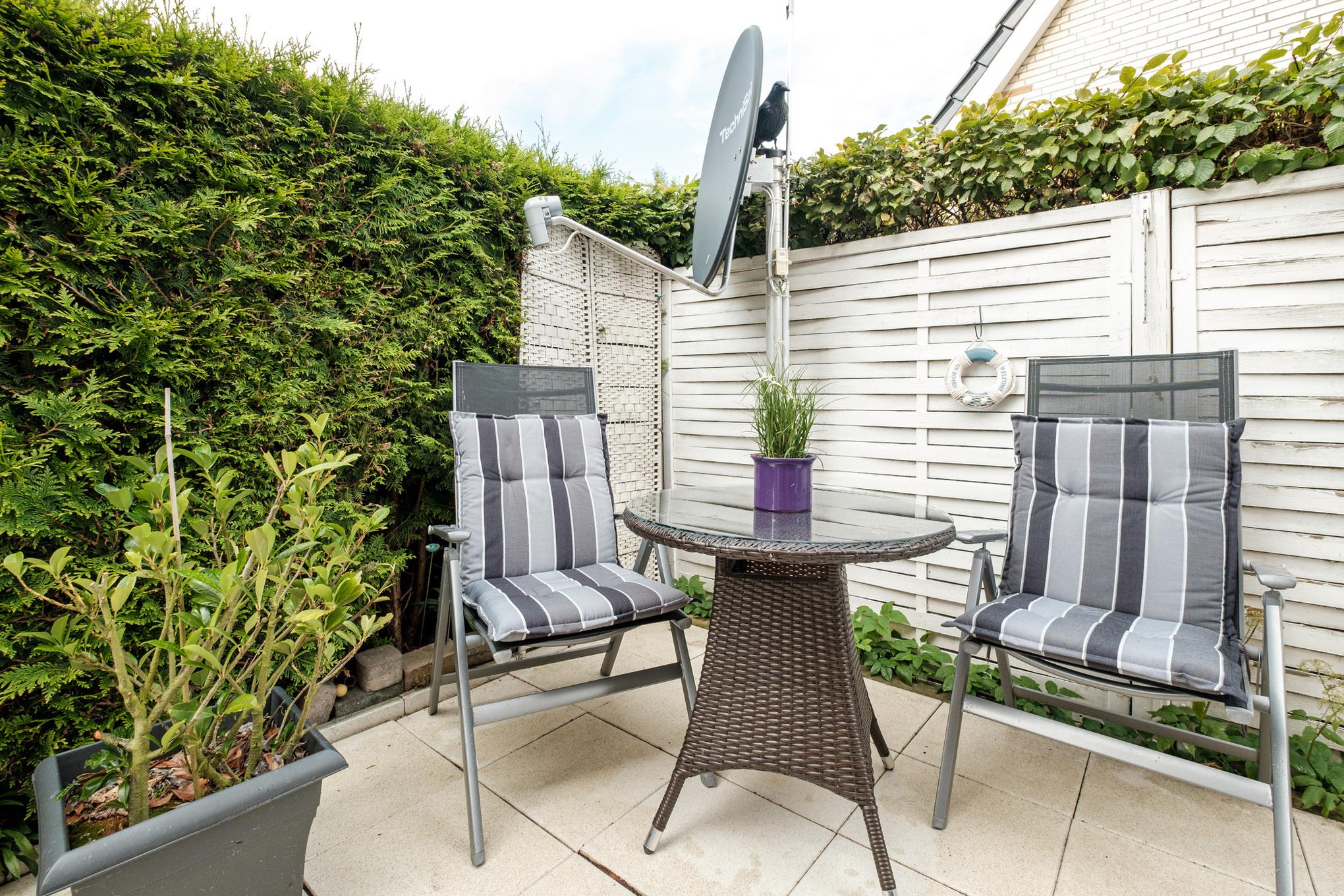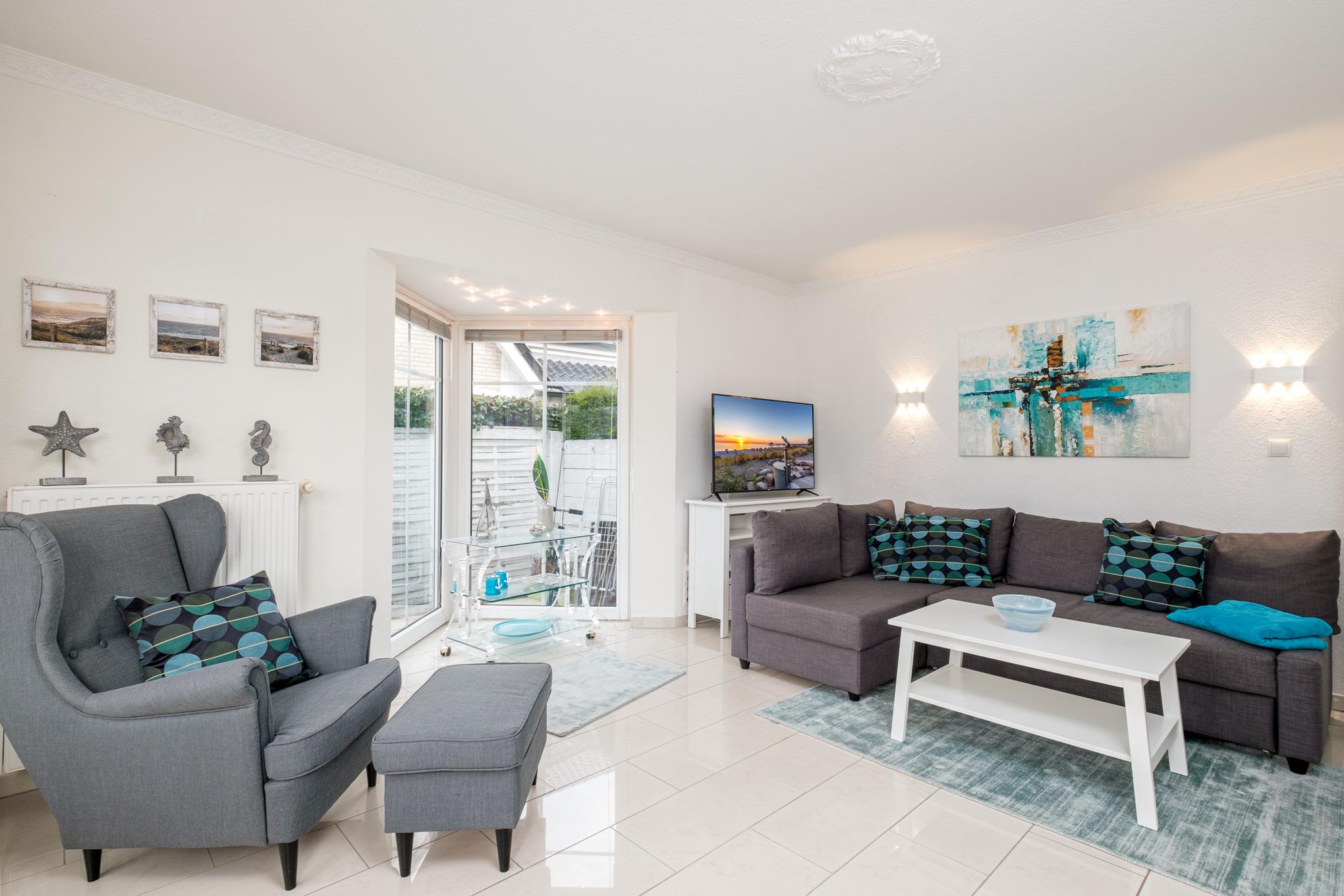 Ausgestattet für 4 Personen verfügt diese Timmendorfer Strand Ferienwohnung im Erdgeschoss über ein Wohnzimmer mit Couchgarnitur inklusive Schlaffunktion, Flachbild-TV und Eckterrasse in Richtung Süd/Süd-West. Die Terrasse ist komplett eingezäunt, so dass Sie Ihren Vierbeiner ohne Bedenken frei laufen lassen können.