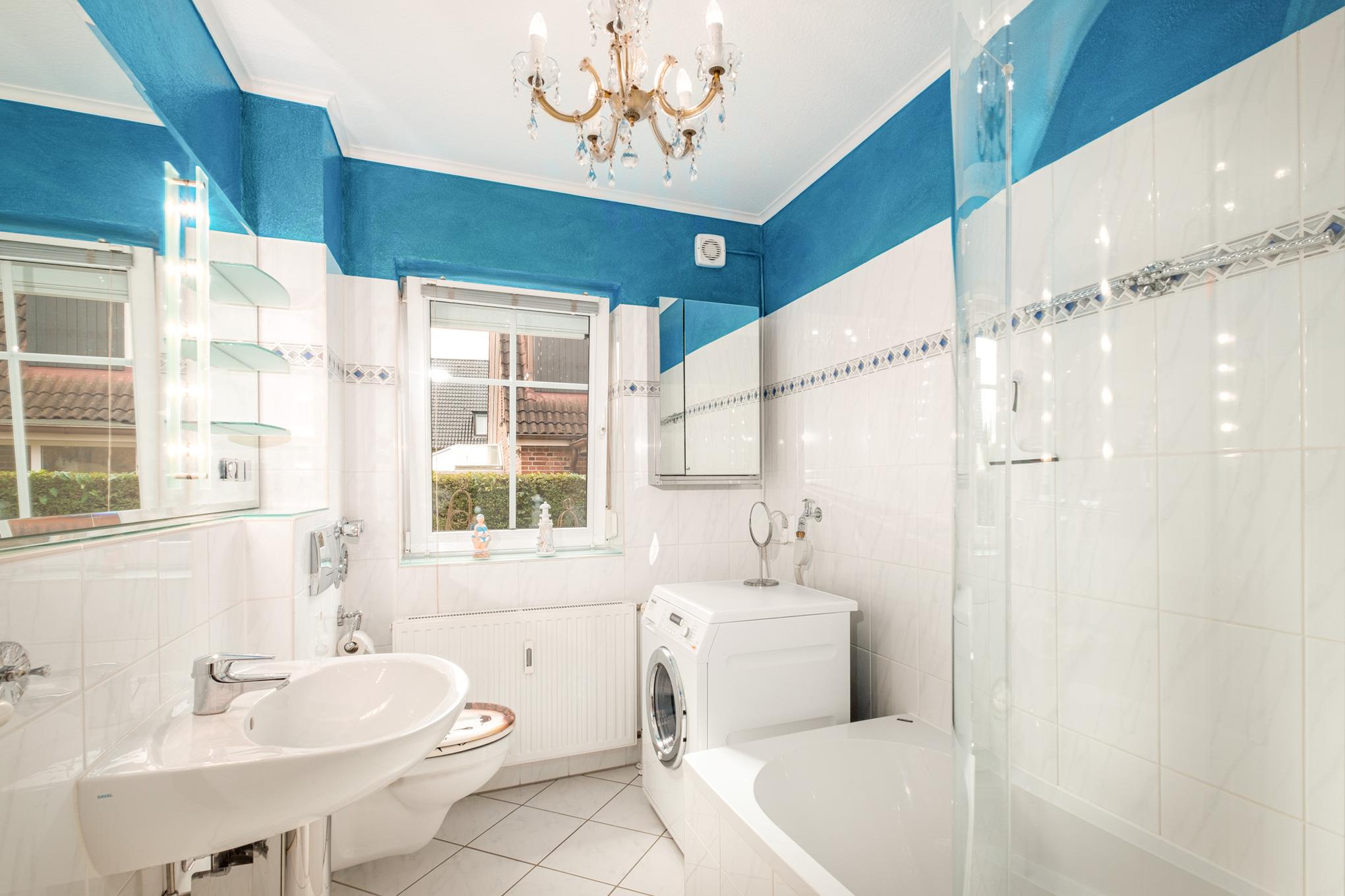 Ein modernes Badezimmer mit WC sowie Badewanne mit Duschfunktion steht zur Verfügung.