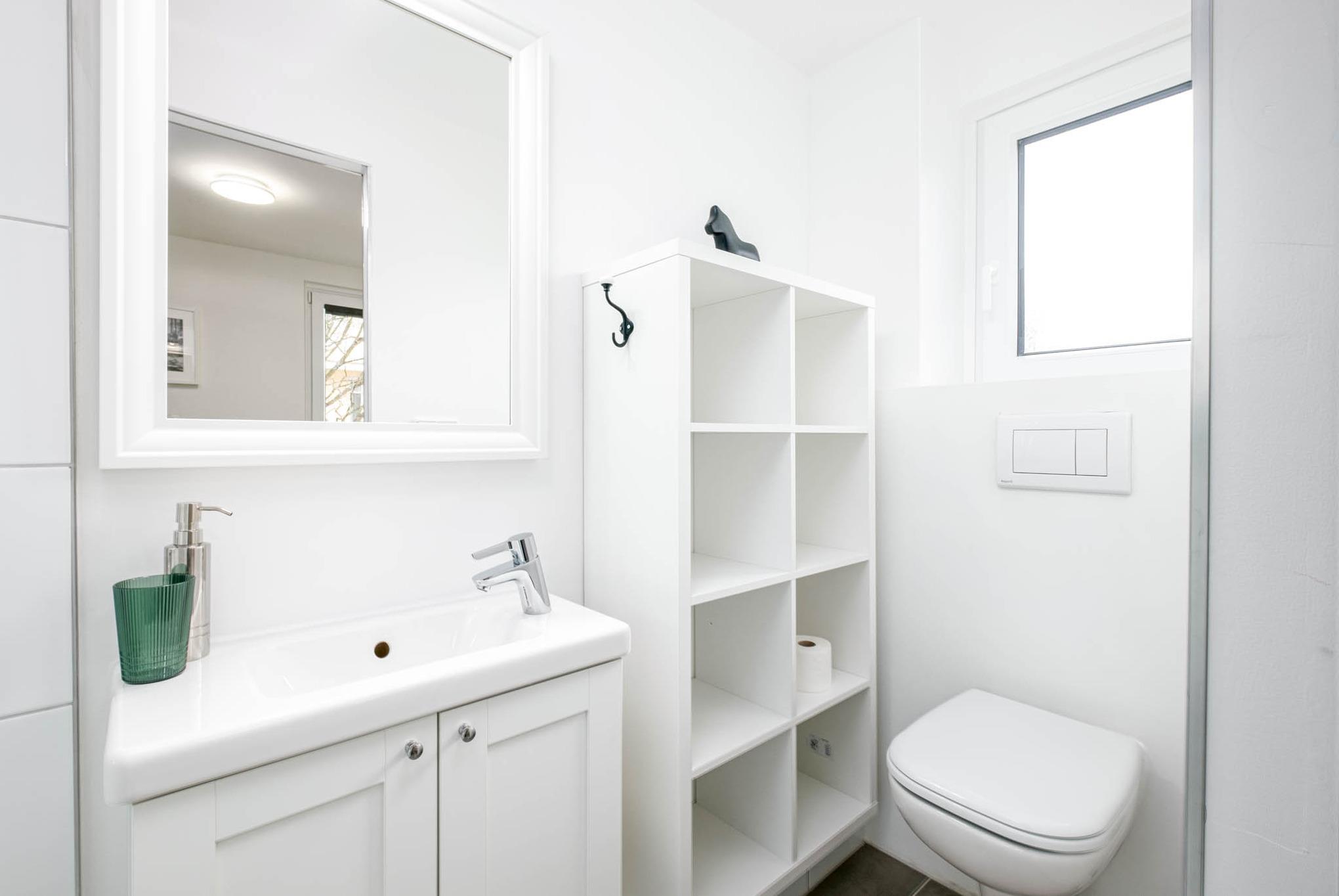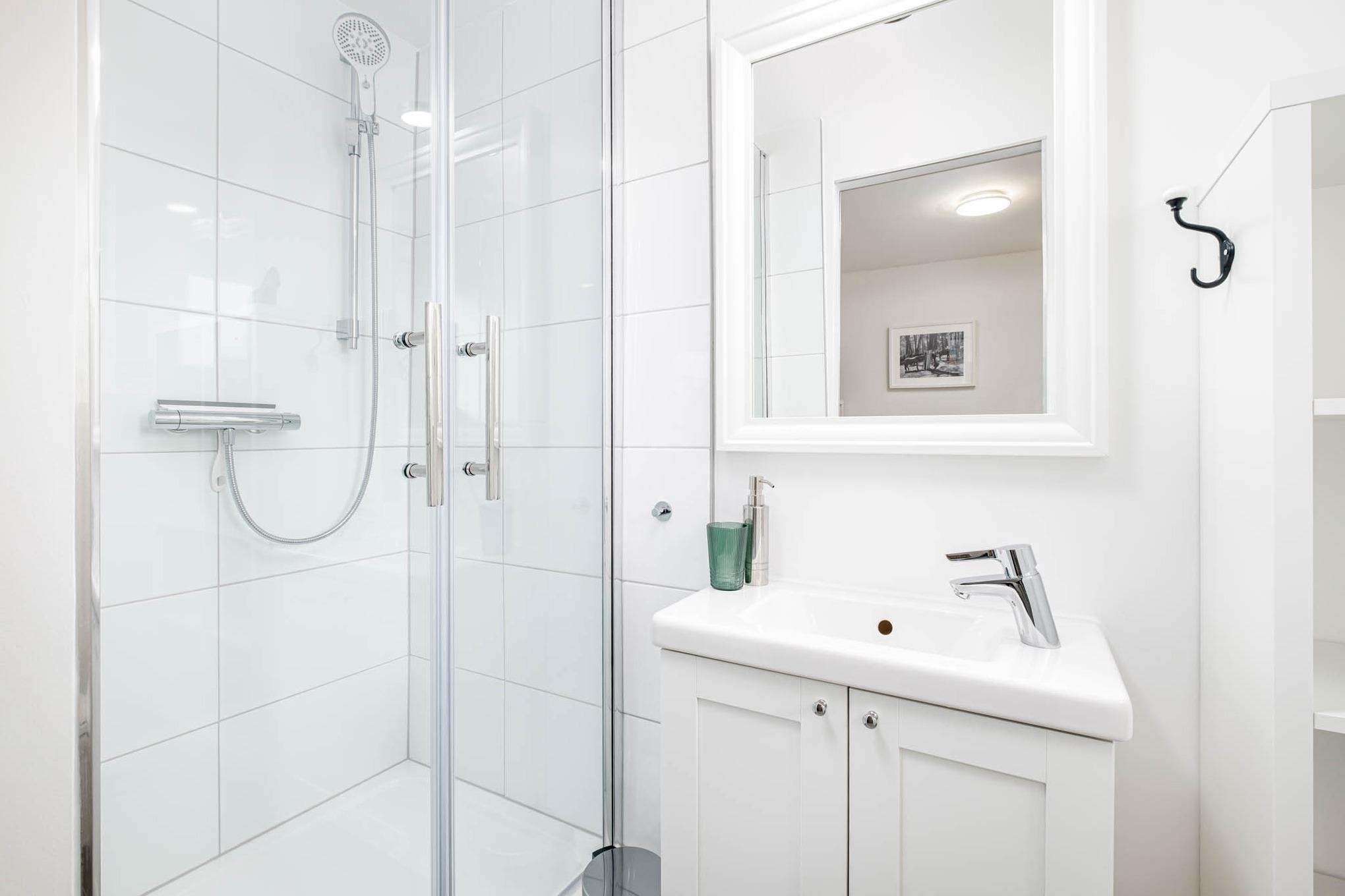 Im direkt anschließenden Badezimmer spülen Sie in der ebenerdigen Dusche den Alltagsstress von Ihren Schultern.
