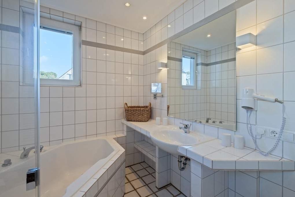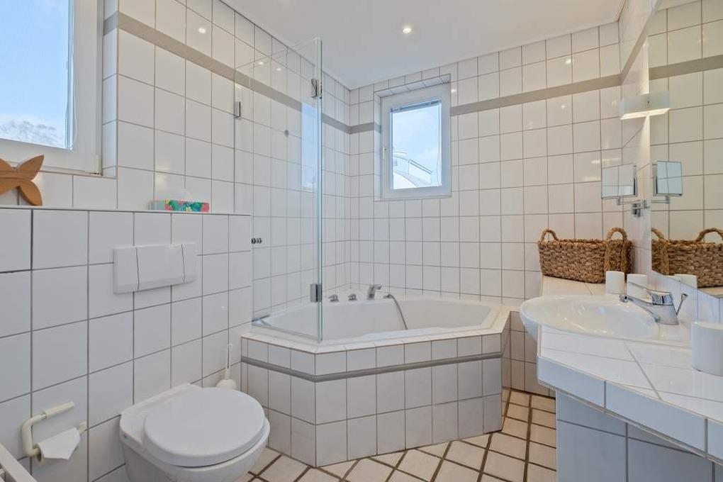 Das separate Schlafzimmer I sowie das Schlafzimmer II sind großzügig geschnitten und verfügen je über ein Doppelbett (160x200cm). Im Badezimmer dieser Ferienunterkunft können Sie in einer Eckbadewanne mit integrierter Duschvorrichtung entspannen und auch in der kalten Jahreszeit abschalten und relaxen.