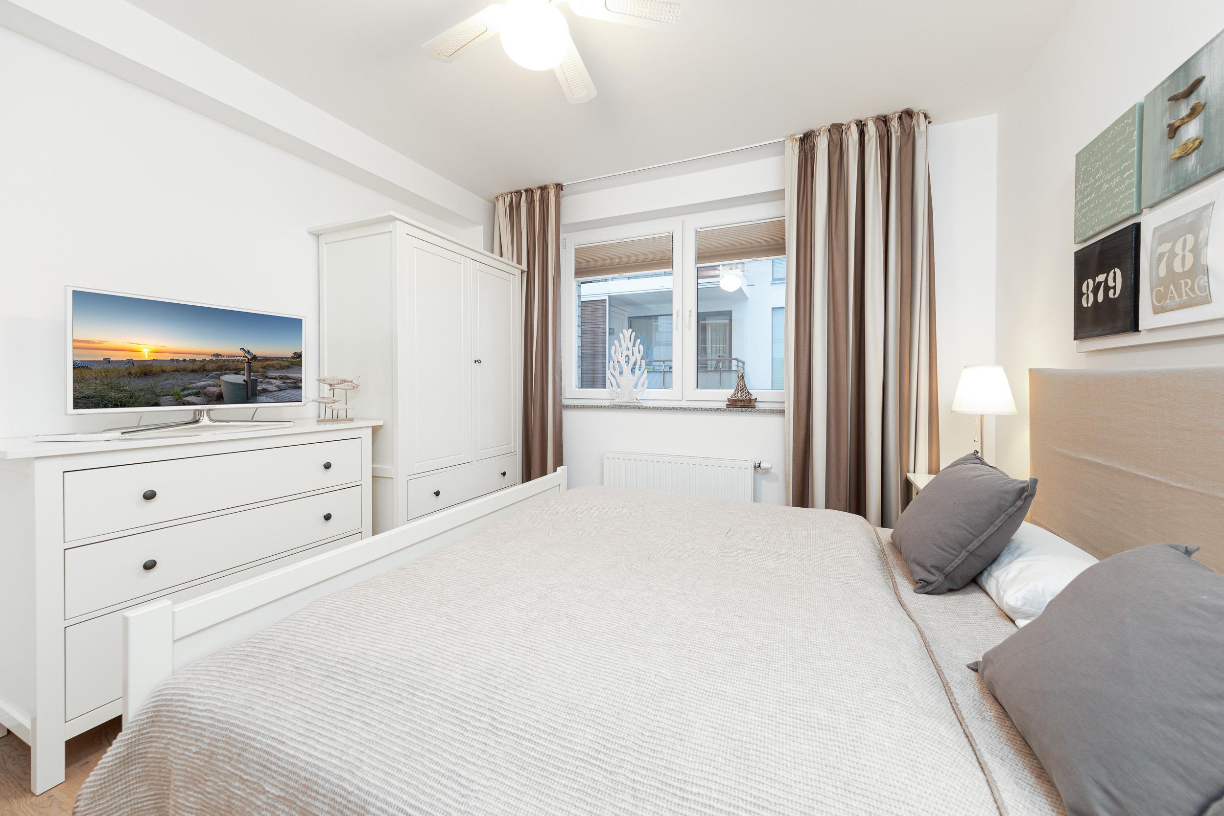 Das Schlafzimmer I dieser Ferienwohnung Timmendorfer Strand ist mit einem Doppelbett (160x200cm) sowie einem zusätzlichen Flatscreen-TV ausgestattet. Im Schlafzimmer II erwartet Sie ein Doppelbett (140x200cm) für die dritte und vierte Person sowie ebenfalls ein zusätzlicher TV. Das moderne Duschbad mit Fenster und der schöne Balkon in Süd-/Westlage runden diese moderne Ferienwohnung an der Ostsee in Timmendorfer Strand ab.