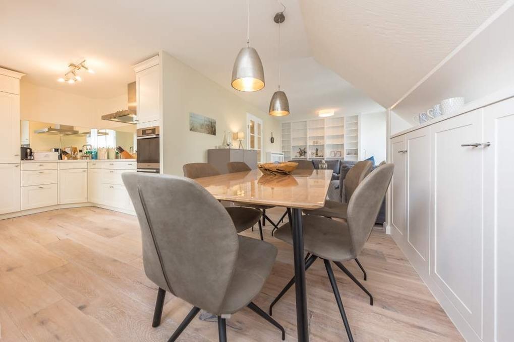 Die Ferienunterkunft verfügt über einen offen gestalteten Wohn-Essbereich mit angrenzender, offener Küche. Das Wohnzimmer verfügt über eine komfortable Couchgarnitur, einen Flachbild-TV mit Internetfunktion und integriertem Radio. Die Küche ist modern und rund um mit allem, was das Koch- und Köchinnen Herz höher schlagen lässt, ausgestattet - eine Kombi aus Kühl- und Gefrierschrank, ein Backofen, ein Cerankochfeld, ein Geschirrspüler, eine Kaffeemaschine, ein Toaster, ein Wasserkocher sowie ein Dampfgarer stehen Ihnen hier unter anderem zur Verfügung.