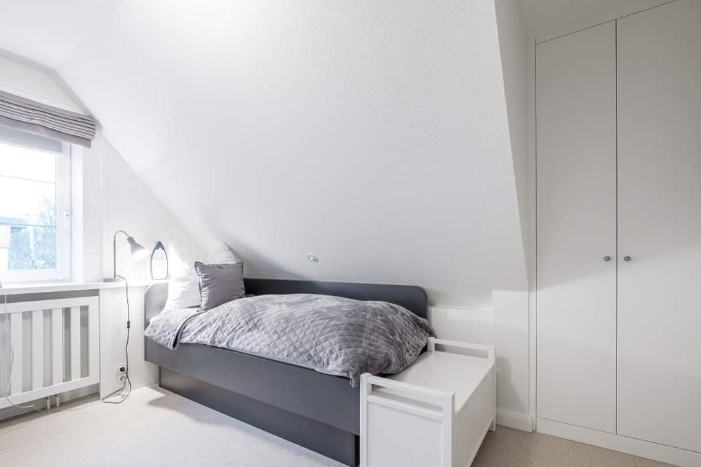 In beiden Schlafräumen befinden sich Verdunkelungs-Plissees sowie zudem Verdunkelungsvorhänge, sodass sich die Schlafzimmer komplett abdunkeln lassen.