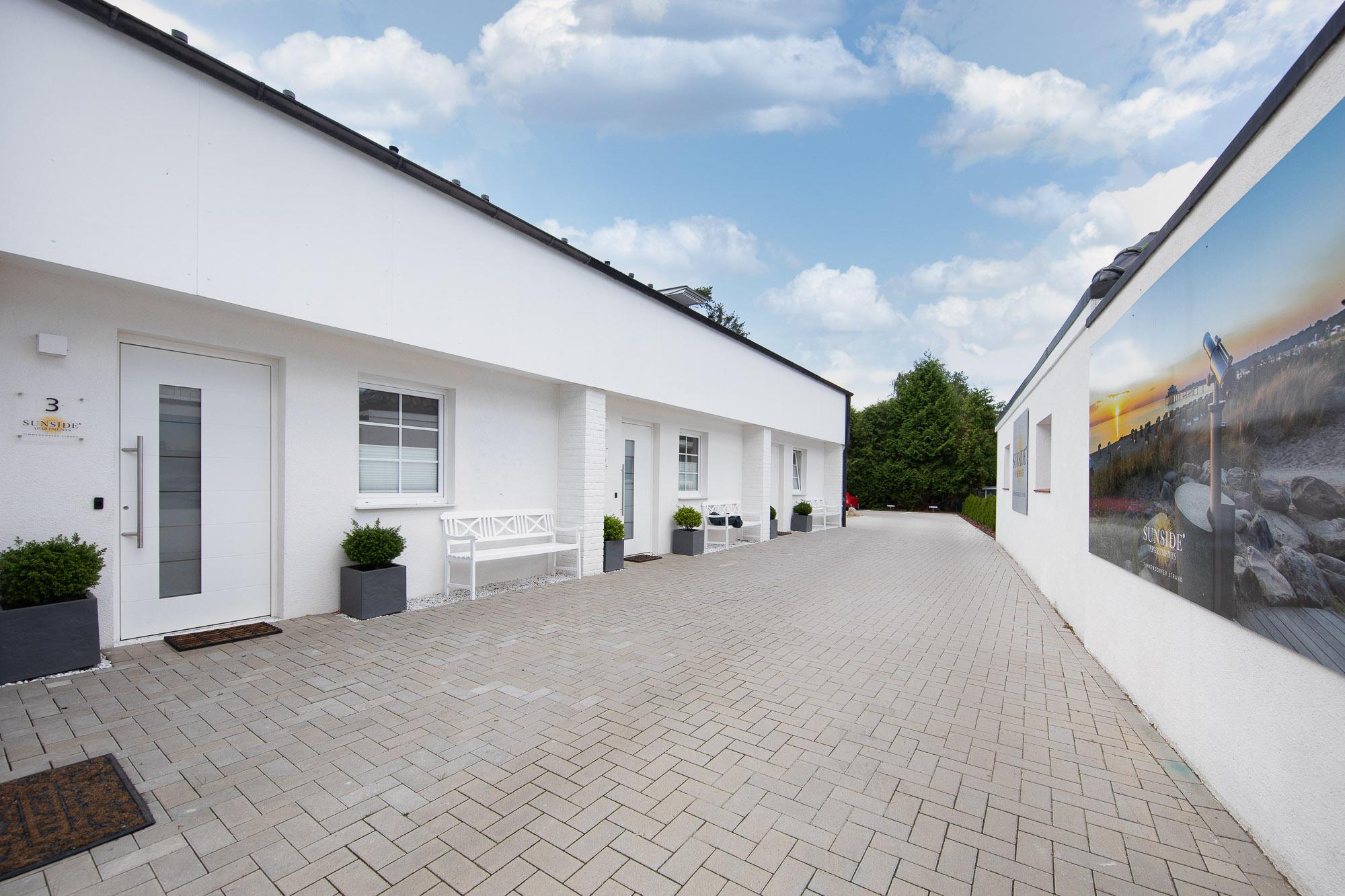 Die Apartmentanlage besticht durch die sehr zentrale Lage nur 300 Meter vom lebendigen Ortszentrum und 500 Meter zum Strand entfernt. Diverse schöne Restaurants, Cafés, Bars sowie Einkaufs- und Shoppingmöglichkeiten sind somit in wenigen Minuten fußläufig erreichbar. Trotz der sehr zentralen Lage, liegt die Ferienwohnungs-Anlage in einer ruhigen Sackgasse in einem reinen Wohngebiet und ist trotz sehr zentraler Lage, sehr ruhig gelegen. Sie erreichen fußläufig in ca. 250 Meter Entfernung das Naturschutzgebiet Aalbeek-Niederung, wo ausgiebige Spaziergänge im Wald jederzeit möglich sind. In den kälteren Monaten hingegen, wartet der schöne Ostseestrand auf lange Spaziergänge.
